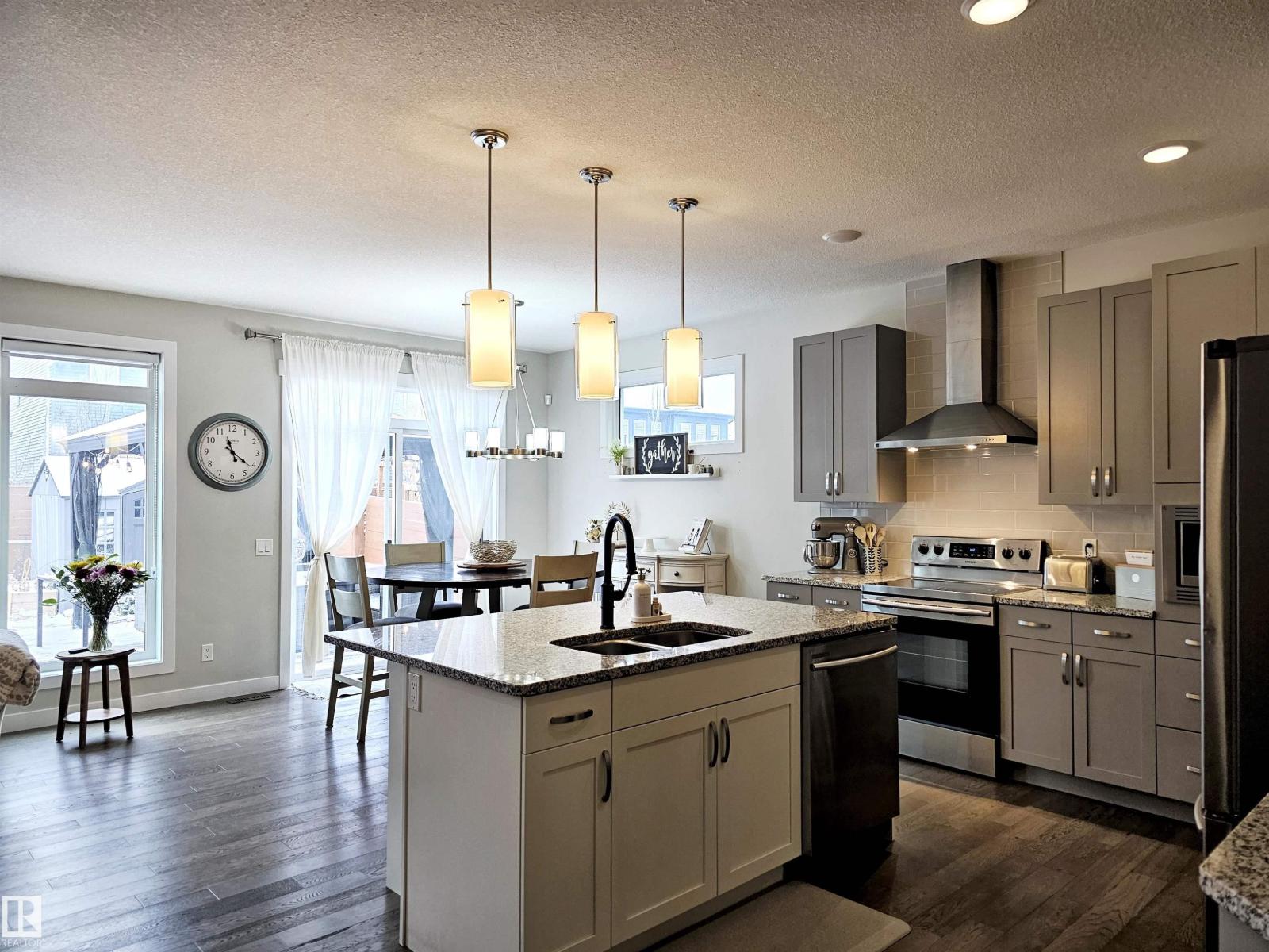 Discover the bright, beachy charm of Jensen Lakes! This stunning 2-storey family home offers over 2,375 sq.ft. plus a fully finished basement. The open-concept main floor features a modern kitchen with stainless steel appliances, granite countertops, a walk-thru pantry, oversized island, and wet bar. The great room with fireplace accent wall flows into a spacious dining area—perfect for entertaining. Upstairs offers 4 bedrooms, a bonus room, laundry, and a primary suite with walk-in closet, fireplace, and a spa-like 5-piece ensuite. The basement includes a large family room, 5th bedroom and full bath. Enjoy the TRIPLE TANDEM garage, central A/C, permanent exterior LED lighting, and landscaped yard with a large deck. Walk to two new schools, parks, playgrounds, and enjoy exclusive access to the private Jensen Lakes beach! (33690955)
