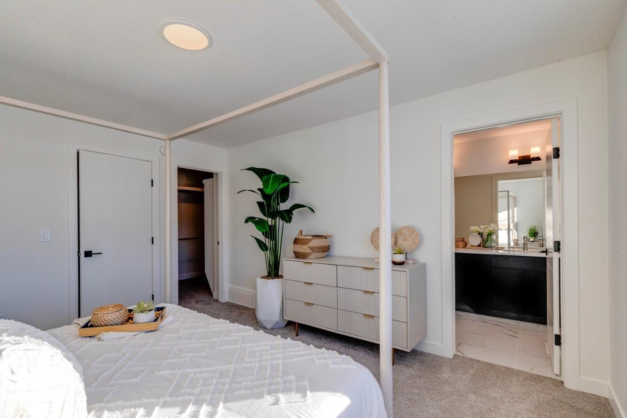 Welcome to this stunning 4-bedroom, 3-bathroom home designed for comfort and functionality. A main floor bedroom and full bath offer convenience for guests. The gourmet kitchen features a substantial island with eating bar, walk-through pantry with built-in MDF shelving, and opens to a spacious mud room. The elegant open-to-above staircase leads to the second floor, where you'll find three additional bedrooms, a generous bonus room, laundry room, and a 4-piece primary ensuite with a large glass shower and a walk-in closet. The separate side entrance provides flexibility for potential future development. The basement impresses with 9' ceilings and plumbing rough-ins, ready for your vision. This home blends thoughtful layout with luxurious touches — perfect for modern living. Photos representative. (33690959)