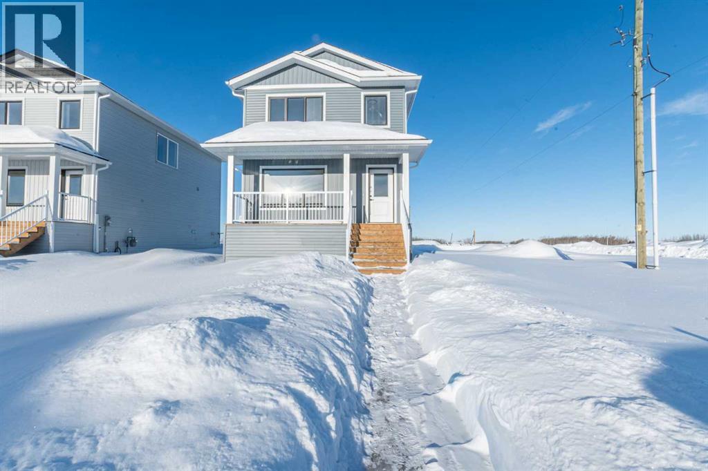 Welcome to the "Hawthorne" Job #677, a beautifully designed home offering an open floor plan with modern finishes throughout. The charming front veranda welcomes you into the front entry and the open concept living, dining and kitchen. The kitchen is the heart of this home boasting quartz countertops, a corner pantry, and a convenient eating bar—perfect for casual dining or entertaining guests. A half bath off the back entry adds everyday functionality. Upstairs, the spacious primary suite offers a private retreat with a walk-in closet and full ensuite. Two additional bedrooms and a full bathroom complete the second level. The basement is a blank canvas with endless potential—create a rec room, family room, or add an extra bedroom and bathroom to suit your needs. Located in one of Grande Prairie's most desirable neighbourhoods; Signature Falls with nearby walking trails, children's parks & green spaces and K-8 school. This home has back alley access to 20'x26' rear concrete parking pad. Ready for immediate possession! (31499297)