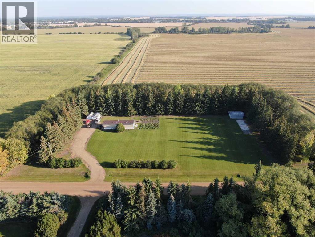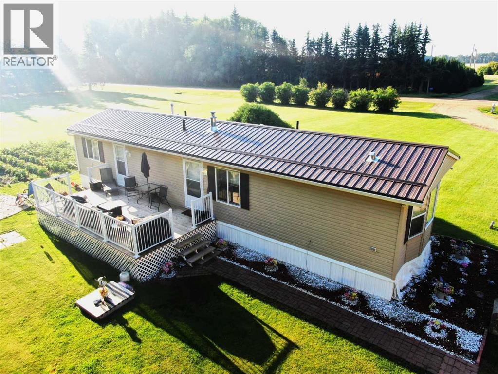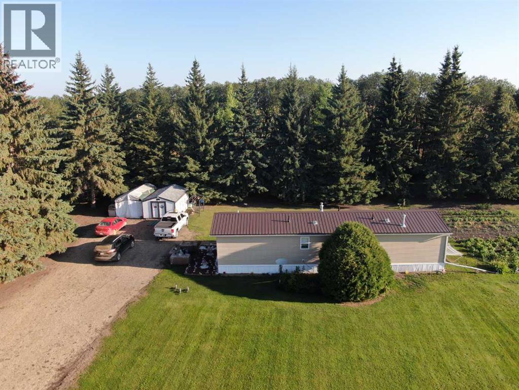 Affordable Low Maintenance Acreage for Sale! Move in ready, this newer Mobile has all the modern amenities you need, from the tasteful cabinetry to the open design with Vaulted Ceiling, 2 bedrooms, 4pc bath and Main floor Laundry. Step out on to the 11'x32' deck and sit and enjoy the peacefulness of your surroundings secluded from the hustle and bustle of the day with access to your firepit overlooking the garden and the acres of well manicured lawn for all your recreation needs. 3.16 acres surrounded by mature Spruce and serviced with Municipal water,natural gas and Power.(RV Plug in available as well). The 18'x24' Equipment storage shed with concrete pad, shingles 3 years old is fantastic for storing all the lawn equipment and more. The additional 12'x20' shed with heavy floor construction will take care of the rest of your storage needs. A 10 minute drive from Town for a quick commute and getting you back home in record time to enjoy County living at its finest. Call or text for your viewing today. Great property at a great price! (31499597)