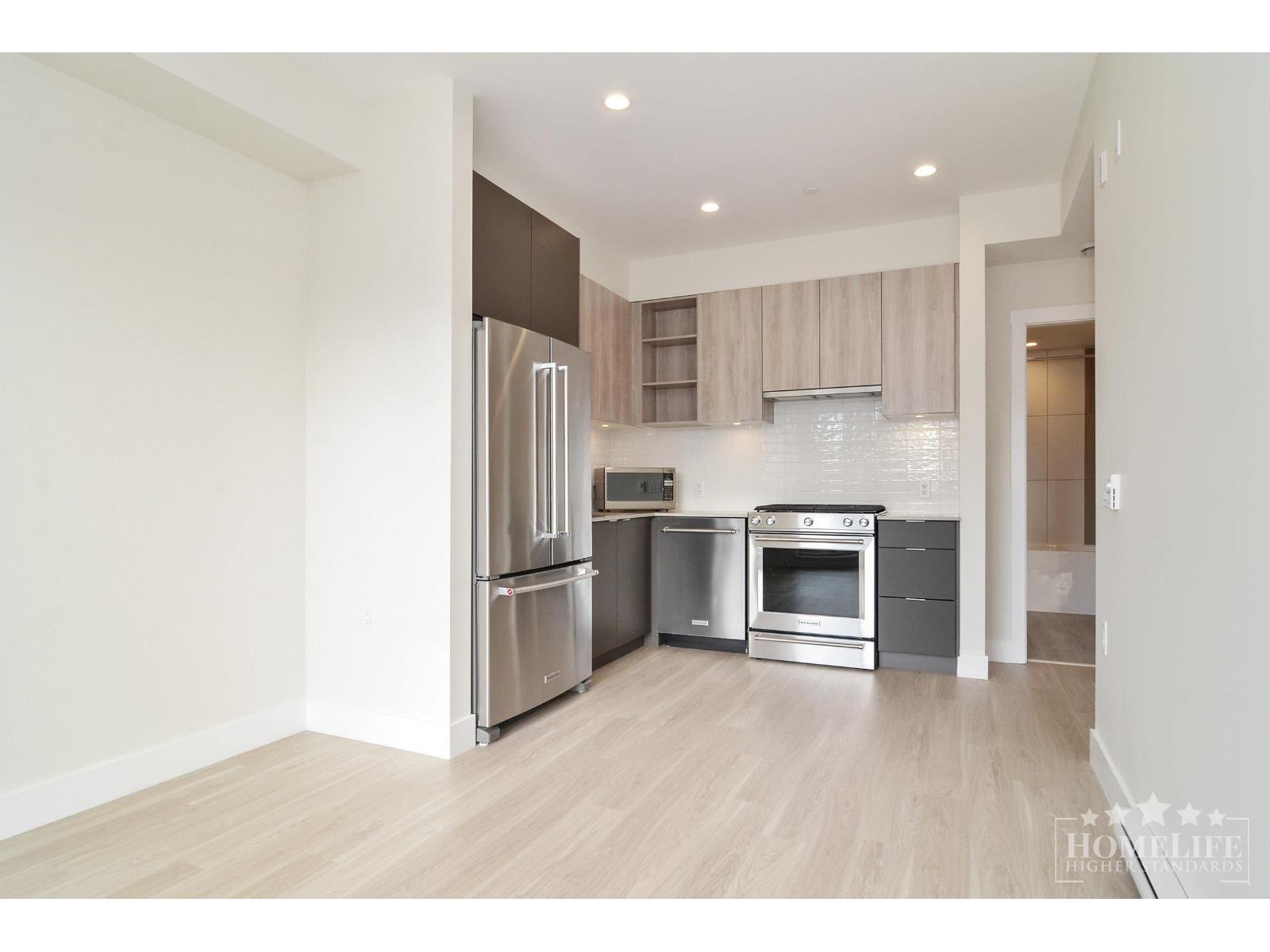Gorgeous 1 Bedroom Condo at Scott & Nicholson - Sunshine Hills, North Delta. This modern 1 bed, 1 bath home features an open layout, quartz countertops, high-end stainless steel appliances, laminate flooring, in-suite laundry, and a private patio with gas BBQ hookup. Includes 1 underground parking stall and 1 storage locker. Scott & Nicholson offers 12,000 sq. ft. of resort-style amenities: fitness centre, party room, outdoor lounge, BBQ stations, and more. Secure building with elevator, visitor parking, and storage. Steps to parks, schools, shops, restaurants, and transit. 1-year lease; tenant insurance required; no smoking; credit & income check; move-in/out fees apply. (32299182)