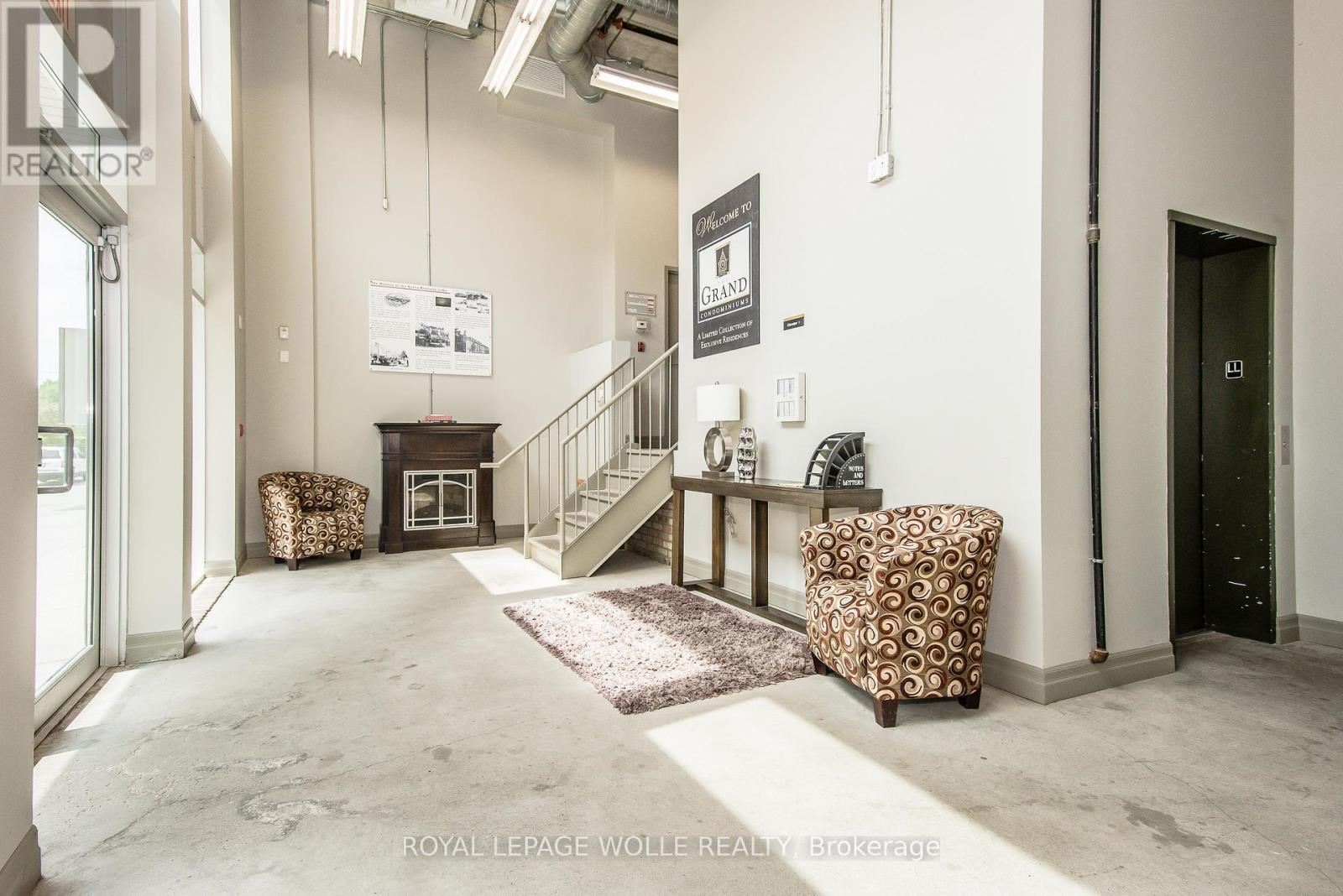 Experience authentic loft-style living steps from the Grand River, restaurants, and cafés. This rare 1-bedroom, 1-bath condo blends heritage character with modern comfort across 620 sq. ft. of thoughtfully designed space. Soaring 14-foot ceilings, 10-foot windows with deep sills, and exposed ductwork showcase the building's industrial roots, while concrete and brick interior walls add timeless texture. The open-concept layout features a unique arched brick alcove in the dining area, granite countertops, stainless steel appliances, in-suite laundry, central air, and in-floor radiant heating. Added conveniences include generous basement storage, a pulley system for bike storage, and one parking space (#27) directly outside the unit. Enjoy a lifestyle surrounded by Galt's best - scenic river trails, local cafés, shops, theatres, and the U of W School of Architecture are all just a short walk away. Available IMMEDIATELY for $1,699/month + utilities. (41892678)