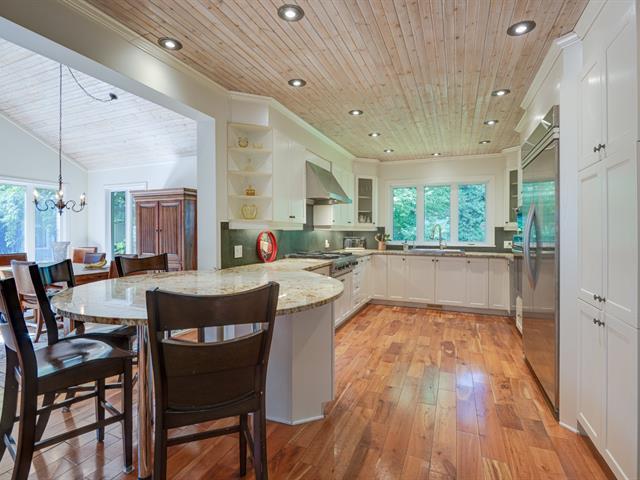 Welcome to 16 Rue Wharf, this wonderful open concept bungalow went through an extensive renovation including an extension in 2004. Wonderful location within minutes of the historic Hudson village and its numerous services. Gorgeous private backyard with mature hedge, inground pool with paving stone terrace, garden shed and well sized patio. Great kitchen with top quality appliances, cabinets to the ceiling, granite counters and sitting area. Impressive family and dining rooms with cathedral ceiling and large windows. Spacious primary bedroom with a large walk-in closet and ensuite bathroom. Partially finished basement and large storage areas. (43942114)