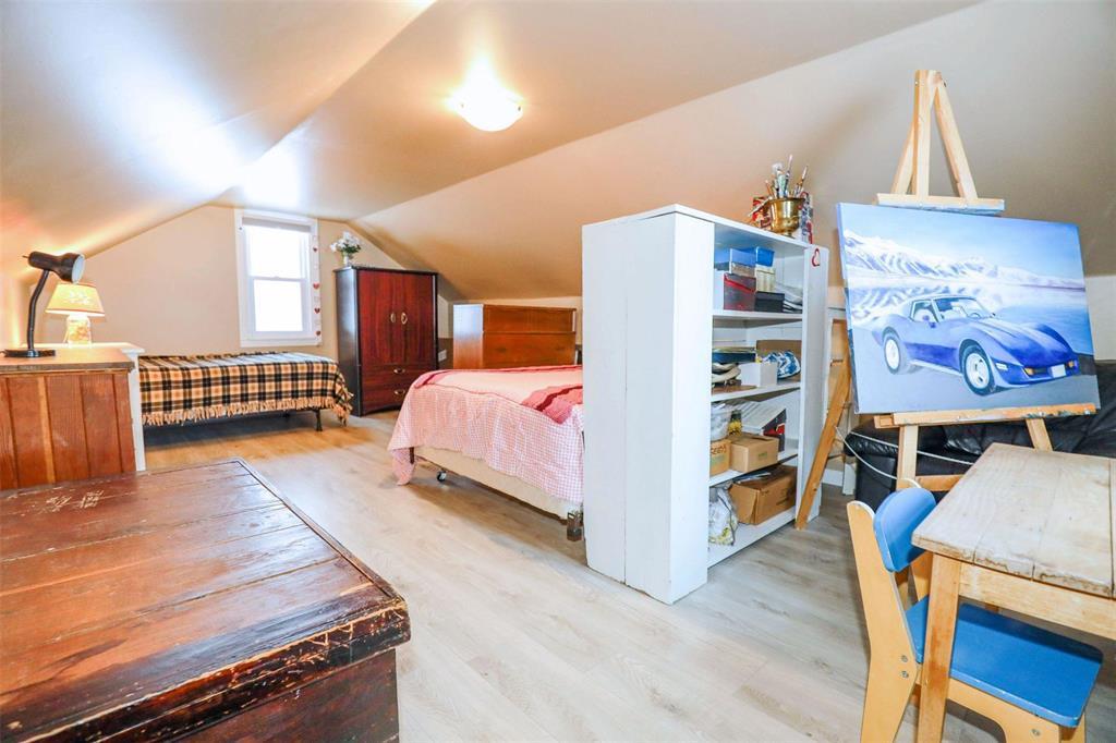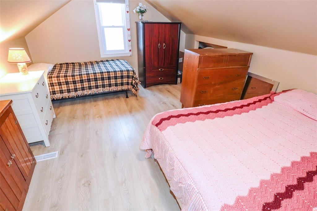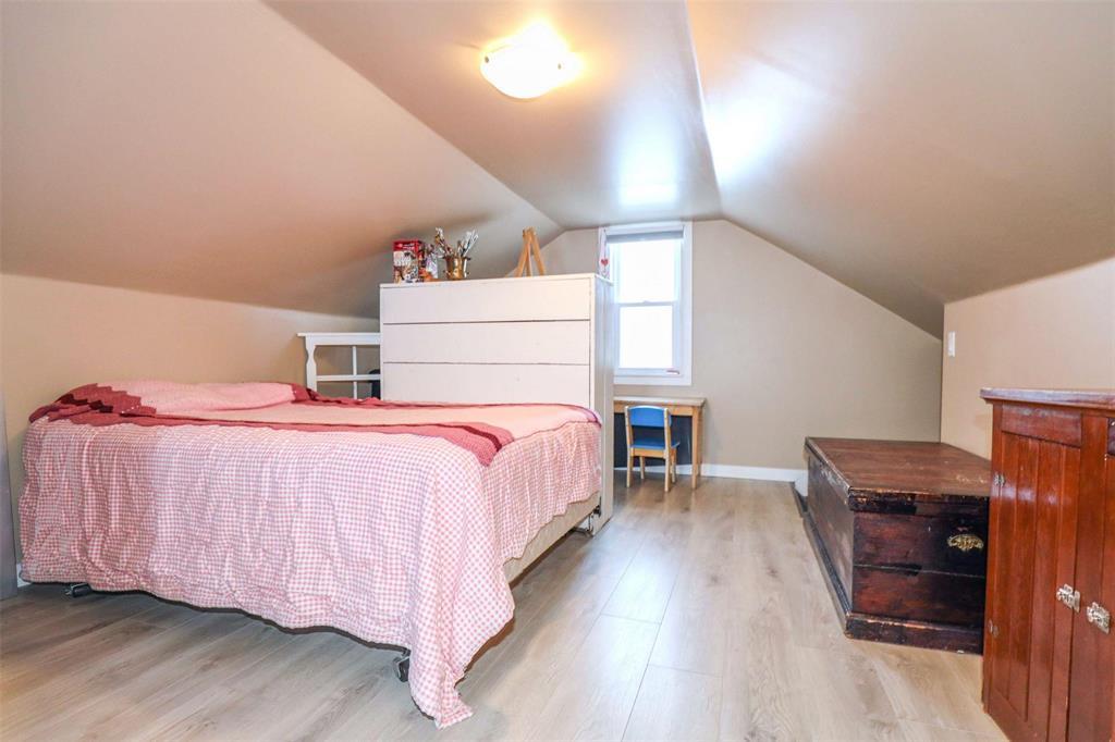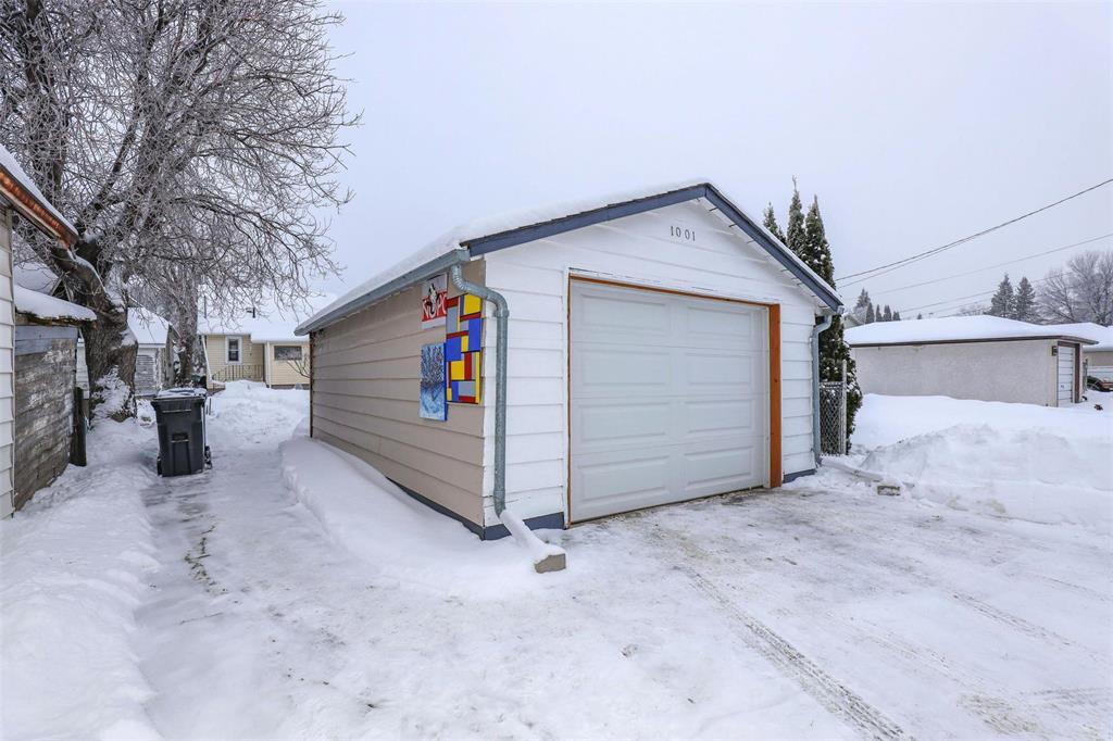 4B//Winnipeg/Well-maintained and adorable 777 sq ft turnkey 1 -storey 3 bedroom home situated on a quiet block with a deep lot featuring newer trees, shrubs, and a garden area, plus an oversized single garage. The main floor offers a spacious living room open to the kitchen perfect for entertaining. A huge upper loft provides flexible space, complemented by an upgraded 4-piece bathroom with tiled flooring. Numerous updates include house shingles (2017), garage shingles (2023), high-efficiency furnace, updated plumbing, insulation, sump pump (2022), flooring, a newer overhead garage door, and fresh paint. Low-maintenance exterior with aluminum soffits and fascia, central A/C, and appliances included. Won t last! (231823257)