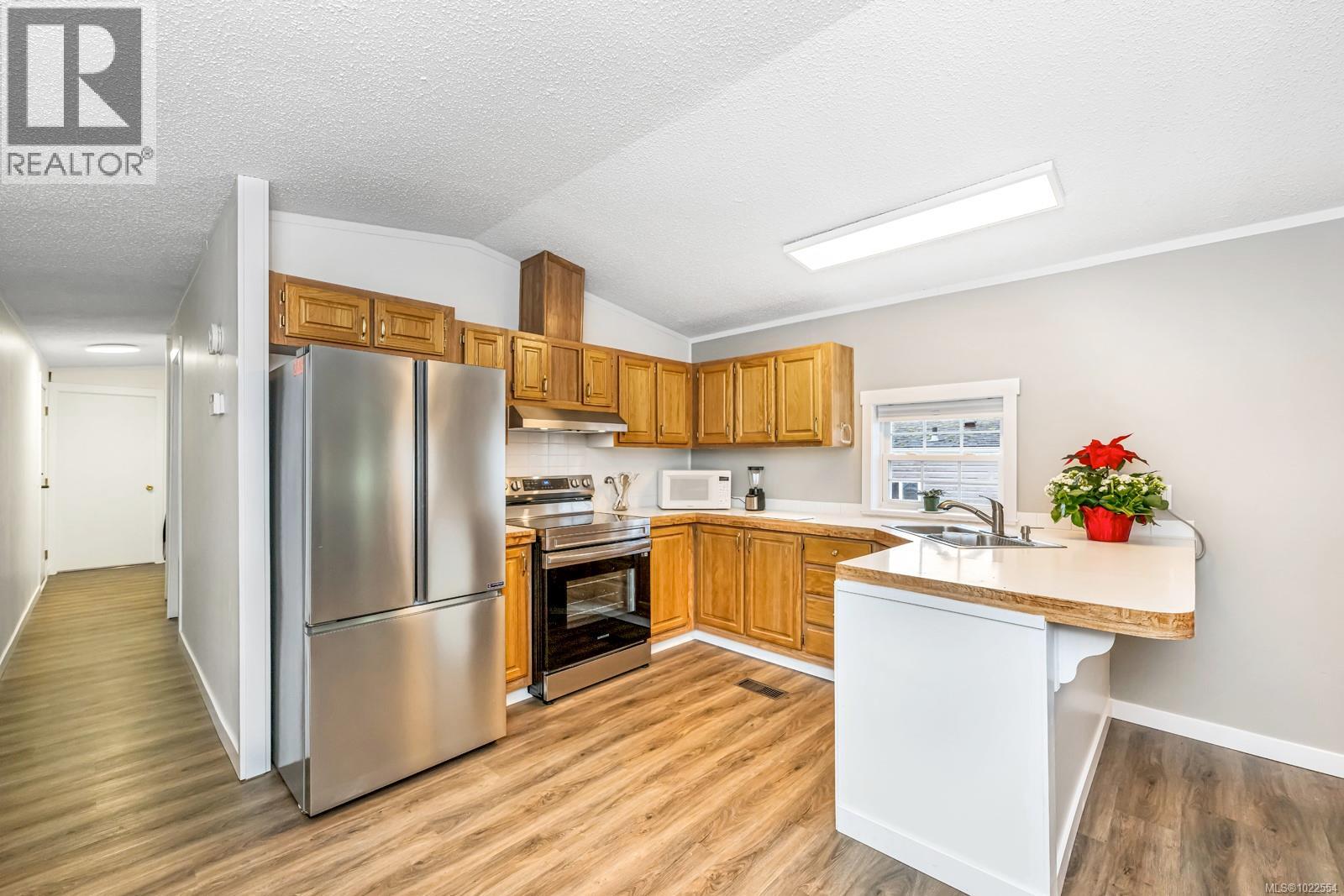 OPEN HOUSE SATURDAY 2 PM TO 4 PM. EASY TO VIEW, Family Park. Move right in and enjoy this fully updated, stylish, and accessible home—ready for immediate possession. Thoughtfully designed for independent living, it offers a no-step entry, widened doorways, fresh paint, new flooring, and modernized electrical throughout. The bright, open layout feels fresh and inviting, with anchored carpet in the primary for mobility aids. The brand-new 4-piece bathroom shines with updated fixtures plus a bath lift/shower chair for ease. You’ll also love the convenience of in-suite laundry, new appliances, privacy blinds, and a spacious 7' x 36' covered verandah—perfect for year-round enjoyment. Outdoors, the sunny, manicured lot includes a powered workshop, greenhouse, fenced garden site, and two parking spaces. Pet-friendly and practical, the location is on a direct bus route and within walking distance to shops, services, Sooke Centre, and just minutes to Ella Beach. Low-maintenance, coastal living at its best—live simply, live independently, and love where you live. Bonus; only nice folks live here! (30245648)