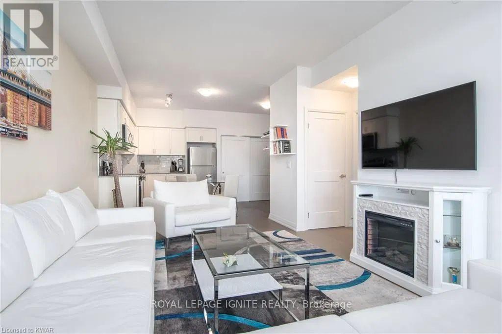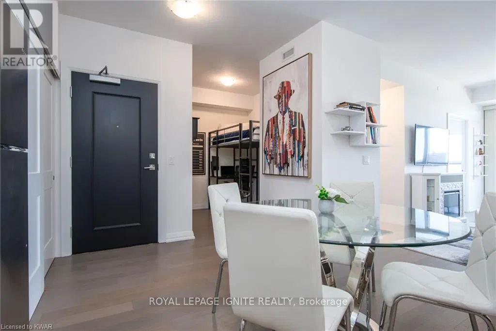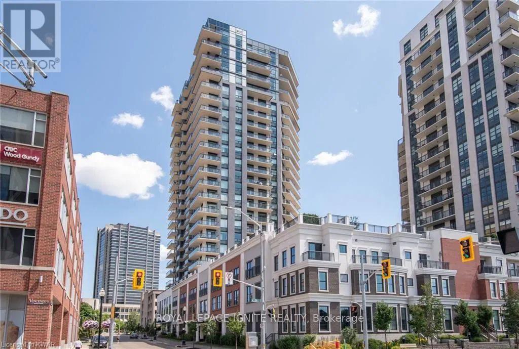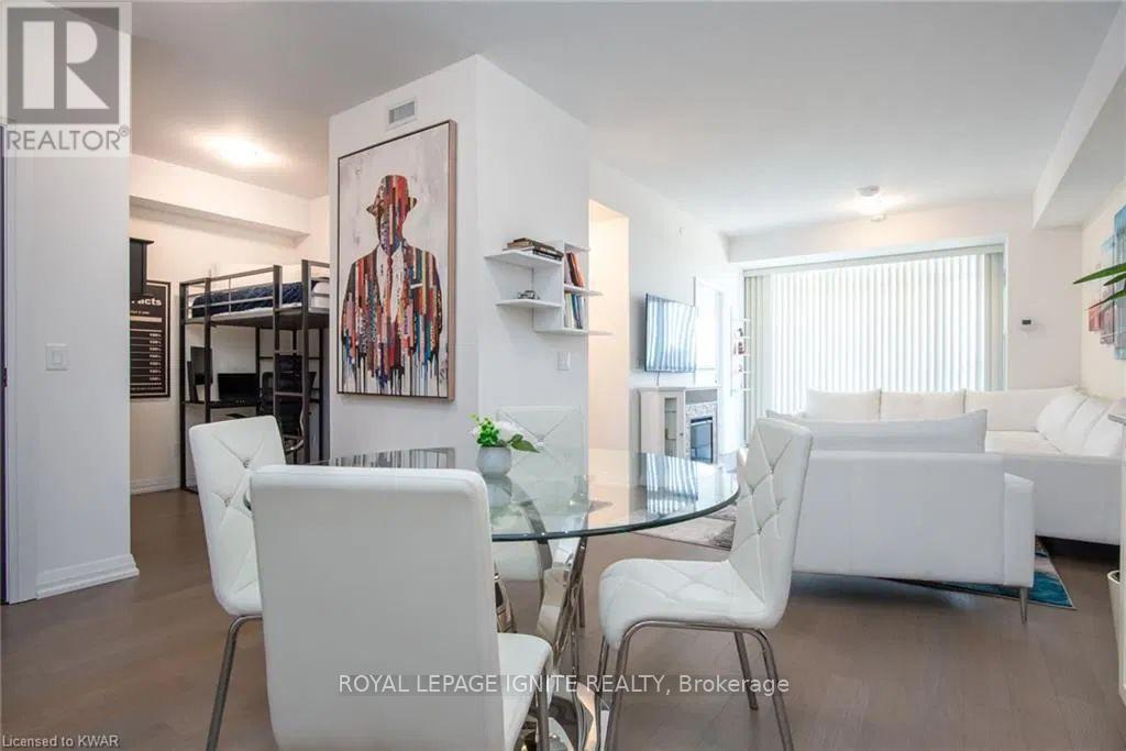 Located in the heart of Uptown Waterloo, this well-maintained one-bedroom plus den unit is part of the highly sought after Caroline Street Private Residences. Step into a bright and modern open concept living space designed for comfort and functionality. The living room features custom-built furniture that fits the space perfectly, creating a warm and stylish atmosphere. The kitchen offers quartz counter tops, soft close cabinetry, and stainless-steel appliances, seamlessly opening to the living area-ideal for entertaining. Enjoy direct access to the balcony, where you can take in stunning city views. The primary bedroom includes a walk-in closet, adding extra convenience and storage. This unit also comes with a locker and an underground parking space. Unbeatable location just steps from Uptown Waterloo's best bars, restaurants, and upscale shopping, with Vincenzo's and Bauer Kitchen right next door. With the LRT right outside your door, getting around the city is effortless perfect for those seeking both lifestyle and convenience. (41893485)