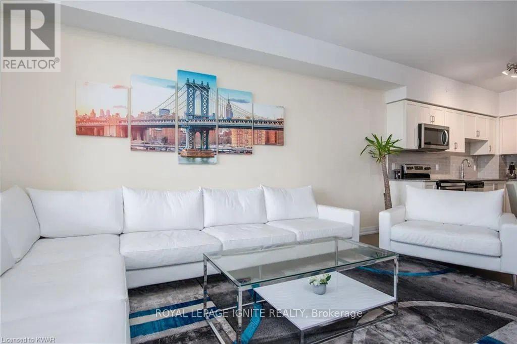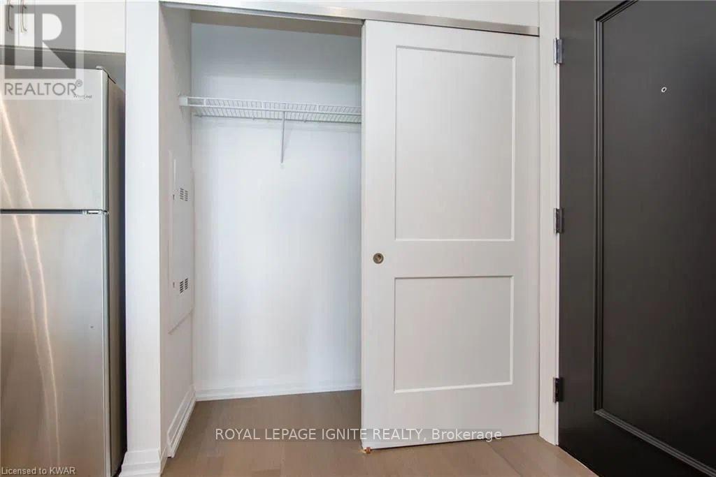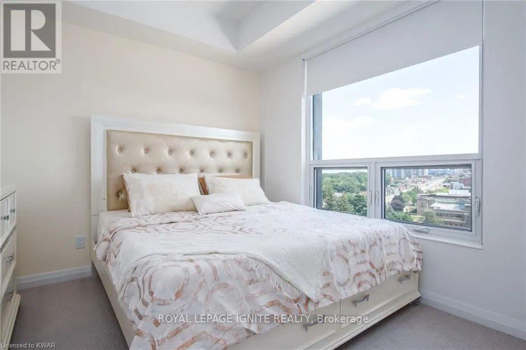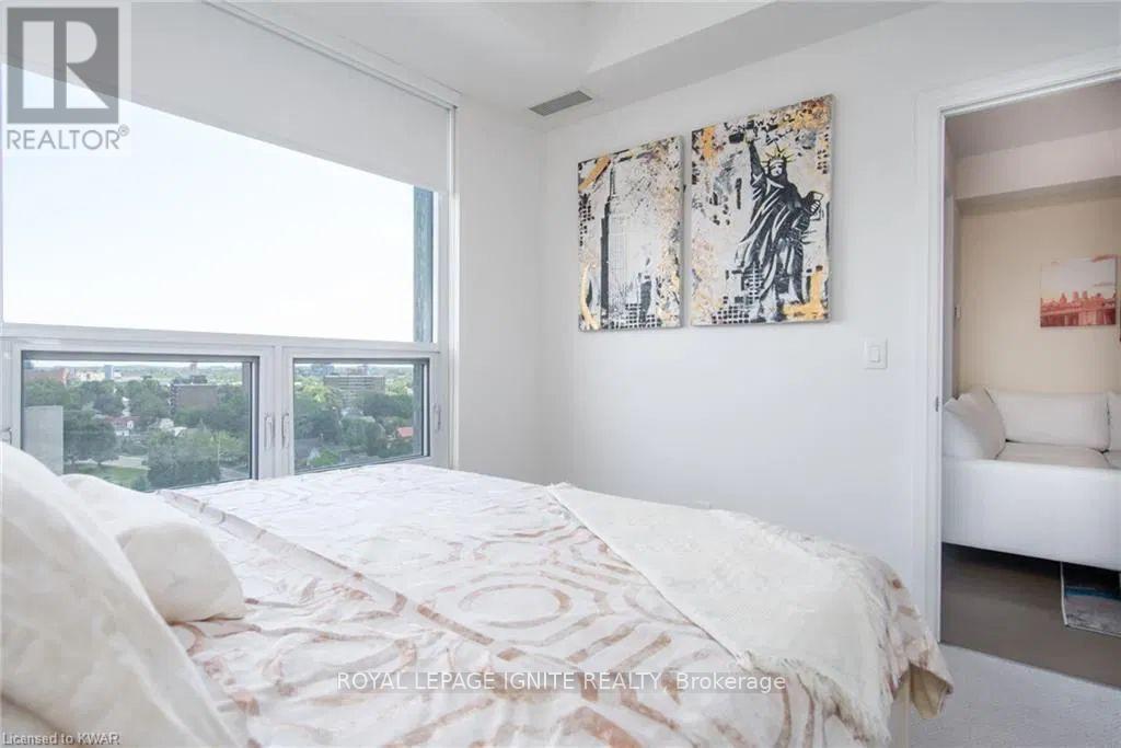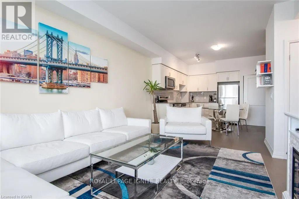 Located in the heart of Uptown Waterloo, this well-maintained one-bedroom plus den unit is part of the highly sought after Caroline Street Private Residences. Step into a bright and modern open concept living space designed for comfort and functionality. The living room features custom-built furniture that fits the space perfectly, creating a warm and stylish atmosphere. The kitchen offers quartz counter tops, soft close cabinetry, and stainless-steel appliances, seamlessly opening to the living area-ideal for entertaining. Enjoy direct access to the balcony, where you can take in stunning city views. The primary bedroom includes a walk-in closet, adding extra convenience and storage. This unit also comes with a locker and an underground parking space. Unbeatable location just steps from Uptown Waterloo's best bars, restaurants, and upscale shopping, with Vincenzo's and Bauer Kitchen right next door. With the LRT right outside your door, getting around the city is effortless perfect for those seeking both lifestyle and convenience. (41893485)