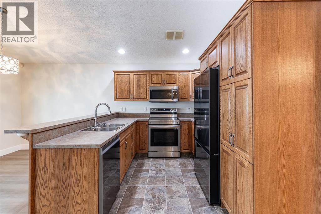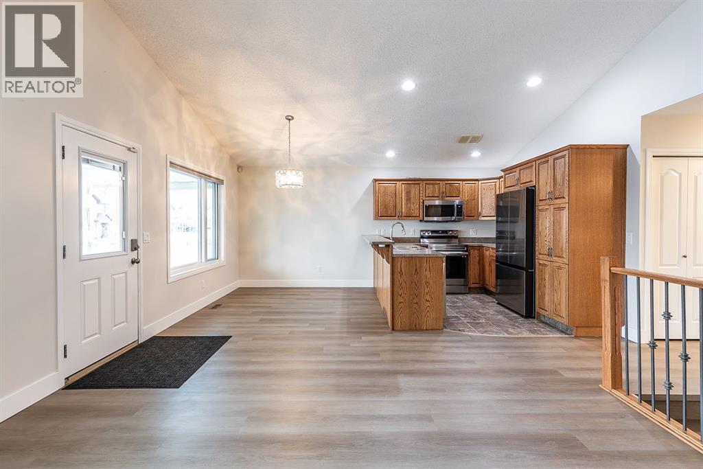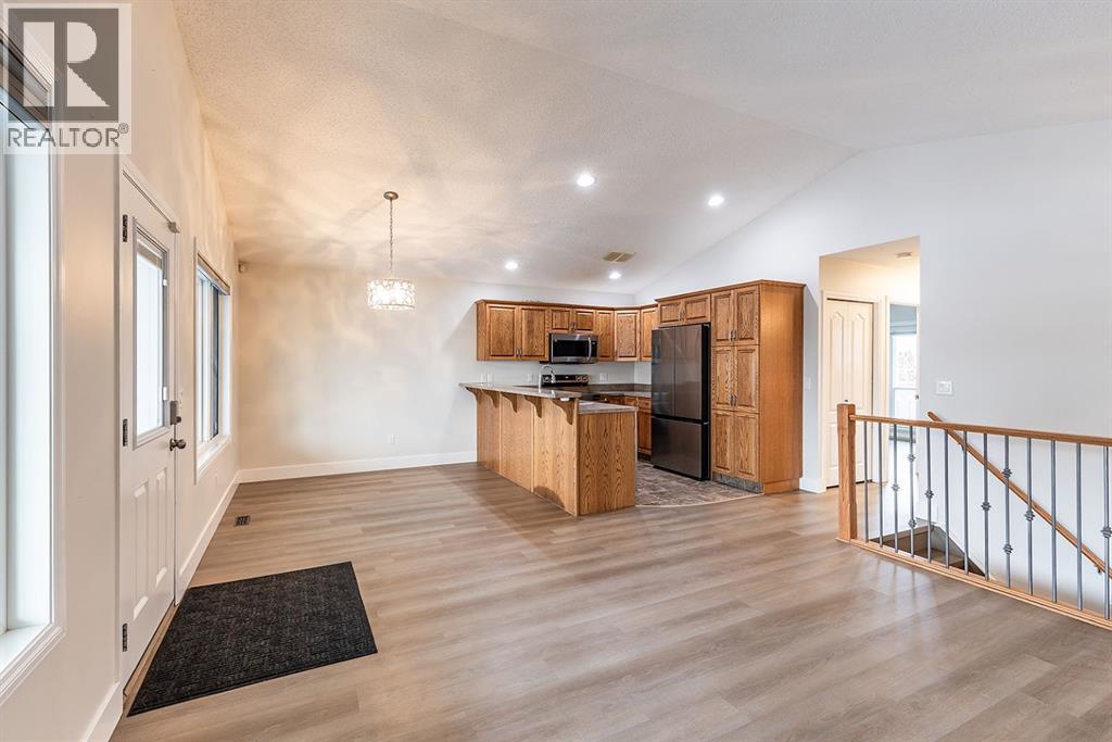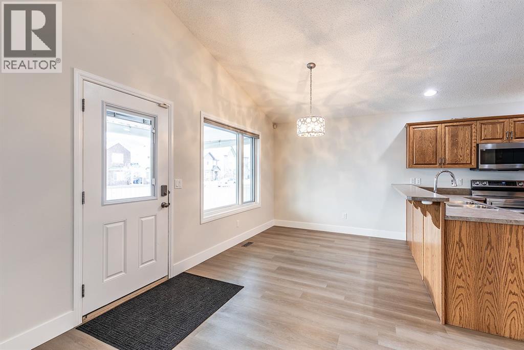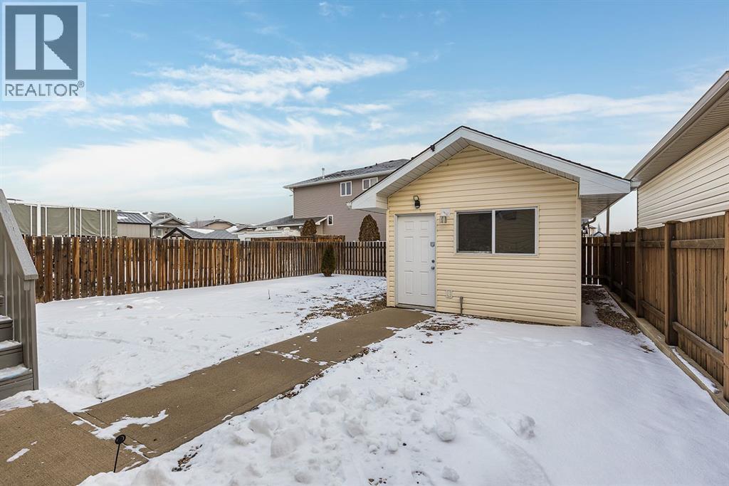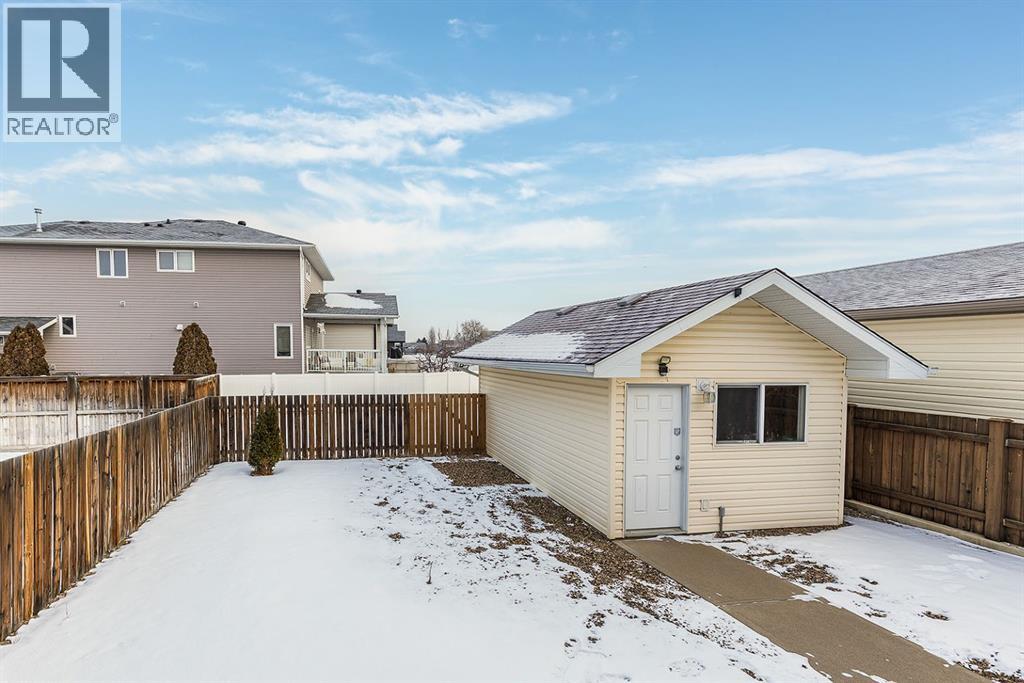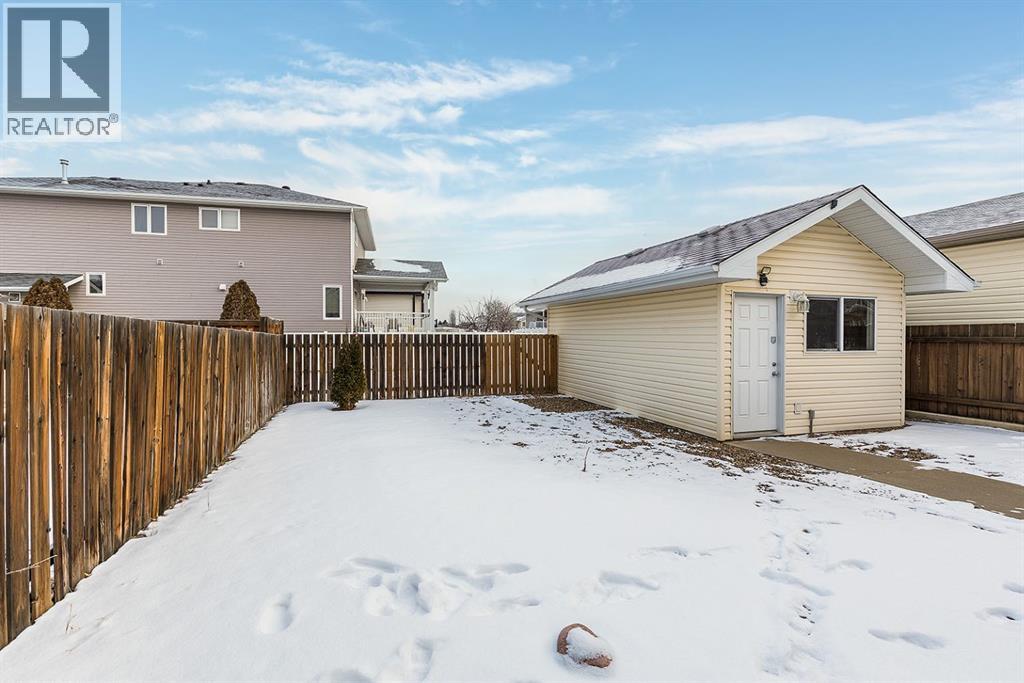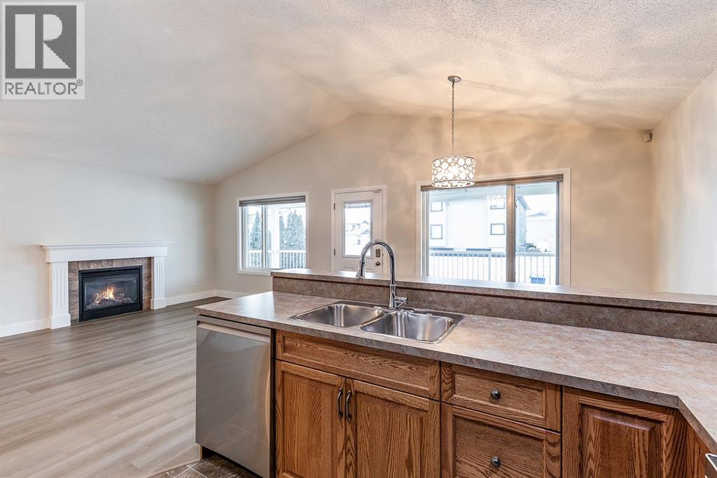Welcome to this charming and cozy bungalow ideally located close to schools, shopping, parks, and scenic walking trails. The open-concept main floor is finished with stylish vinyl plank flooring throughout, creating a bright and cohesive living space perfect for everyday living and entertaining. The kitchen offers stainless steel appliances, ample cabinetry, and a convenient breakfast bar that opens seamlessly to the dining and living areas. A gas fireplace adds warmth and character, making the living room a comfortable retreat.Two bedrooms are located on the main level, including one with direct access to the rear patio—ideal for enjoying morning coffee or easy backyard access. A full 4-piece bathroom completes the main floor. Step outside to enjoy the low-maintenance, xeriscaped yard and relax on the welcoming covered front porch. A single detached garage provides added convenience and storage.The fully developed basement expands your living space with a large family room, a generously sized bedroom, and a 3-piece bathroom—perfect for guests, teens, or a home office setup. This well-maintained bungalow offers comfort, functionality, and a fantastic location, making it an excellent opportunity for first-time buyers, downsizers, or investors alike. (31500109)