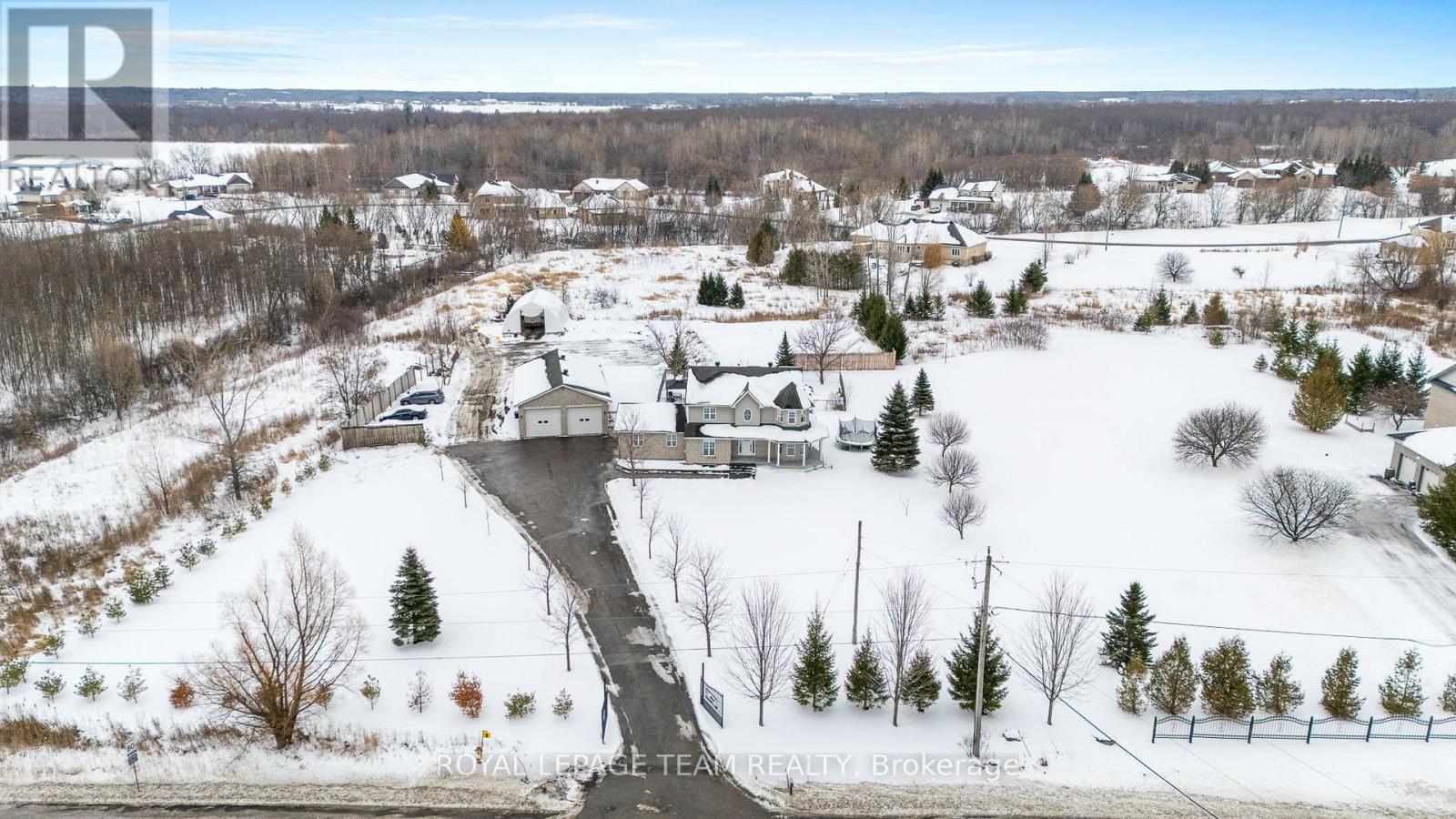 LUXURIOUS FAMILY HOME SET ON 2 ACRES WITH HEATED 6-VEHICLE DETACHED GARAGE/SHOP PLUS ATTACHED DOUBLE GARAGE, A RARE OPPORTUNITY. Now offered at exceptional value, this beautifully renovated 4+1 bedroom, 3.5 bathroom home offers outstanding living space, privacy and versatility rarely found so close to the city. Set on a professionally landscaped 2-acre lot with mature trees, wraparound porch, interlock and a heated inground pool, this property is ideal for families, hobbyists, contractors or home-based businesses. A standout feature is the detached heated garage/shop easily parks up to 6 vehicles, generous 14' ceiling height is ideal for hoists or lifts, running water and dedicated internet wiring, perfect for contractors, car collectors or entrepreneurs. An attached double-car garage with direct access to the large mudroom provides everyday convenience while keeping work and storage spaces separate. Additional highlights include a 20,000 sq.ft. gravel yard, 30 x 40 storage shelter and Generac generator offering excellent flexibility for equipment, toys or work vehicles. INSIDE- HIGH END FINISHES SHINE THROUGHOUT! Chef-inspired eat-in kitchen w/ quartz counters, waterfall island w/ breakfast bar, custom cabinetry, SS appl's & walkout to PVC deck, ideal for entertaining. Kitchen opens to spacious family rm w/ dbl-sided gas FP & entertainment-sized dining rm w/ cozy nook & serving station. Den or 4th bed, powder rm & large laundry/mudrm complete main level. Upper level offers an impressive primary suite w/ bow window seating area, WIC & spa-like ensuite w/ soaker tub, sep shower, quartz & dbl sinks. 2 add'l beds & reno'd full bath complete this level. The fully finished bsmt adds a 5th bed, 3pc bath, family rm/gym & ample storage. Ideal suite for teens etc,. Seperately enclosed backyard retreat w/heated pool, patio & gazebo. Enjoy peaceful rural living just 3 km west of Bank St, 10 min to Manotick & Rideau River, 15 min to airport & 20 min to downtown Ottawa. (41893671)
