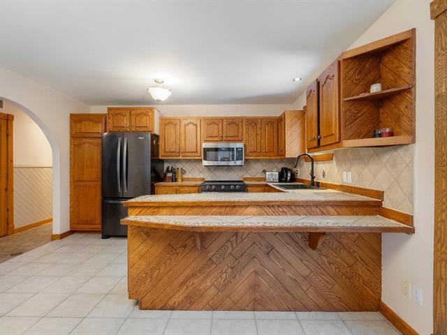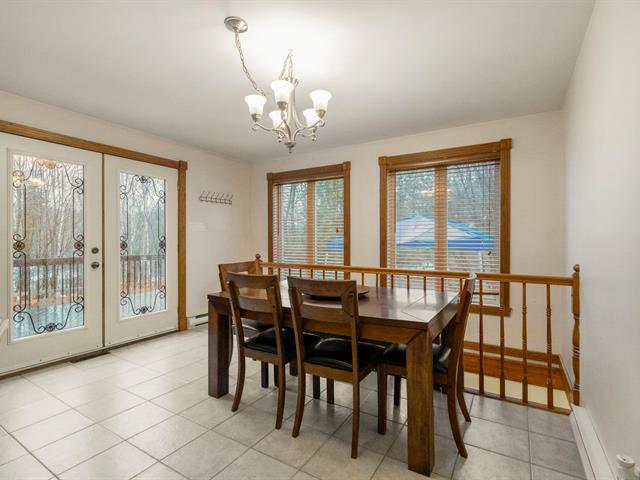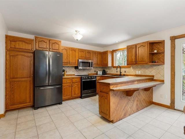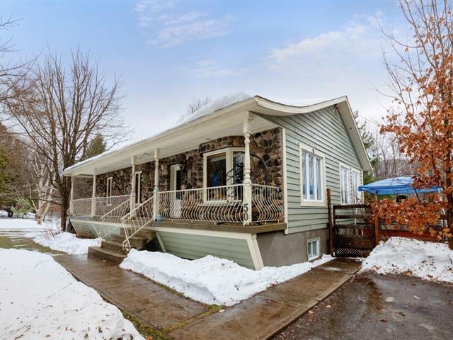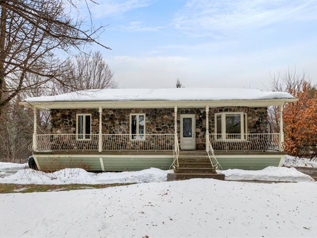 Charming country-style home built with quality materials. It offers 3 bedrooms, 1 full bathroom and a powder room. Warm and inviting atmosphere thanks to the wood-burning stove. Finished basement featuring a workshop, ideal for DIY enthusiasts. Beautiful stone façade and a private lot surrounded by mature trees. Highly sought-after location near the P'tit Train du Nord bike path. A rare opportunity that will not stay on the market long. (40705836)