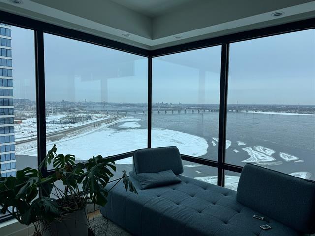 Stunning 3 bedroom, 2 bathroom condo at Evolo 1. Enjoy the panoramic view overlooking the St-Lawrence River & downtown. Private terrace, spacious bedrooms with an on-suite, remote controlled blinds, ample storage, upgraded finishings. 2 indoor parking & locker.Situated minutes from downtown,shopping,restaurants and cafés. No smoking No pets Credit and employment verification mandatory. Must be at the owner's satisfaction. Annex to lease to be signed ,integrated document to the lease. Security deposit mandatory. An absolute must see! (51006757)