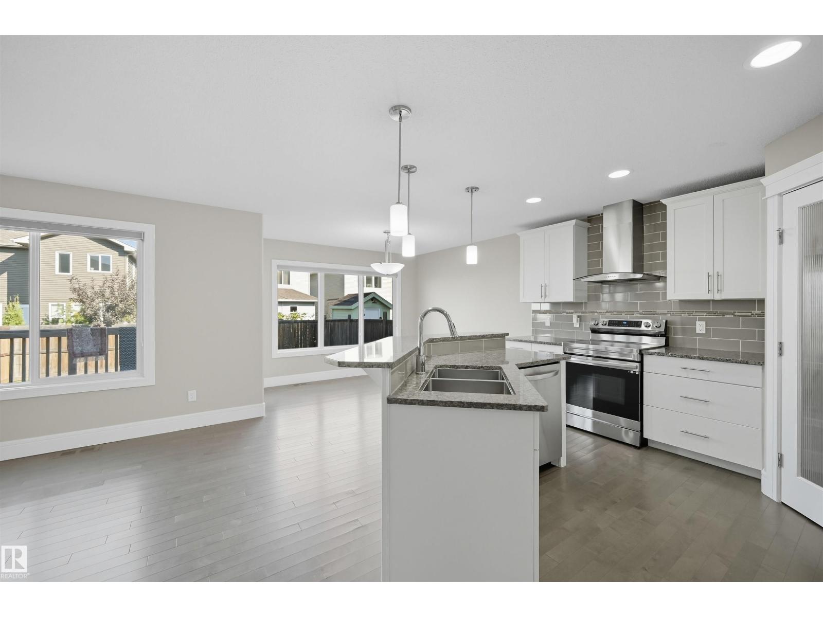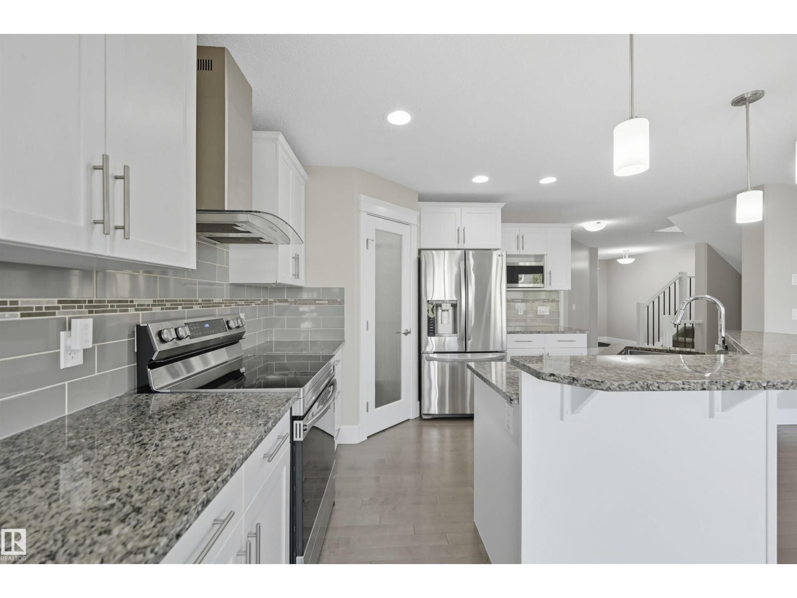 Thoughtfully designed with a flexible layout, ideal for single-family living or multi-generational lifestyles. Offering approx 2800sf of total living space on 3 levels. 3 living areas, 2 kitchens, 3 dining areas, 4 bedrooms & 4 bathrooms. Sunny South fronting, open layout features a cool toned neutral modern palette. Living room highlights a linear gas fireplace & views of private yard. Kitchen features white shaker profile cabinets, black granite, prep island & corner pantry. Spacious nook with direct access to deck. Upper level bonus room for family movie nights. Primary bedroom will house a king sized set & is complete with dual walk-in closets & 4pc ensuite. 2 additional bedrooms & 4pc bathroom for a growing family. Lower level offers an oversize recreation room which will accommodate most furniture arrangements. 2nd kitchen & 2nd dining area for inlaws, entertaining or extended guest stays. 4th bedroom & full bathroom complete this level. Steps to multiple parks/ponds & within catchment of 4 schools. (33692525)