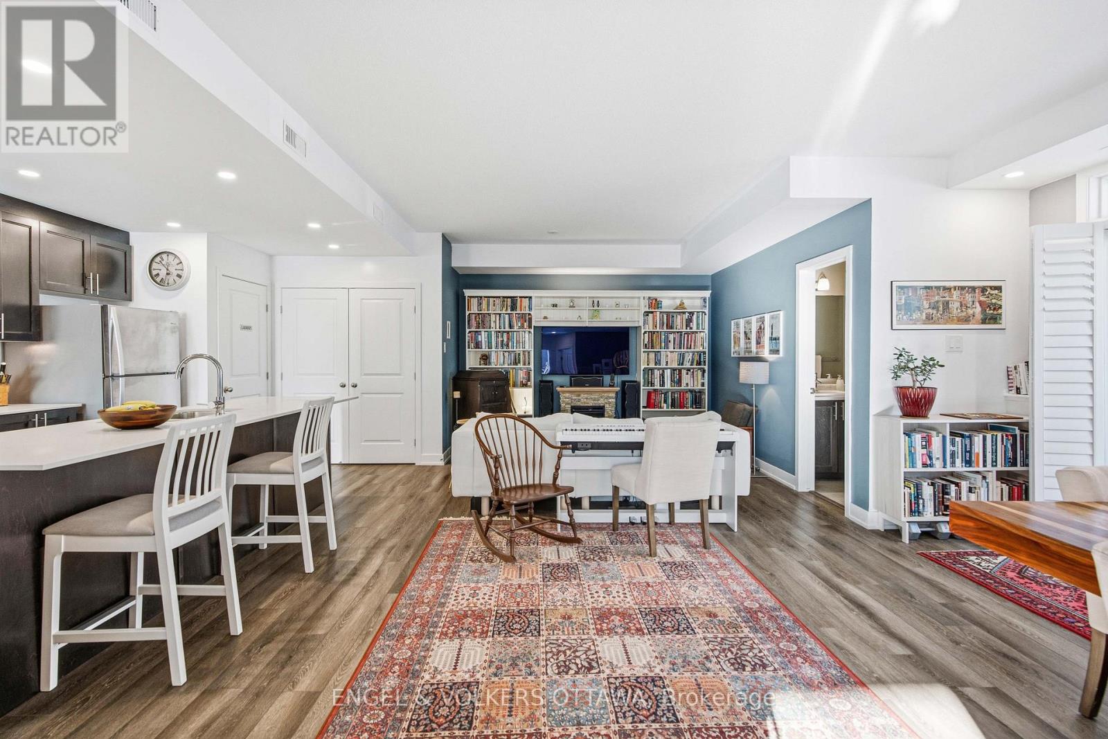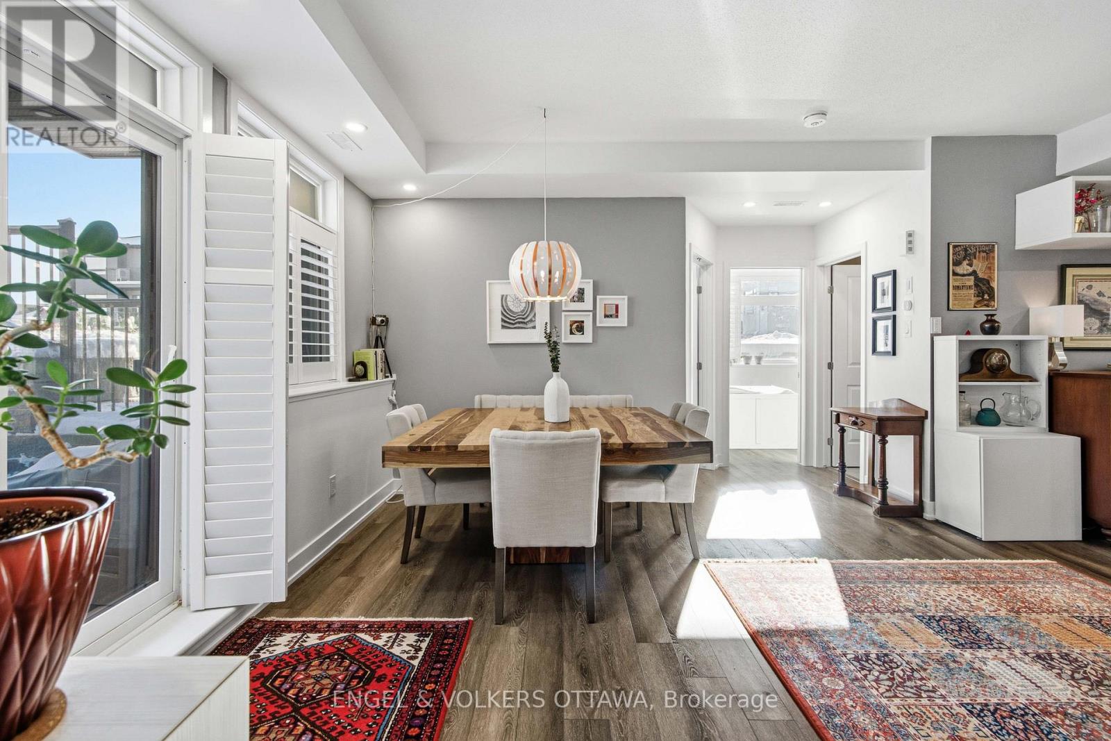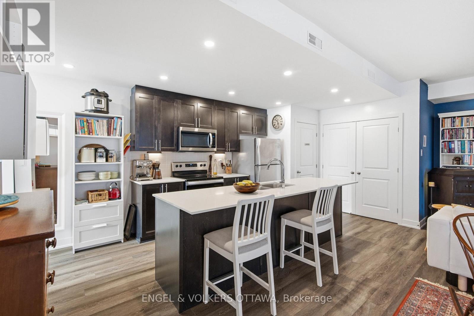 Welcome home to Zen Urban Flats, a modern and thoughtfully designed condo community in the heart of Kanata, offering low condo fees of $258.57 per month. This smart and functional unit features 2 bedrooms, 1.5 bathrooms, and a private terrace ideal for outdoor living. The open concept layout is perfect for both everyday living and entertaining, highlighted by quartz countertops, stainless steel appliances including a brand new Bosch dishwasher, pot lights, and custom California shutters throughout. Upon entry, you are welcomed by high ceilings and a convenient front hall closet. The kitchen features an oversized island that seamlessly overlooks the living and dining areas, creating a bright and inviting space.Step through the sliding doors to your private exterior terrace, perfect for relaxing with an evening glass of wine or hosting guests. Parking is included, along with visitor parking for added convenience. First occupied in 2024, the home includes approximately five years remaining on the Tarion warranty. Ideally located close to public transit, trails, parks, shopping, and excellent schools, this home offers an exceptional balance of comfort, style, and lifestyle. (41894570)