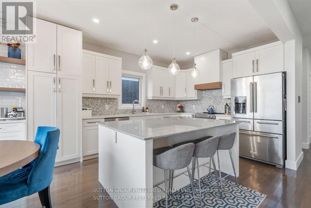 Stunning custom-built home on a premium walkout lot backing onto Creek. This fully custom property features everything upgraded, from modern light switches, to faucets, to quartz countertops throughout and a newly redesigned kitchen with high-end appliances and a dedicated coffee station. Large windows fill the home with natural light, complementing the open layout. Enjoy outdoor living on the double composite deck with glass railing overlooking the creek. Inside, you'll find 4 bedrooms, 3.5 baths, 3 electric fireplaces, a formal dining room along with custom built-ins in the mudroom and basement. The walkout lower level offers a media room, wet bar, spacious rec area, and direct access to the yard. A truly exceptional home showcasing quality, comfort, and beautiful views. (41894827)