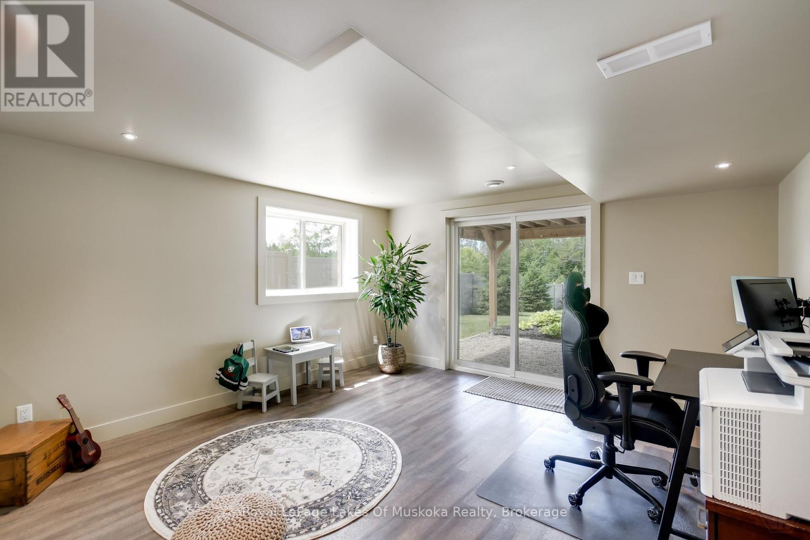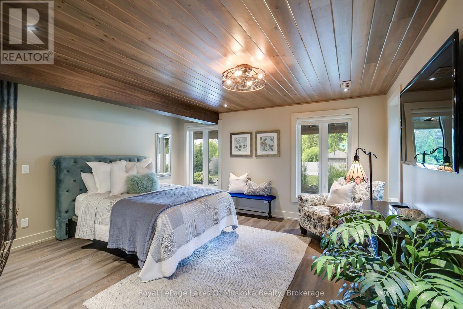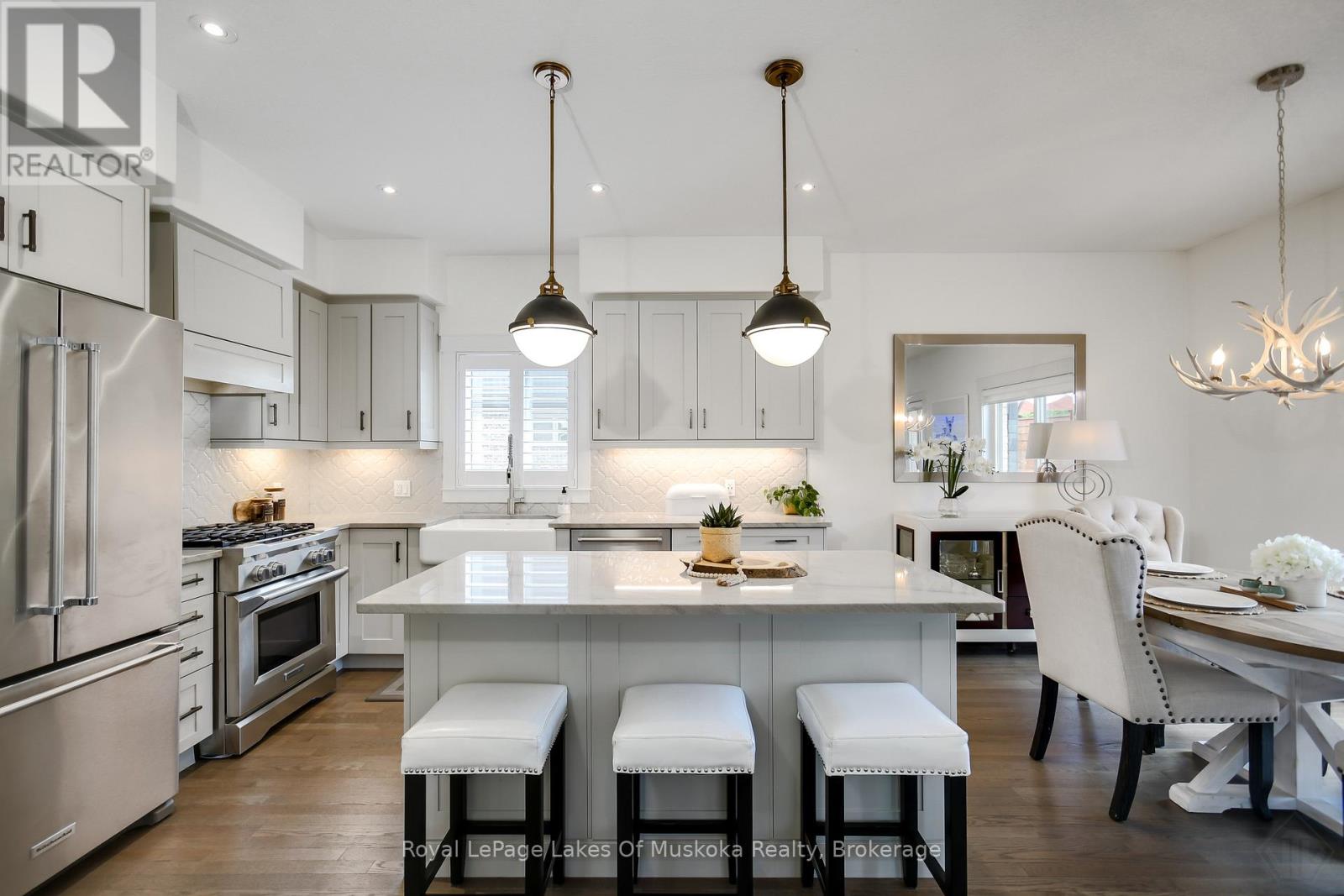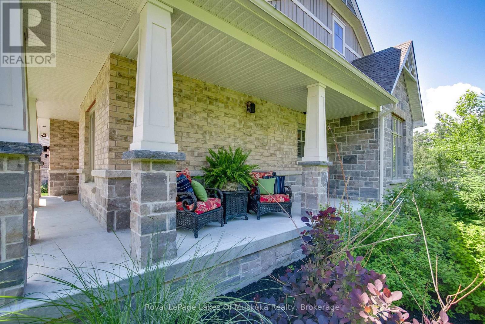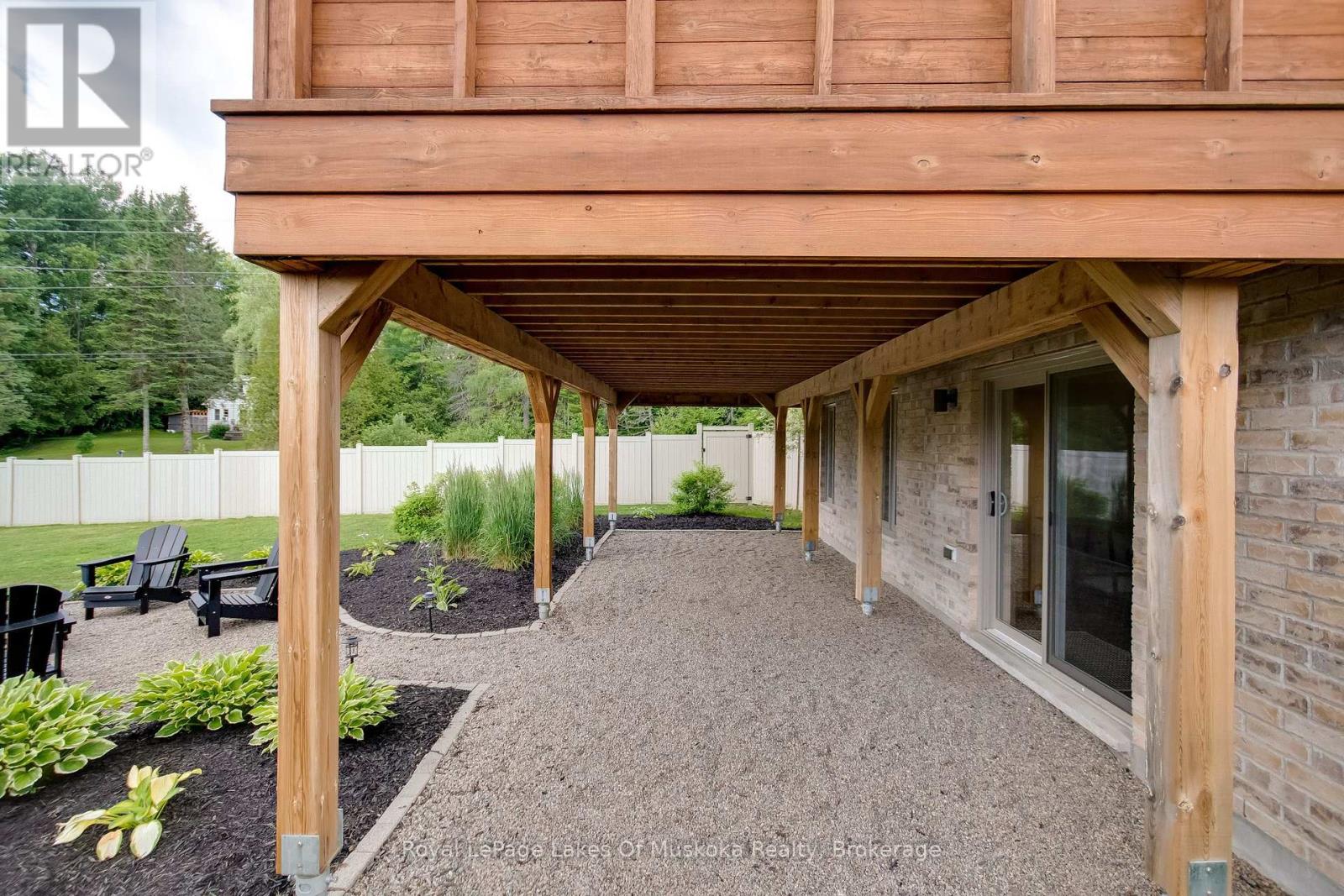 Discover this beautifully crafted all-brick bungalow offering timeless design, modern comfort, and a serene Muskoka lifestyle. Perfectly positioned on a premium corner lot just steps from the Huntsville Golf & Country Club, this turn-key home blends the best of country tranquility and in-town convenience. Inside, a bright and open layout welcomes you with 9-foot ceilings, rich hardwood floors, and abundant natural light. The spacious main level features two bedrooms and 1 1/2 baths, including a primary suite with vaulted ceiling details and a clever laundry nook with folding ledge for everyday ease. At the heart of the home lies a custom chef's kitchen with granite countertops, a central island, premium KitchenAid appliances, and a gas hookup for the stove-a perfect space for cooking, gathering, and entertaining. The walkout lower level is fully finished, offering a versatile space ideal for guests, teens, or extended family. Complete with a full bathroom, oversized egress windows (56 x 24), and a 6-foot patio door, it's bright, inviting, and easily adaptable as a second living area or in-law suite. Thoughtful touches abound throughout-two gas fireplaces, 200-amp electrical service, gas BBQ hookup, reverse osmosis system, exterior Ring cameras, wireless keyless entry add everyday comfort and convenience. Step outside to your professionally landscaped, pool-ready backyard featuring a 32 x 15 cedar deck, custom basketball court, irrigation system, and garden shed, all enclosed by a low-maintenance vinyl fence. The charming wraparound front porch offers the perfect vantage point for morning coffee or sunset views along peaceful Golf Course Road. With quick highway access, modern upgrades, and top-tier craftsmanship, this home offers a complete move-in-ready lifestyle-combining luxury, functionality, and Muskoka charm in one stunning package. (41894838)