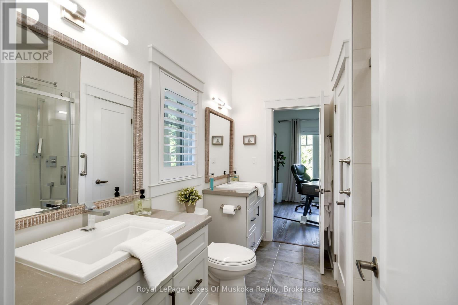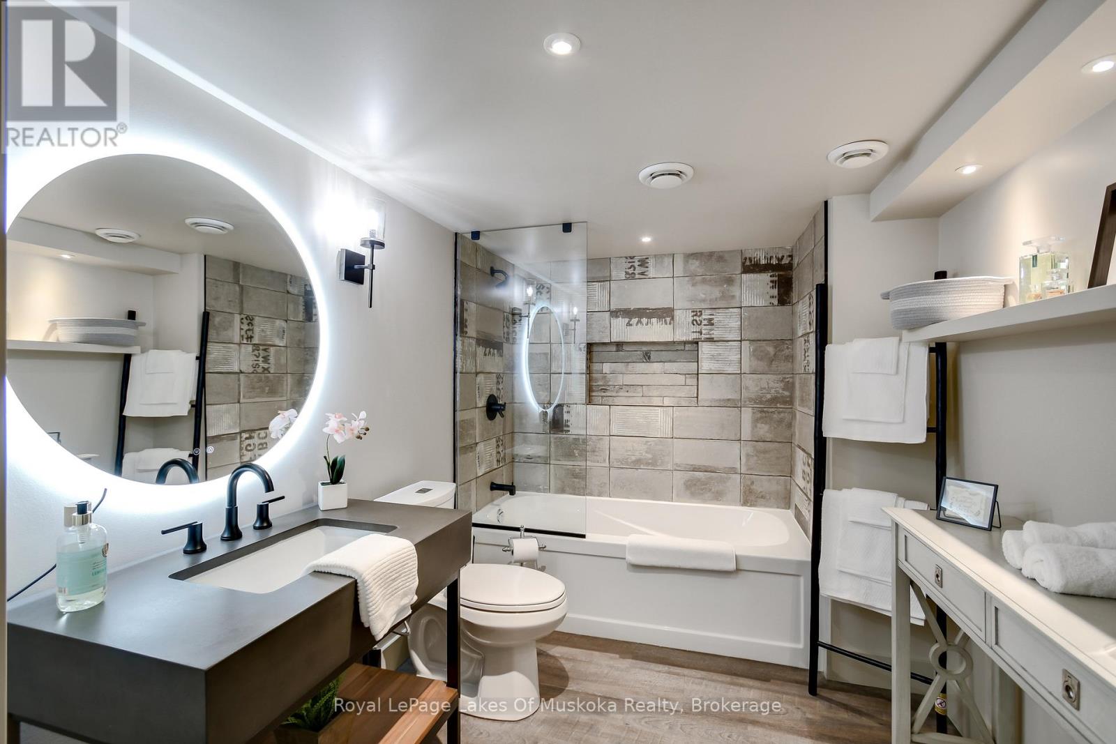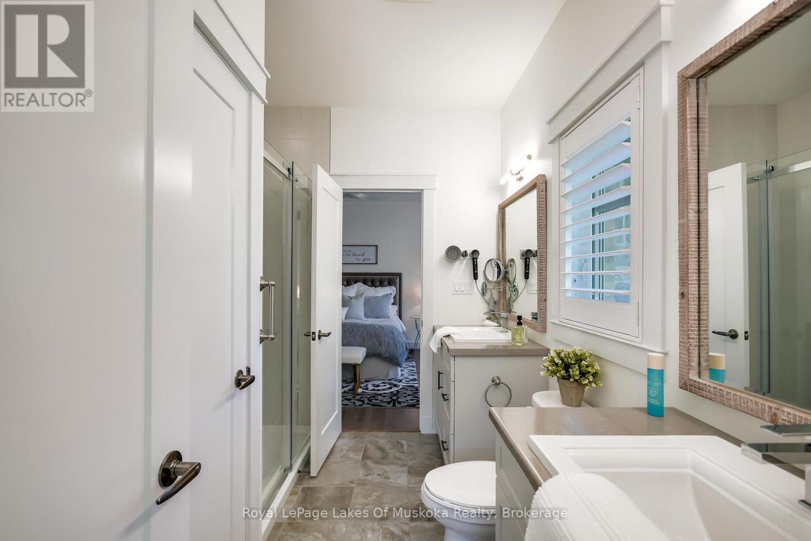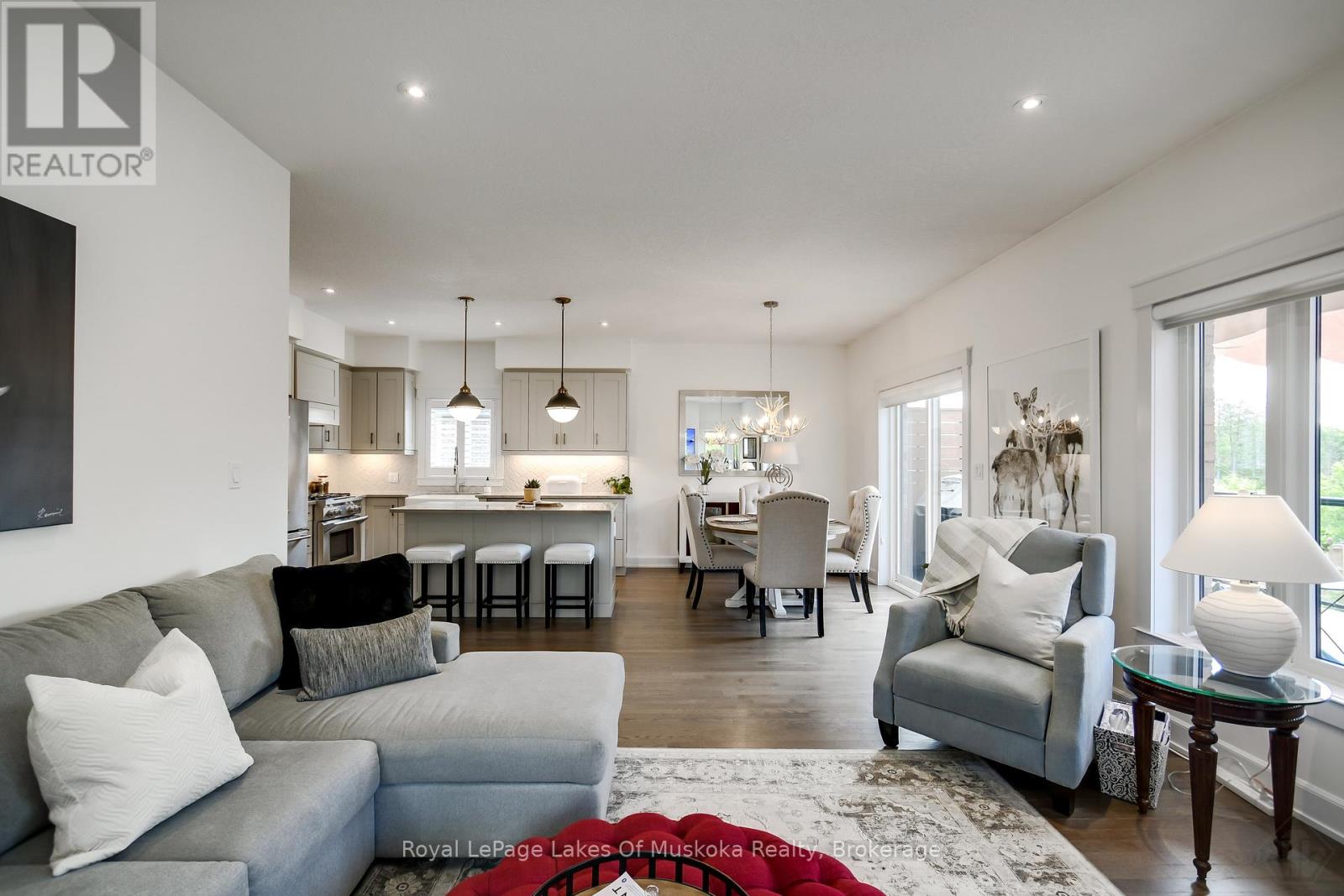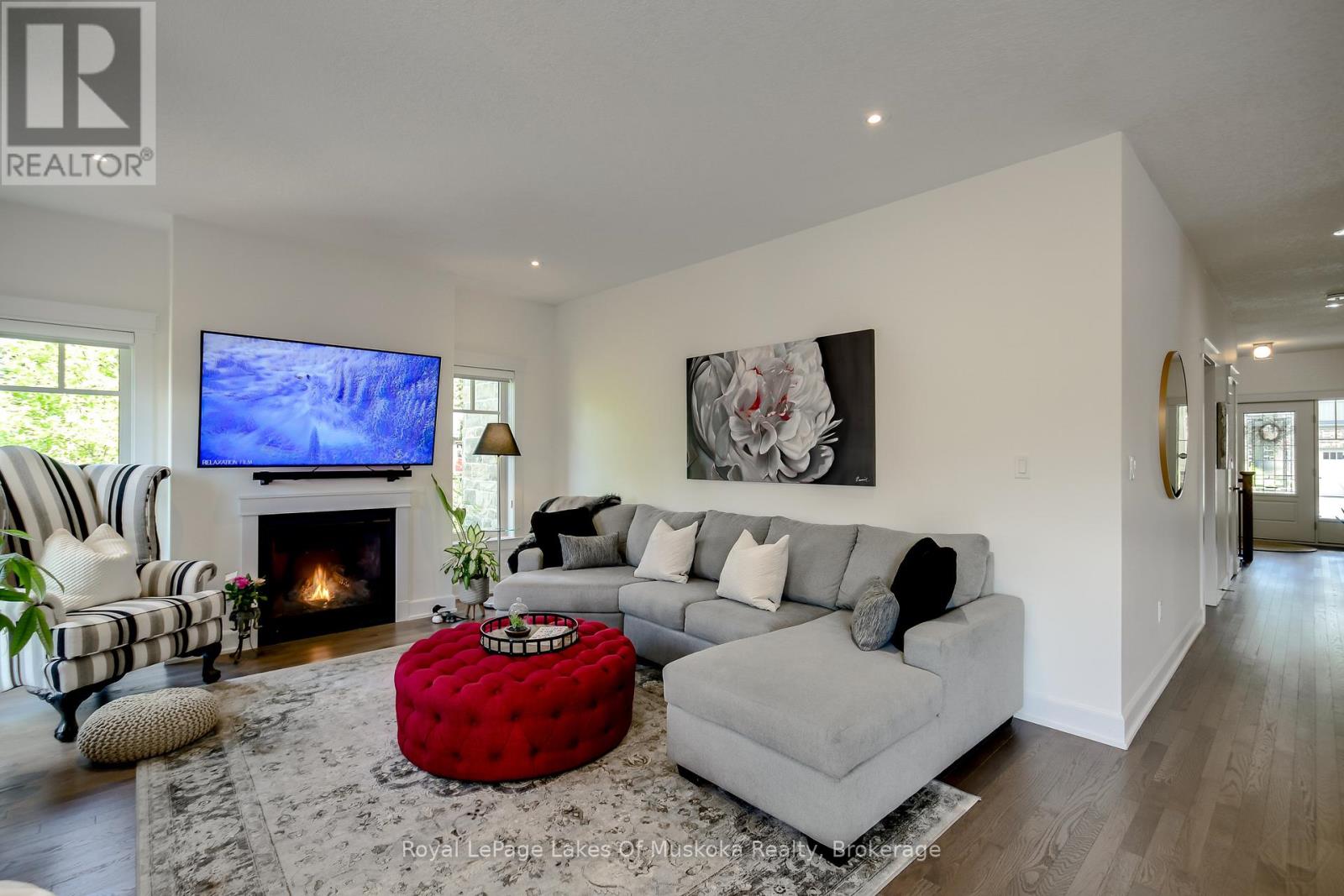 Discover this beautifully crafted all-brick bungalow offering timeless design, modern comfort, and a serene Muskoka lifestyle. Perfectly positioned on a premium corner lot just steps from the Huntsville Golf & Country Club, this turn-key home blends the best of country tranquility and in-town convenience. Inside, a bright and open layout welcomes you with 9-foot ceilings, rich hardwood floors, and abundant natural light. The spacious main level features two bedrooms and 1 1/2 baths, including a primary suite with vaulted ceiling details and a clever laundry nook with folding ledge for everyday ease. At the heart of the home lies a custom chef's kitchen with granite countertops, a central island, premium KitchenAid appliances, and a gas hookup for the stove-a perfect space for cooking, gathering, and entertaining. The walkout lower level is fully finished, offering a versatile space ideal for guests, teens, or extended family. Complete with a full bathroom, oversized egress windows (56 x 24), and a 6-foot patio door, it's bright, inviting, and easily adaptable as a second living area or in-law suite. Thoughtful touches abound throughout-two gas fireplaces, 200-amp electrical service, gas BBQ hookup, reverse osmosis system, exterior Ring cameras, wireless keyless entry add everyday comfort and convenience. Step outside to your professionally landscaped, pool-ready backyard featuring a 32 x 15 cedar deck, custom basketball court, irrigation system, and garden shed, all enclosed by a low-maintenance vinyl fence. The charming wraparound front porch offers the perfect vantage point for morning coffee or sunset views along peaceful Golf Course Road. With quick highway access, modern upgrades, and top-tier craftsmanship, this home offers a complete move-in-ready lifestyle-combining luxury, functionality, and Muskoka charm in one stunning package. (41894838)