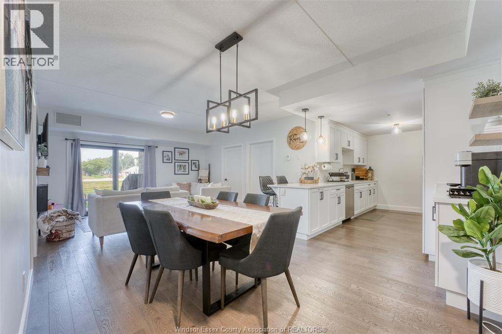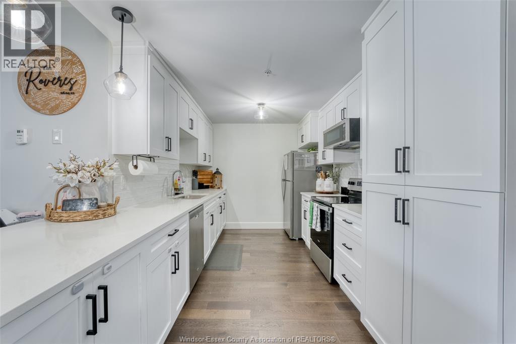 Welcome to effortless living in this beautifully designed, barrier-free 2-bedroom, 2-bathroom ground-floor suite, nestled in a quiet, well-maintained concrete building, with secure entry, that offers both peace of mind and long-term durability. Step inside to discover a spacious, open-concept kitchen featuring sleek quartz countertops, premium soft-close cabinetry, and stainless steel appliances. Enhance your morning routine with the bonus built-in coffee bar. The primary bedroom is a private retreat, complete with a walk-in closet and a bright ensuite bathroom boasting a fully tiled shower and extra built-in storage -ideal for keeping everything neat and organized. Both bathrooms are thoughtfully designed with accessibility and style in mind. Enjoy hardwood flooring throughout the main living areas, with tile in the bathrooms and in-suite laundry room—blending durability with modern design. Every inch of this home has been crafted for comfort, accessibility, and easy living. Bonus: secure storage space on 1st floor. Located in a desirable, walkable neighborhood, you're just minutes from St. Clair College, and the newly developing Shoppes at Heritage. Commuting is a breeze with quick access to Hwy 401, Hwy 3, and the Expressway. Whether you're a first-time buyer, downsizing, investing, or simply looking for a stylish, accessible home with zero compromise—this suite checks every box. (55224226)