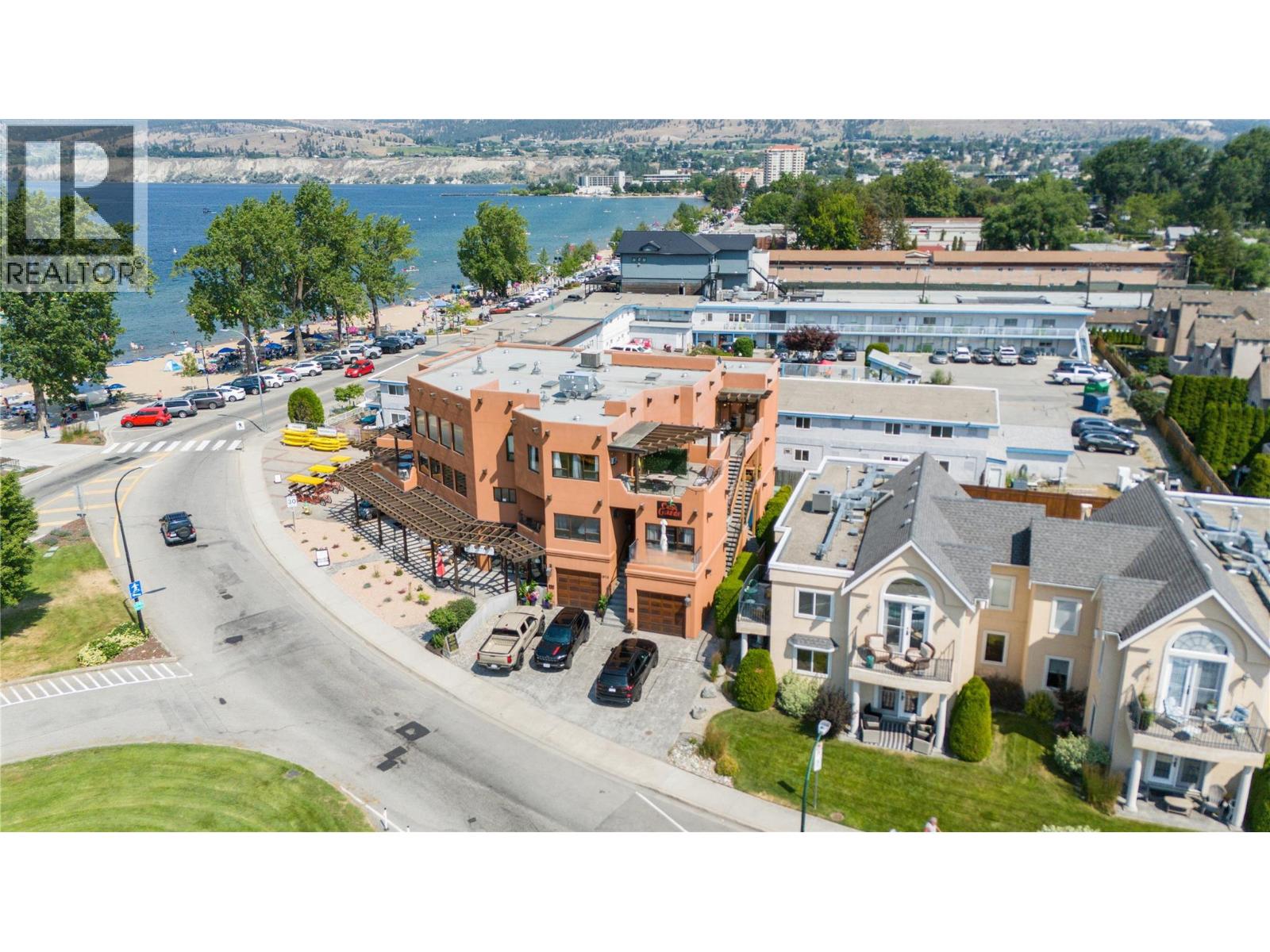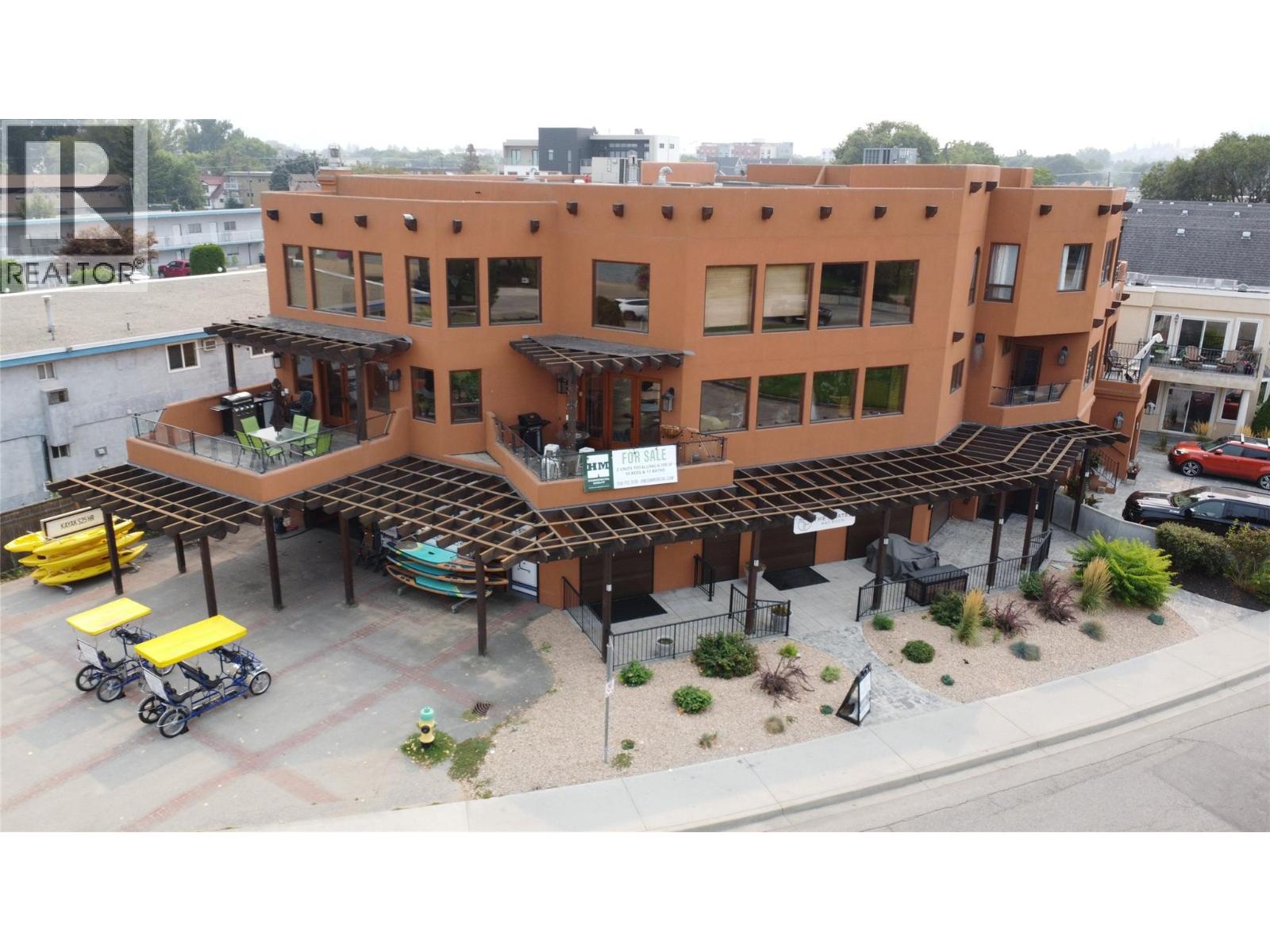 A rare chance to own one or two beautifully designed strata units, perfectly suited for multi-generational living, blended families, or those seeking a luxurious home with rental income potential. Listed in conjunction with Unit #201 (MLS #10371693). Ideally located across from Okanagan Beach in Penticton’s vibrant waterfront district, this property offers unparalleled comfort, convenience, and stunning views. The property features a 5 bedrooms and 5 bathrooms, with the option of a private-entry lock-off suite — ideal for extended family, guests, or generating rental income. The architecturally striking Pueblo Revival/Santa Fe-style building boasts 20-foot ceilings, grand fireplaces, and multiple patios with unobstructed lake and mountain views. Steps from Okanagan Beach and major attractions like the South Okanagan Event Centre and Penticton Trade and Convention Centre, the location offers year-round recreation, dining, and entertainment. Secure parking, storage for outdoor gear, and a low strata fee of $735.31/month enhance the property’s appeal. Whether you envision a spacious family home, a vacation retreat, or a property with flexible rental options, this residence delivers lifestyle versatility and long-term value. Plus, the option to also acquire the main floor commercial unit opens the door to full-building ownership (MLS #10371685). Some photos have been altered to display potential design alternatives. (39595778)