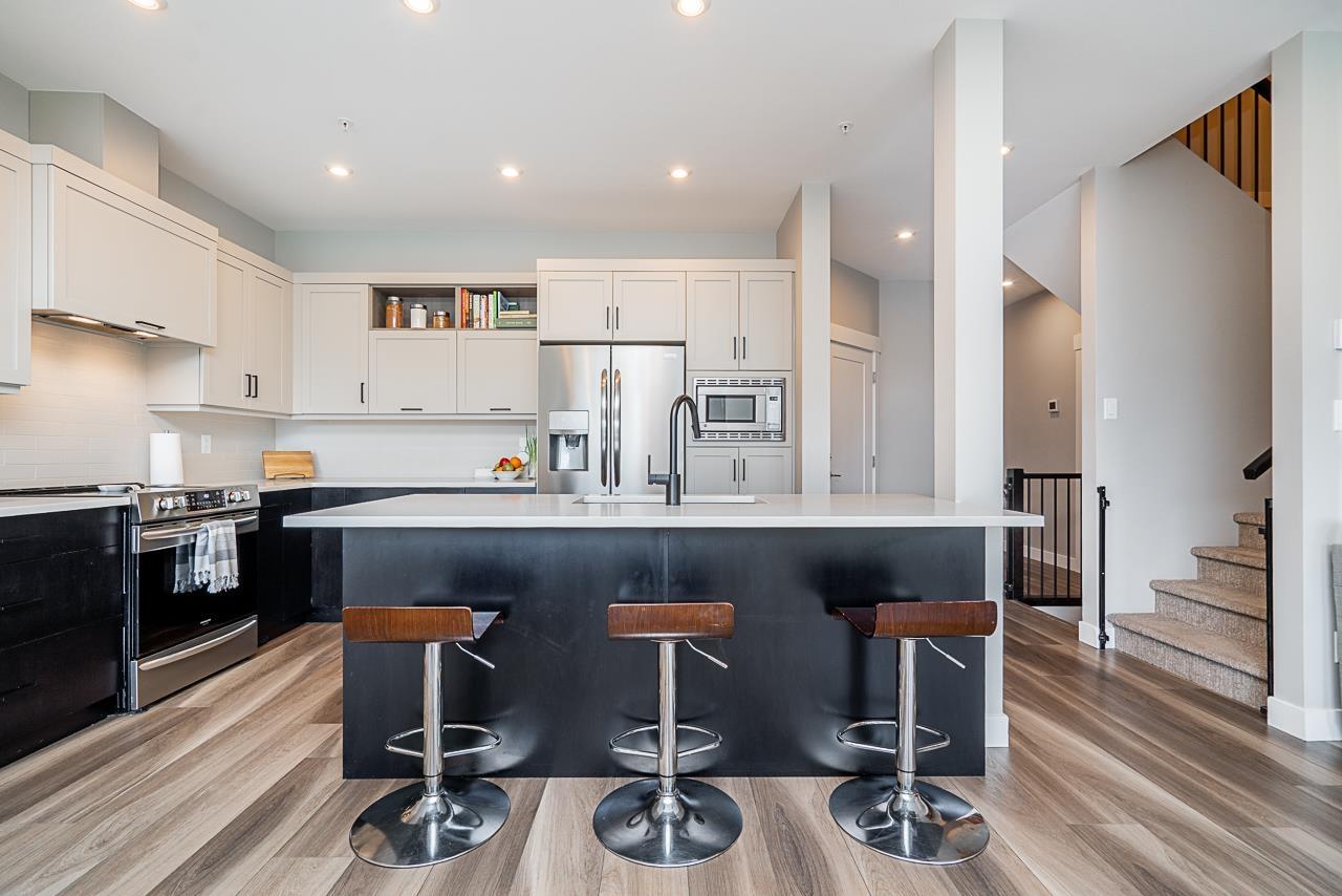 Welcome to Water's Edge! This beautiful 4-bedroom, 4-bathroom, three level townhouse with beautiful views of the Fraser River is not to be missed! Open-concept kitchen & living room area with stainless steel appliances, quartz countertops is perfect for hosting, with access to the deck with custom sun shades. This townhouse features 3 bedrooms up, with a beautiful primary suite boasting a large walk-in closet, ensuite with soaker tub and shower, and has its own private deck to enjoy the amazing views. Downstairs enjoy a large Rec Room, and additional 4th bedroom, along with a large storage room, and a fully fenced patio area on the basement floor, perfect for kids or pets. This home comes complete with a double side-by-side garage, A/C. Call to book your private showing today! (32301227)