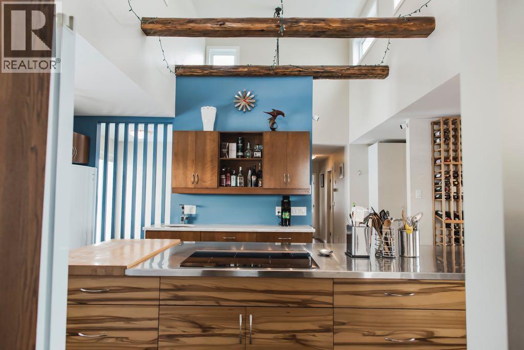 This stunning 1,761 sq. ft. custom-built Fusion home sits on 9.2 acres of serene countryside, offering breathtaking mountain views, ultimate privacy, and gorgeous sunsets. Designed with both luxury and functionality in mind, it features 5 spacious bedrooms and 3 bathrooms, including a primary suite with a spa-like 5-piece ensuite and walk-in closet. The home’s charm is enhanced by real wood beams, triple-pane windows, power blinds, and a cozy window seat with wood-burning fireplace. The chef’s kitchen boasts Corian, stainless steel, and butcher block countertops, an induction cooktop, built-in oven, wine rack, large walk in pantry with ample storage, tons of natural light, all complemented by stylish and durable vinyl plank flooring. Additional highlights include an ICF foundation for superior energy efficiency, in-floor heating in the bathrooms and laundry room, a pre-wired sound system, and a heated garage with an extra-long bay. Outdoor enthusiasts will appreciate the 30-amp RV plug, natural gas bbq hook up, 28x12 shed on skids for extra storage, and a beautifully landscaped yard with an irrigation system and 1,000L tank. Well report available, tank and field septic. This exceptional property is the perfect blend of modern comfort and peaceful country living—schedule your private showing today! (31502659)