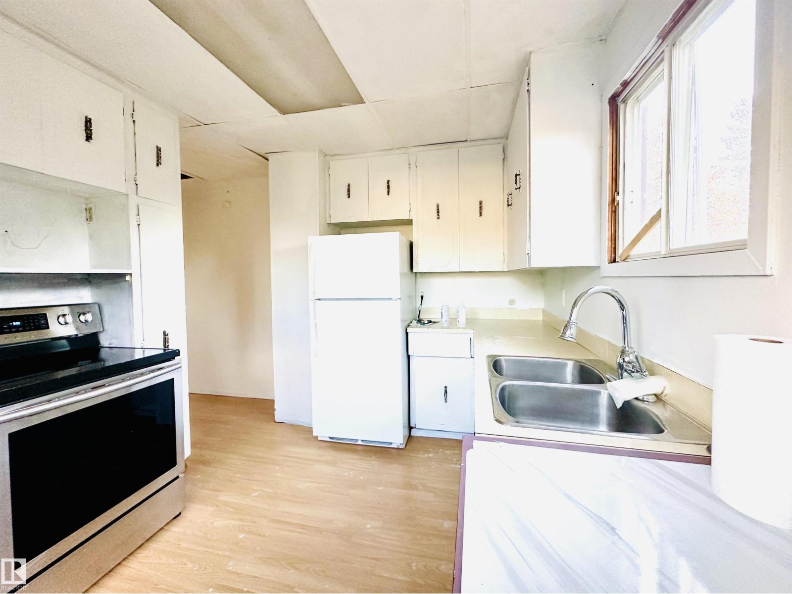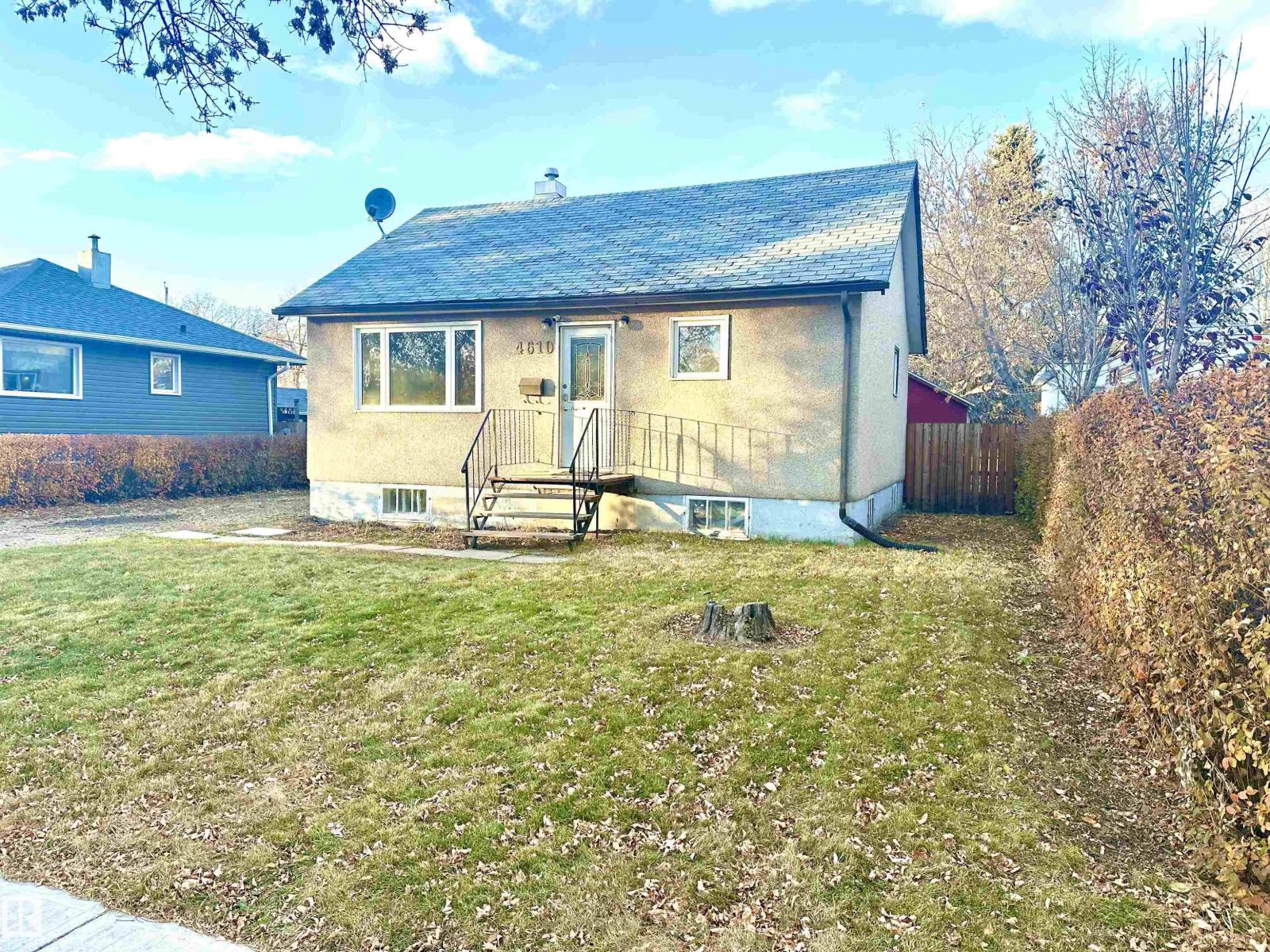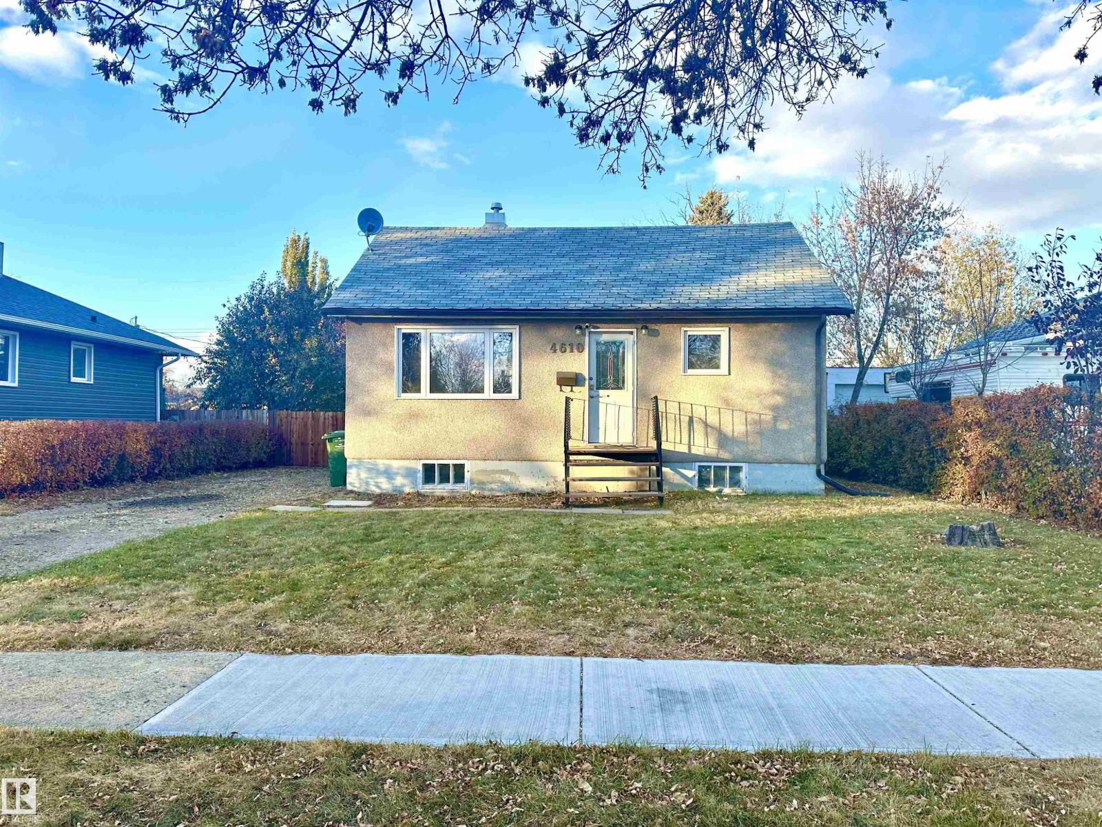 Great location! This cute home comes with a full basement, a fully fenced spacious yard ready for family fun & pets to enjoy. Budget friendly starter home with loads of potential. Located in a mature area of town, with walking distance to schools, playgrounds & downtown Wetaskiwin. The main level offers 2 bedrooms, generous sized living room with a large picture window, 4 pc. bath & a cozy kitchen overlooking the back yard. The bsmt. comes with a 2 pc. bathroom, large family room, laundry, utility & storage plus a flex room with a window. Quick possession is available. There is plenty of room for parking both on & off street. If you're looking for a home to add your creative touch this property may be perfect for all your fabulous design ideas both inside & out. All existing appliances, shed in back yard, plus central air conditioning unit stays. (33694359)