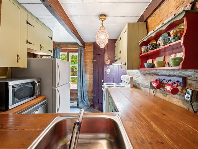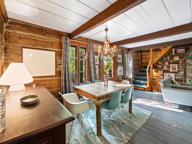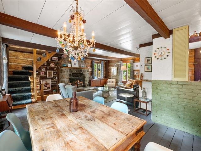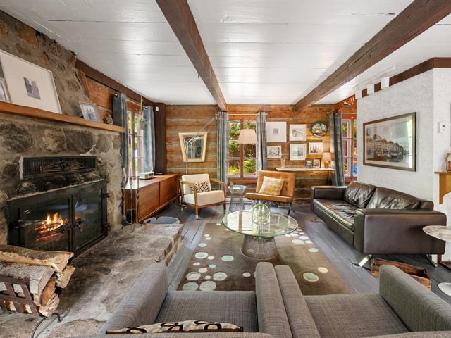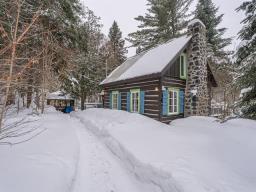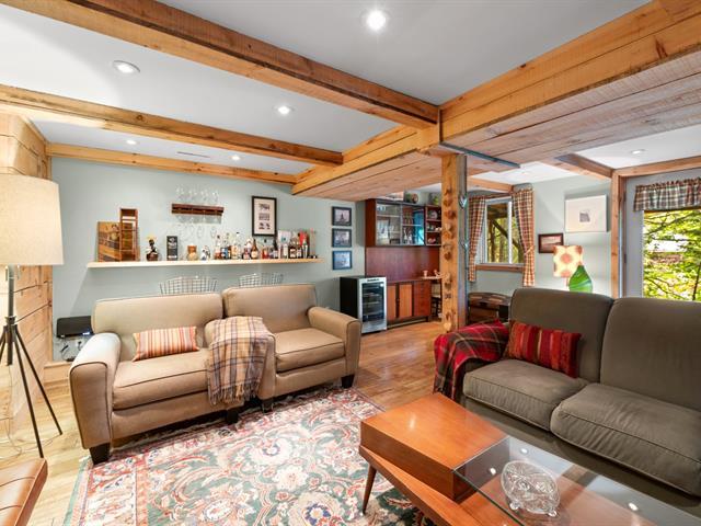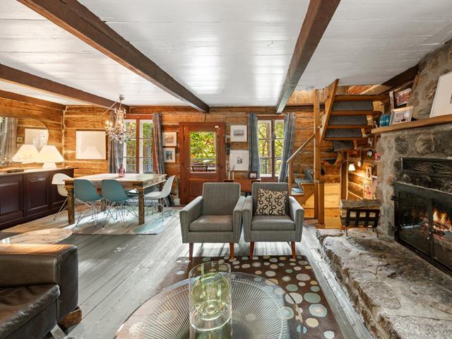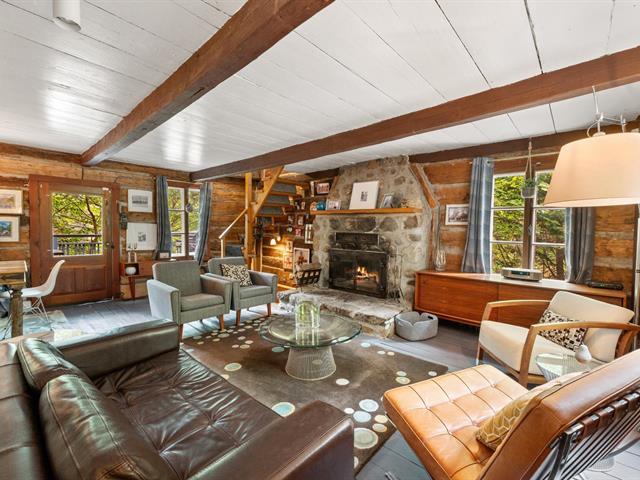 Welcome to 1330 montée Gagnon, in Val-David. A log home surrounded by forest, offering a living room with stone fireplace, dining room, rustic kitchen and a bathroom on the main floor. Upstairs: two bedrooms, including a primary bedroom with exposed beams. The finished basement features a family room and an additional bathroom. Outdoors: terrace, gazebo and complete privacy, just steps from the regional park and the village of Val-David. (50963669)