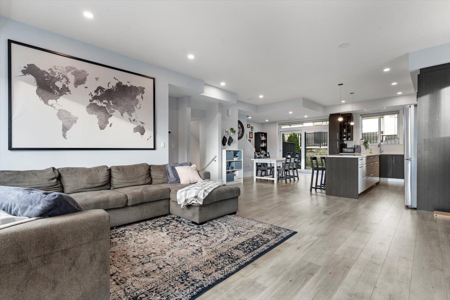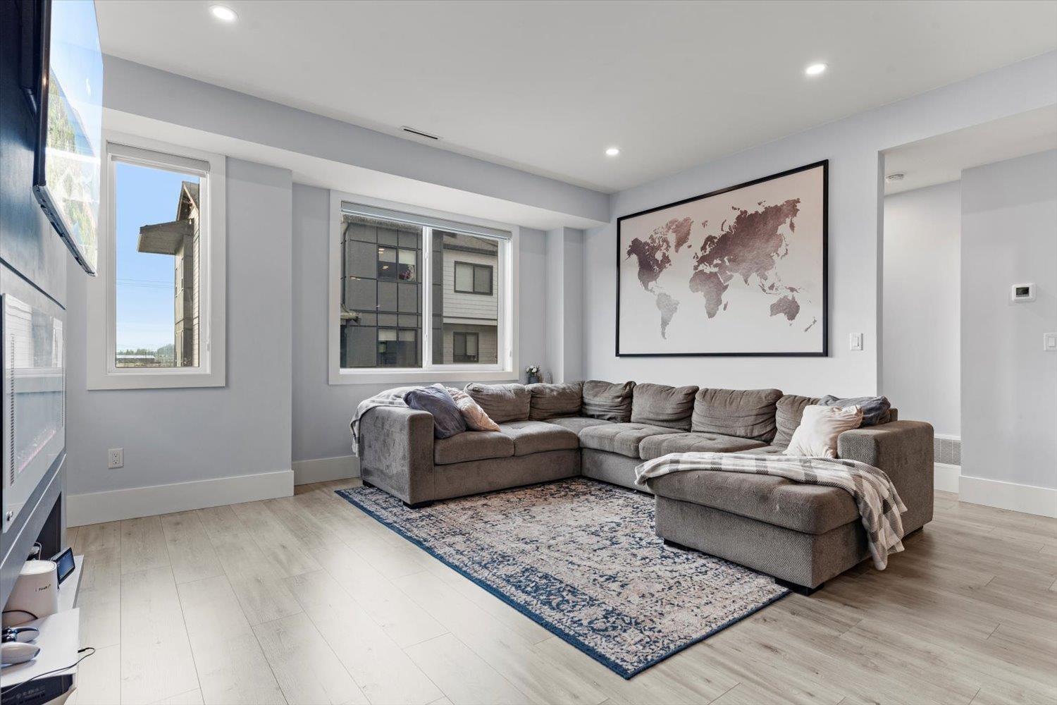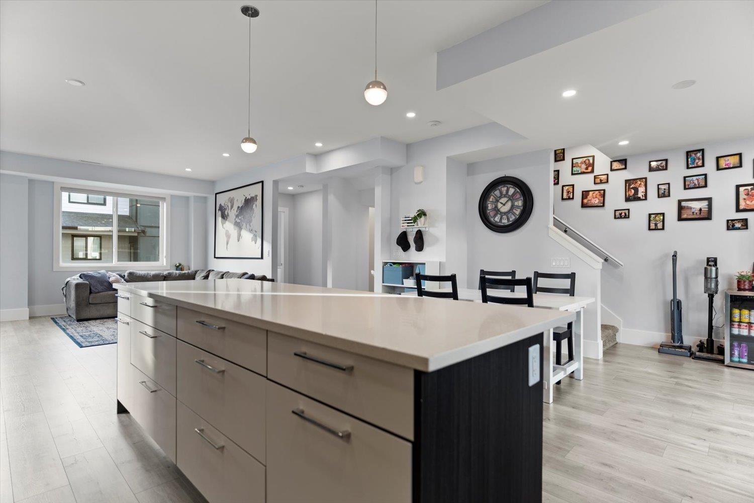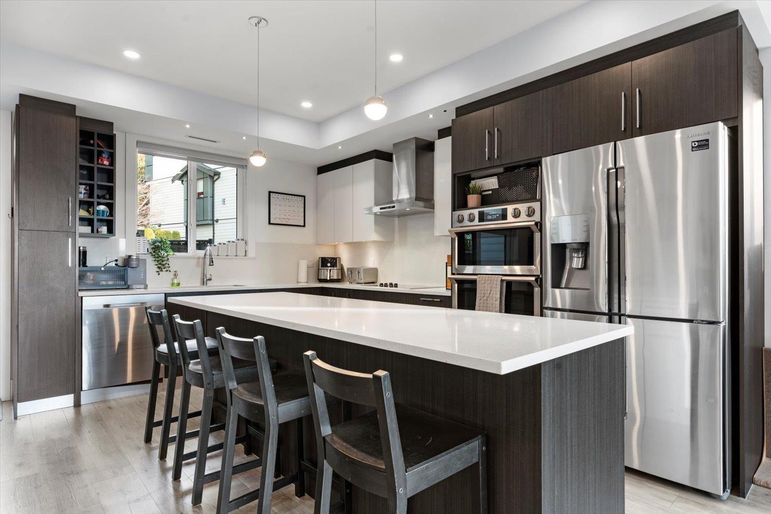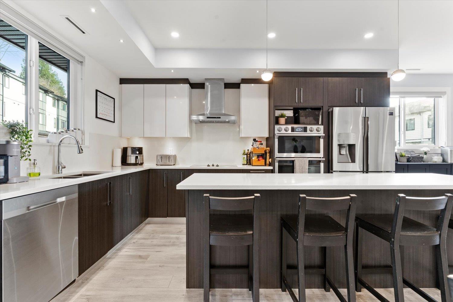 Welcome to Breeze Townhomes-an exceptional development featuring geothermal heating and cooling in every home. This well-maintained end unit offers bright, open concept living with large windows and modern finishes. The main floor features a stylish kitchen with quartz counters, new flooring, double wall oven, S/S appliances, large island with eating bar, accent lighting and two-tone cabinetry. Also, on the main, a spacious living room with a fireplace feature and deck access, plus a bathroom. Upstairs offers 3 bedrooms, including a primary with walk-in closet and ensuite. The lower level includes a fourth bedroom and full bath-ideal for teens or guests. Double garage, fresh paint, new washer/dryer, and quick freeway access complete the package. (32301619)