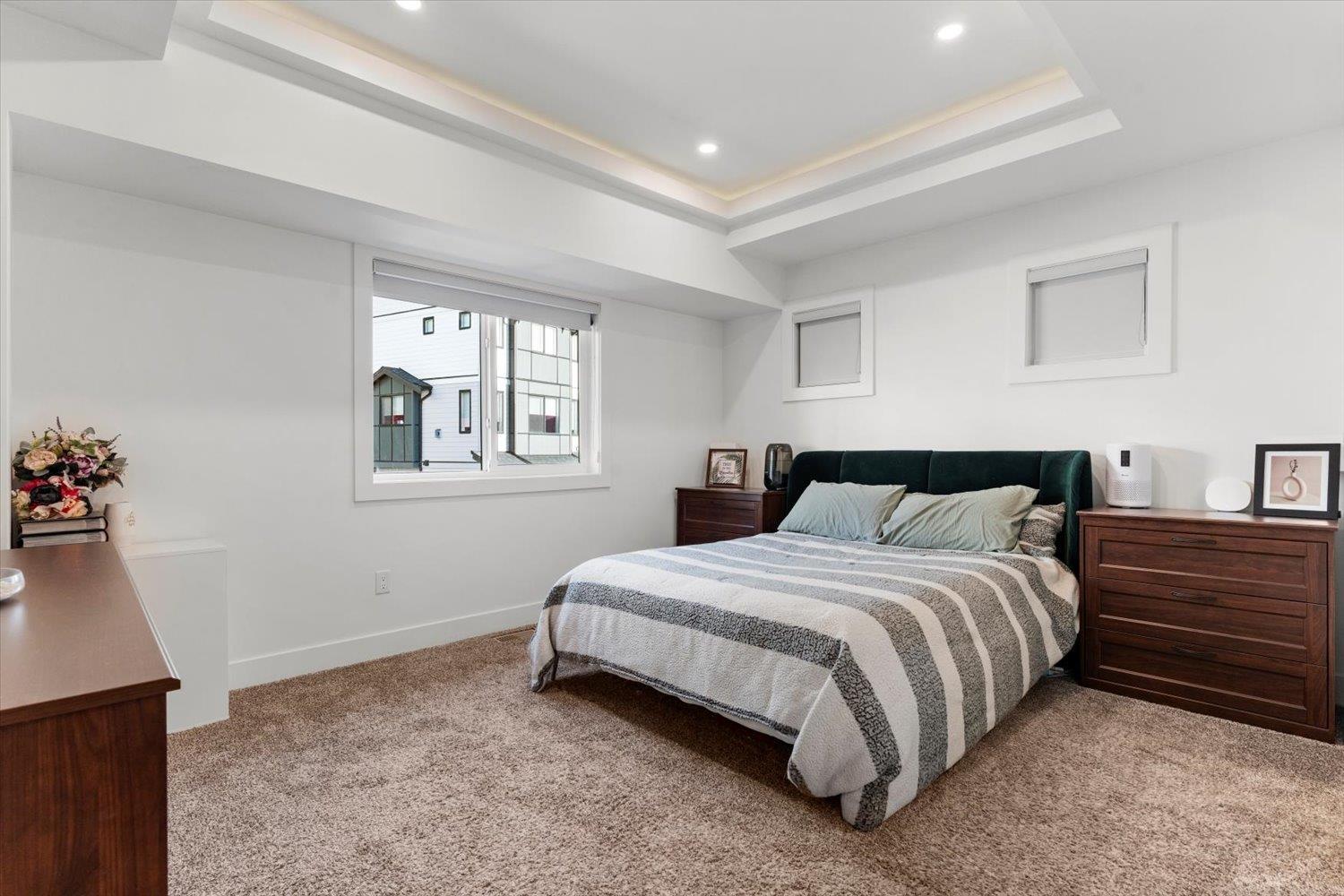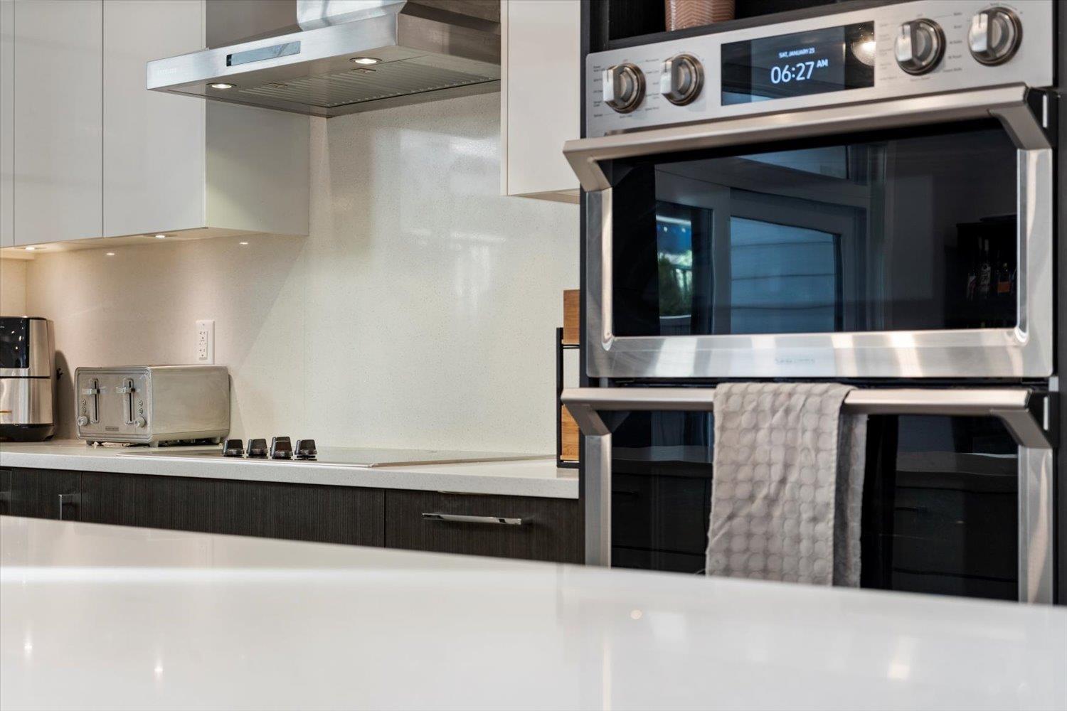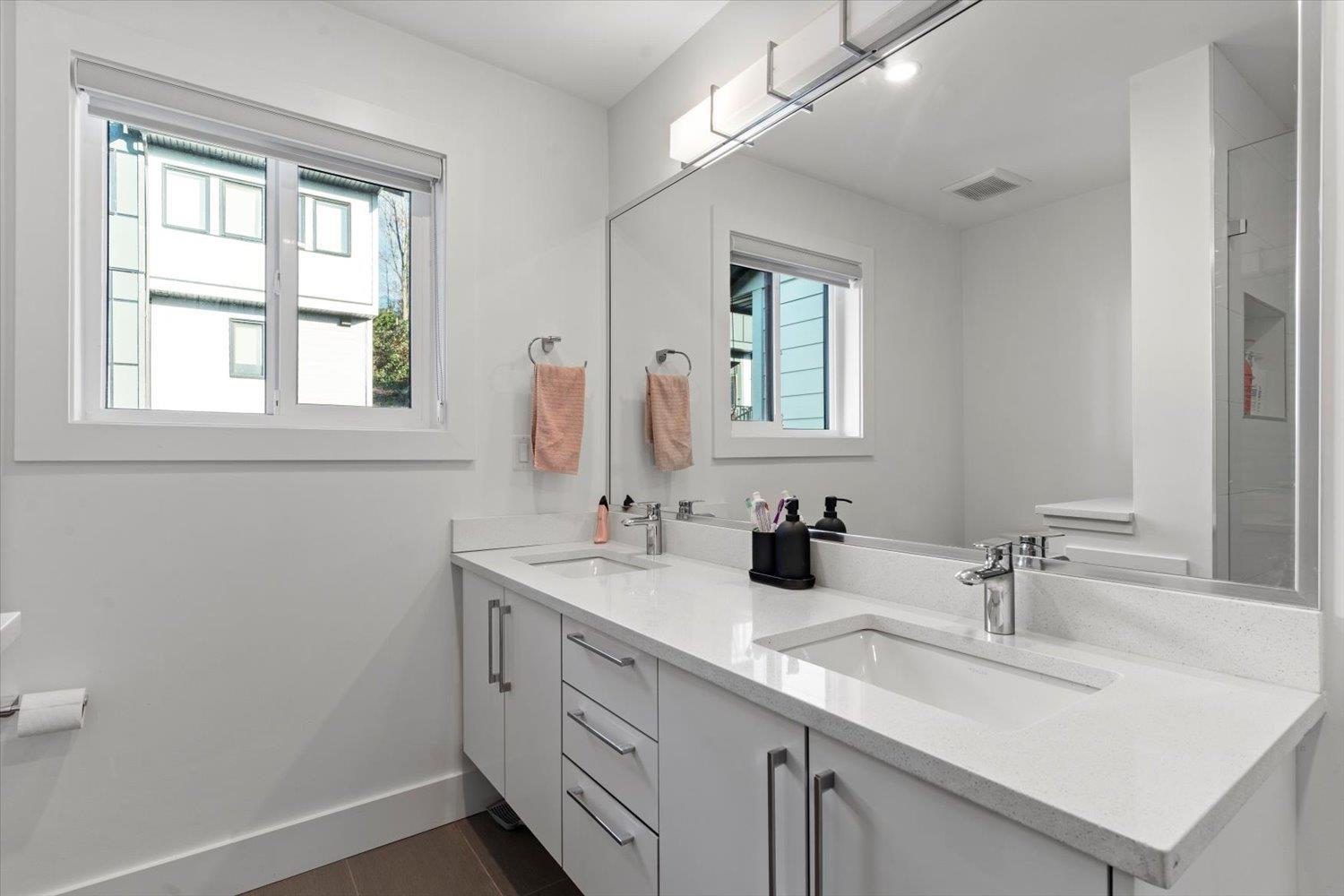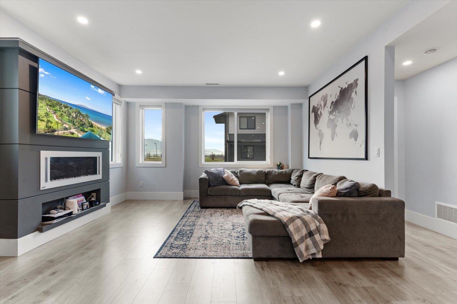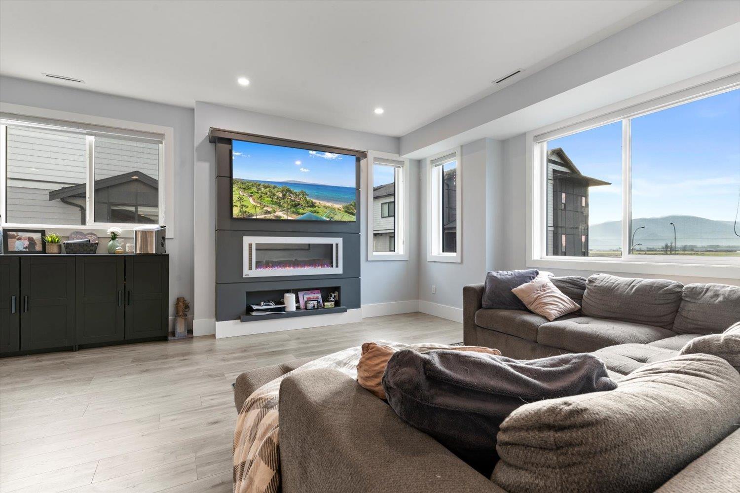 Welcome to Breeze Townhomes-an exceptional development featuring geothermal heating and cooling in every home. This well-maintained end unit offers bright, open concept living with large windows and modern finishes. The main floor features a stylish kitchen with quartz counters, new flooring, double wall oven, S/S appliances, large island with eating bar, accent lighting and two-tone cabinetry. Also, on the main, a spacious living room with a fireplace feature and deck access, plus a bathroom. Upstairs offers 3 bedrooms, including a primary with walk-in closet and ensuite. The lower level includes a fourth bedroom and full bath-ideal for teens or guests. Double garage, fresh paint, new washer/dryer, and quick freeway access complete the package. (32301619)