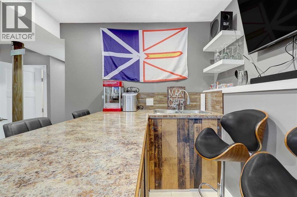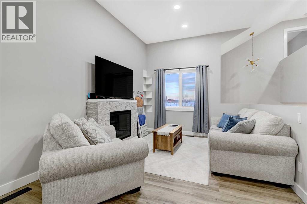 STUNNING, BETTER-THAN-NEW MODIFIED BI LEVEL FACING POND IN WESTGATE! This extensively finished modified bi-level sits in a sought-after pocket of Westgate, only a short walk from the new hospital, the college, multiple shopping districts, and a wide selection of restaurants. Built in 2018, the property offers a move-in-ready experience with four bedrooms, three bathrooms, a fully developed yard, a heated and insulated garage, fencing already in place, and an enclosed three-season deck. The home presents even better than new, featuring fresh interior paint, a new fridge and stove, a basement wet bar, and a remarkable custom shower constructed with tempered glass. The front entry showcases impressive vaulted ceilings and opens into a bright, seamless layout that blends the kitchen, dining area, and living room. The kitchen is equipped with quartz surfaces, a centre island with seating space, a walk-in pantry, generous cabinetry, and high-end appliances. The dining area easily accommodates a large table for gatherings and entertaining, while the living room is framed by an oversized window and an eye-catching fireplace. Two well-proportioned bedrooms, a full bathroom, and convenient hallway linen storage complete the main level. The private primary suite is set above the garage, offering a walk-in closet and a four-piece ensuite. The fully completed basement is a standout feature, offering an expansive family room, a full wet bar, a showpiece bathroom with oversized tile flooring and a tiled shower, and an additional spacious bedroom. The garage includes heat, insulation, and a utility sink with hot and cold taps. Outside, the backyard is fully fenced + landscaped and includes a covered three-season deck with storage beneath. (Hot tub is negotiable) (31503179)