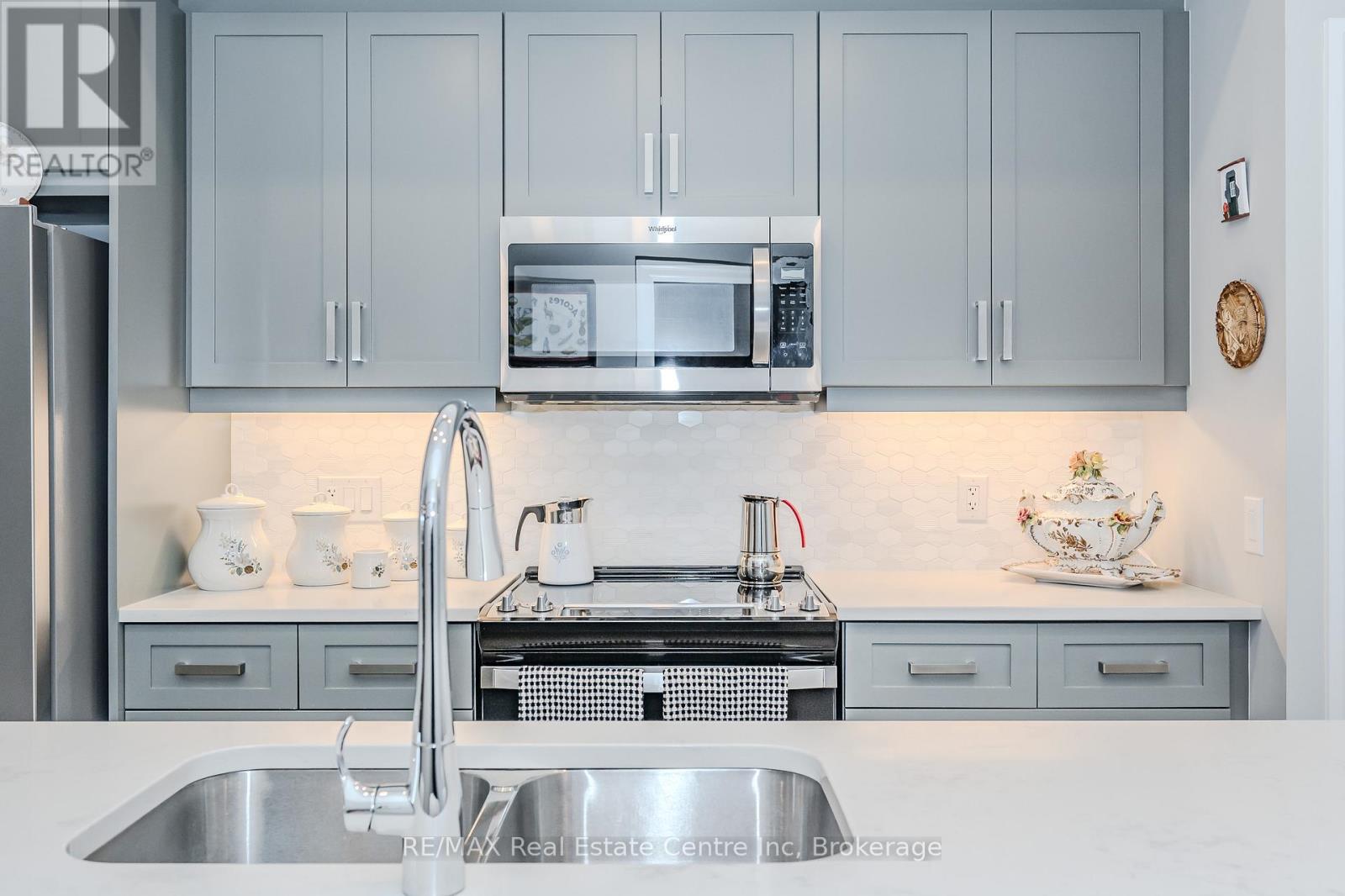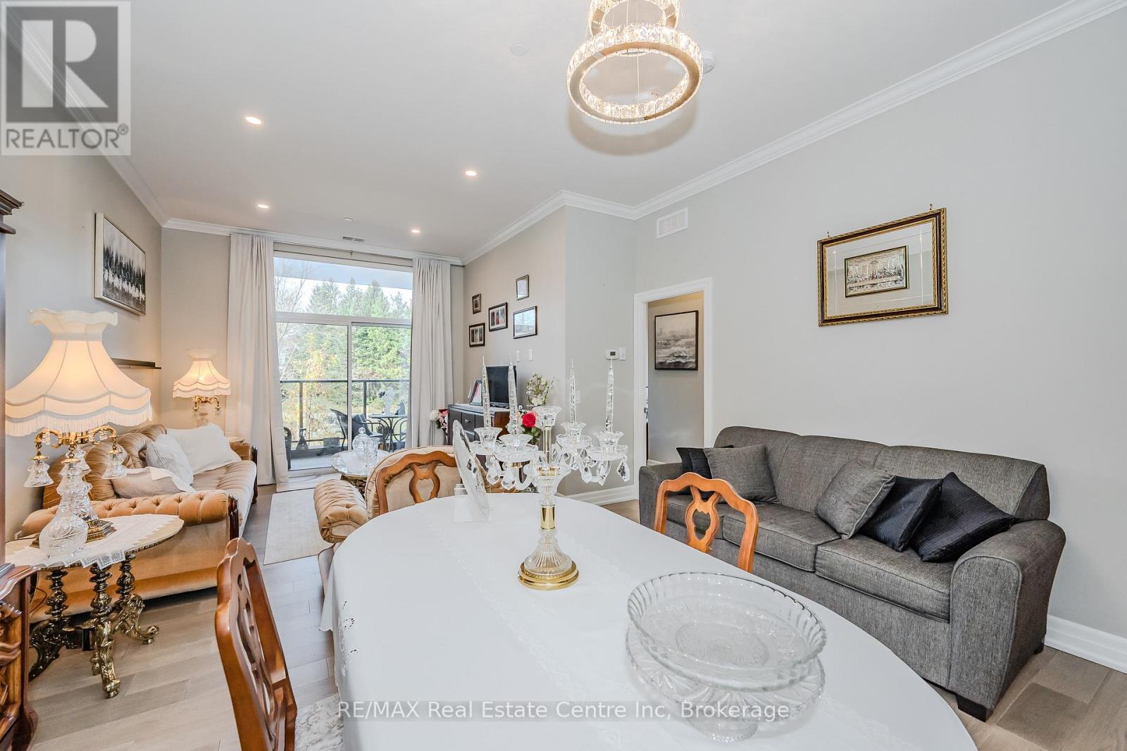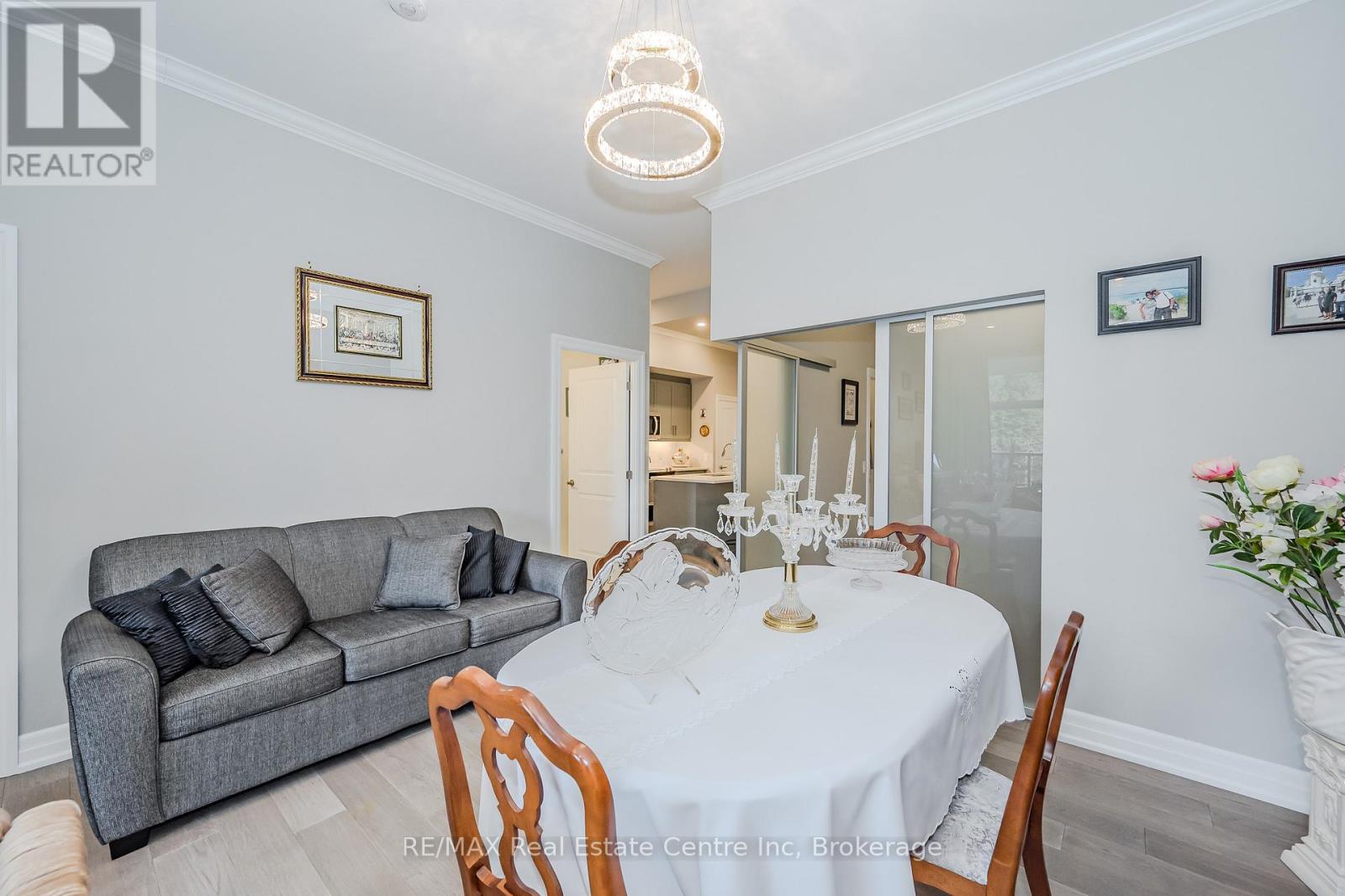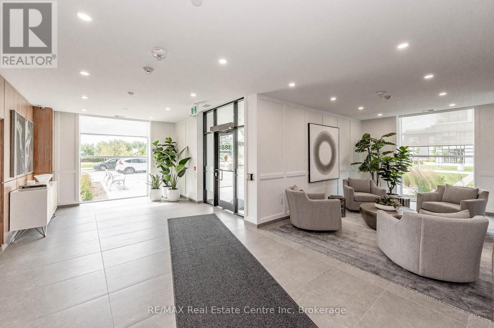 Make this gorgeous ground-floor condo located in the prestigious south end of Guelph your home. Professionally designed 2-bedroom, 2-bathroom suite with luxurious upgrades and TWO underground parking spaces. The 10' ceilings bring in more natural light and make the open-concept floor plan feel very spacious. With stunning finishes and a great layout, spending time at home is relaxing and joyful. The modern kitchen has plenty of cabinets, numerous drawers and a walk-in pantry for additional storage. Undermount lighting, built-in stainless steel appliances, a stylish backsplash, and a large island complete the kitchen. The spacious dining area overlooks the living room. A cute living room with large sliding doors leads to a private balcony. Enjoy a morning coffee or afternoon tea in your secluded outdoor space. The large primary bedroom has a walk-in closet and a luxurious ensuite bathroom with a floor-to-ceiling glass shower and heated flooring. With glass sliding doors that open up to the living/dining room, you will be pleased with the functionality of a second bedroom. With a Murphy bed already installed, it can be used as an office and/or a bedroom. The main 4-piece bath with heated floors and in-suite laundry completes this suite. Quartz counters and hardwood flooring throughout, crown molding, and pot lights are a bonus. This building has amazing amenities. With an HD golf simulator, a very well-equipped gym, a guest suite, bicycle storage, and a gorgeous 14th-floor resident lounge with a separate bar area, games room, and a balcony with panoramic views and great scenery. If you are expecting more guests, you can also book the building's guest suite. Located in Guelph's desirable south end, this beautiful condo is just steps away from great shopping, restaurants, banks, and cinema. Easy access to HWY 401 and on a bus route to UoG. (41899264)