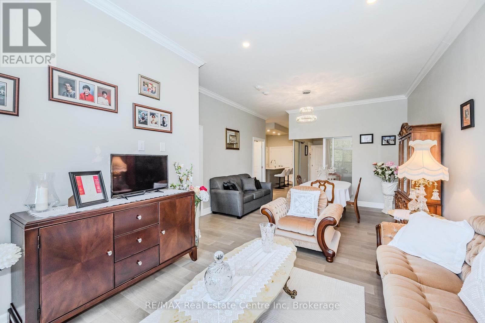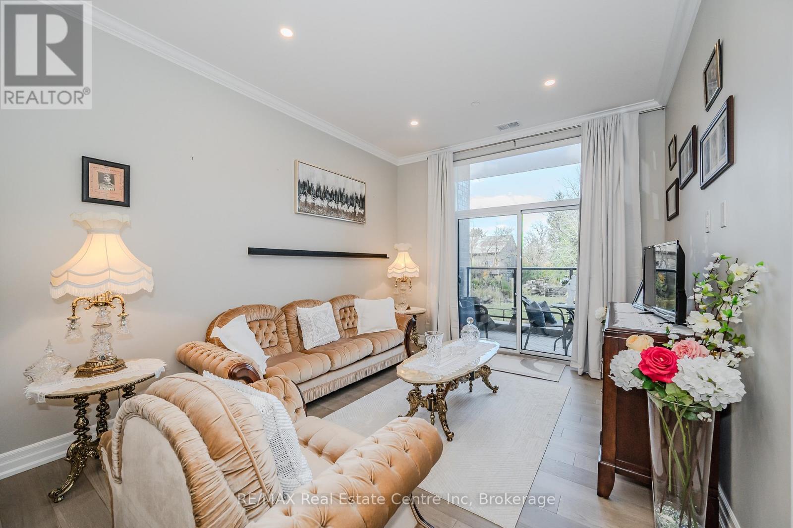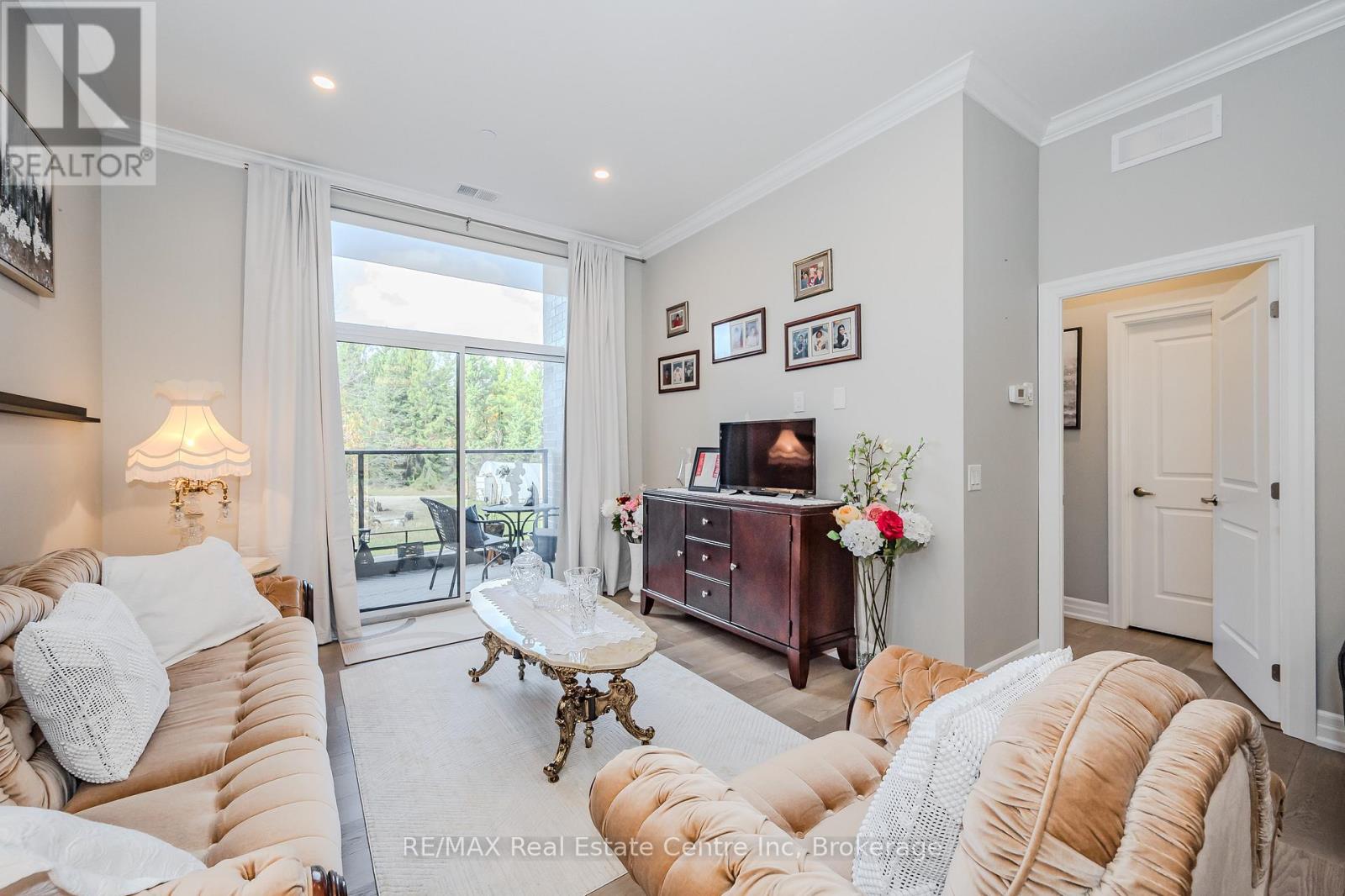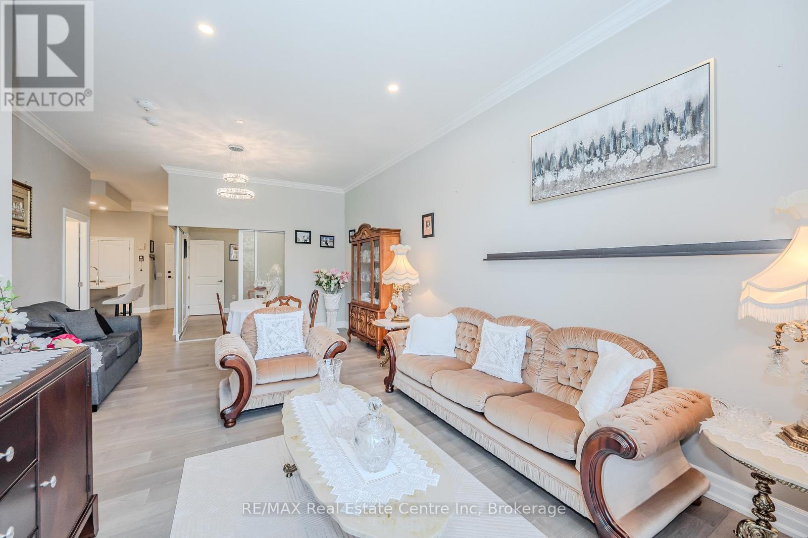 Make this gorgeous ground-floor condo located in the prestigious south end of Guelph your home. Professionally designed 2-bedroom, 2-bathroom suite with luxurious upgrades and TWO underground parking spaces. The 10' ceilings bring in more natural light and make the open-concept floor plan feel very spacious. With stunning finishes and a great layout, spending time at home is relaxing and joyful. The modern kitchen has plenty of cabinets, numerous drawers and a walk-in pantry for additional storage. Undermount lighting, built-in stainless steel appliances, a stylish backsplash, and a large island complete the kitchen. The spacious dining area overlooks the living room. A cute living room with large sliding doors leads to a private balcony. Enjoy a morning coffee or afternoon tea in your secluded outdoor space. The large primary bedroom has a walk-in closet and a luxurious ensuite bathroom with a floor-to-ceiling glass shower and heated flooring. With glass sliding doors that open up to the living/dining room, you will be pleased with the functionality of a second bedroom. With a Murphy bed already installed, it can be used as an office and/or a bedroom. The main 4-piece bath with heated floors and in-suite laundry completes this suite. Quartz counters and hardwood flooring throughout, crown molding, and pot lights are a bonus. This building has amazing amenities. With an HD golf simulator, a very well-equipped gym, a guest suite, bicycle storage, and a gorgeous 14th-floor resident lounge with a separate bar area, games room, and a balcony with panoramic views and great scenery. If you are expecting more guests, you can also book the building's guest suite. Located in Guelph's desirable south end, this beautiful condo is just steps away from great shopping, restaurants, banks, and cinema. Easy access to HWY 401 and on a bus route to UoG. (41899264)