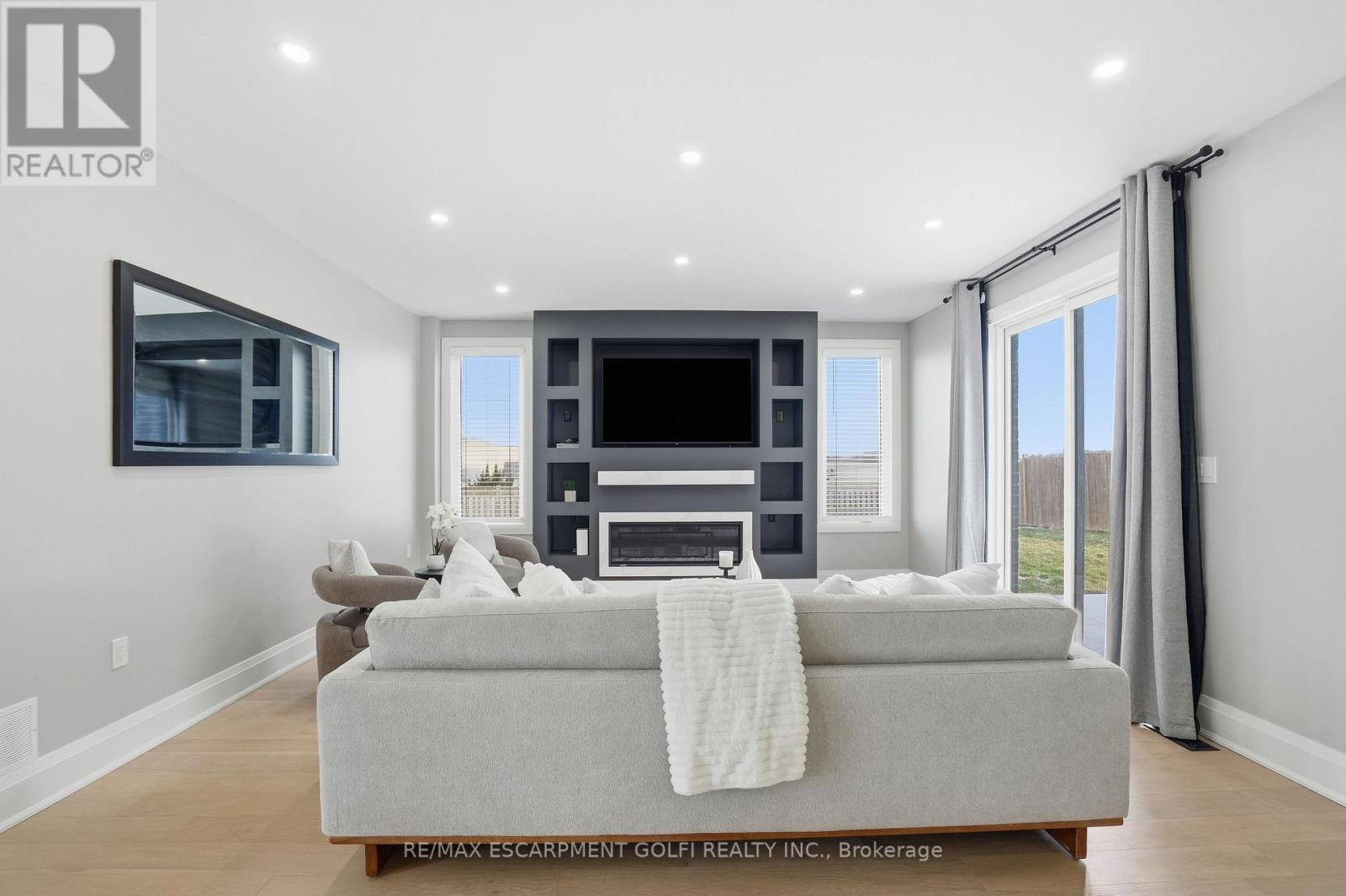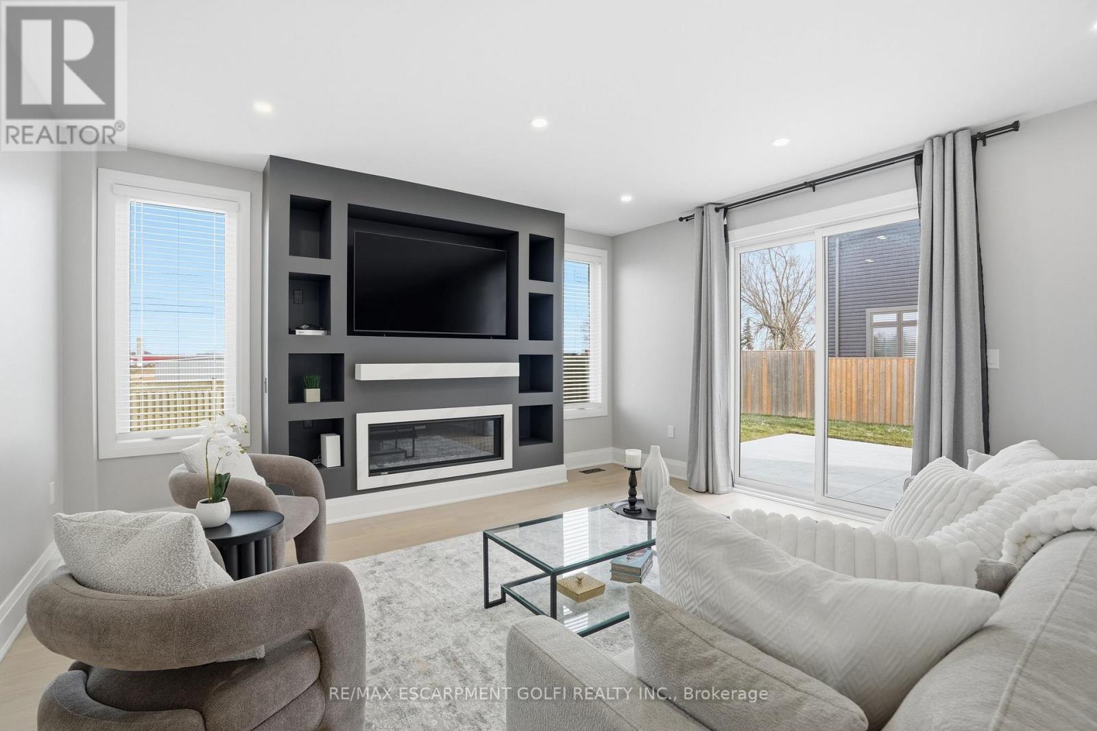 Welcome to 21 Haldimand 66 Road, where refined country living meets easy access to the city. Set on a premium 100 x 115 ft lot, this fully finished home offers nearly 3,800 sq ft of thoughtfully designed living space with 4 bedrooms and 3.5 bathrooms. A striking porcelain tile foyer, black accents, and feature staircase create an impressive first impression. The living room showcases a floor to ceiling gas fireplace, engineered flooring, oversized windows, and pot lighting. The open concept kitchen and dining area feature quartz counters, full height quartz backsplash, designer lighting, and new stainless steel appliances. The primary suite includes wide plank hardwood and a spa inspired ensuite. The finished lower level offers a wet bar, gas fireplace, bedroom, and flexible living space. Enjoy a fully fenced yard, concrete patio, oversized driveway, and double garage. Major updates completed in 2023. A rare opportunity minutes from urban amenities. (41899167)