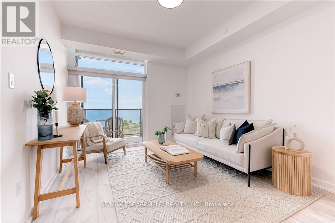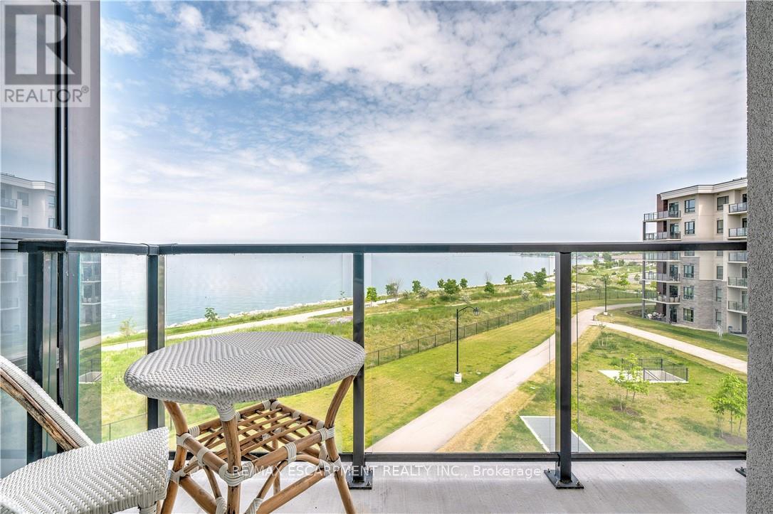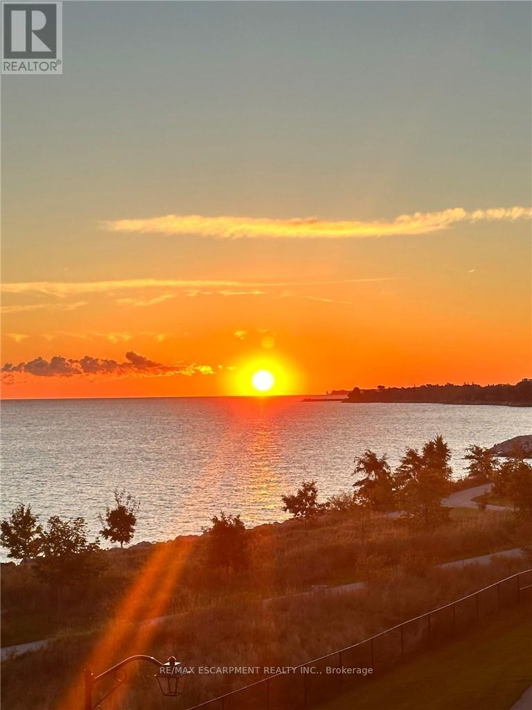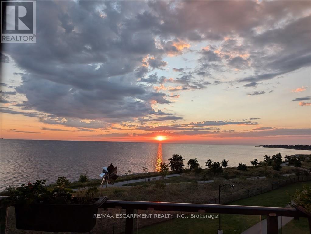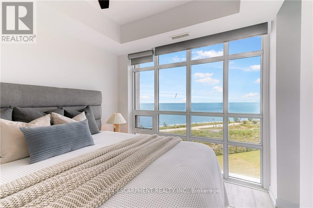 RARE OPPORTUNITY: 4TH LEVEL DIRECT WATERFRONT UNIT. This unit offers a 668 sq. ft. open-concept layout featuring floor-to-ceiling windows with direct lake views and stunning upgrades throughout. Unlike the standard builder basics, this property includes: Upgraded Kitchen & Bathroom: Quartz countertops and a subway tile backsplash. Premium Appliances: Upgraded fridge, stove, built-in microwave, and dishwasher and front loading washer & dryer. Modern Enhancements: NEW HVAC unit June 2025, upgraded lighting, and custom motorized/remote-controlled window treatments. Functional Space, the den has been converted into a 2nd bedroom, the unit includes in-suite laundry, one locker and one underground parking space. Residents can also enjoy fantastic building amenities, such as a gym, a party room, and a rooftop terrace with panoramic views of Lake Ontario. Ideal Location, Near Highways/Red Hill Expressway, Costco, Restaurants, Hamilton Hospitals. Just steps to Beautiful Waterfront Trails, Fifty Point Conservation Area this location is ideal for both commuters and nature lovers. Note photos from previous listing. Freshly painted throughout. (41899461)