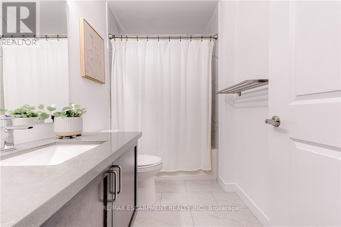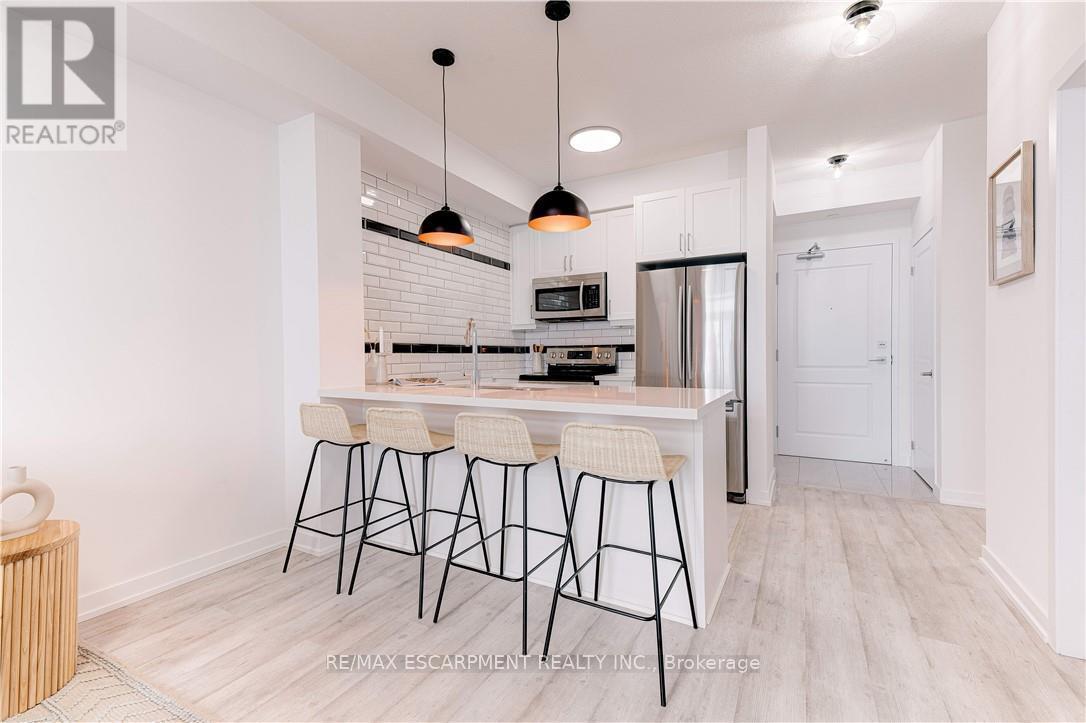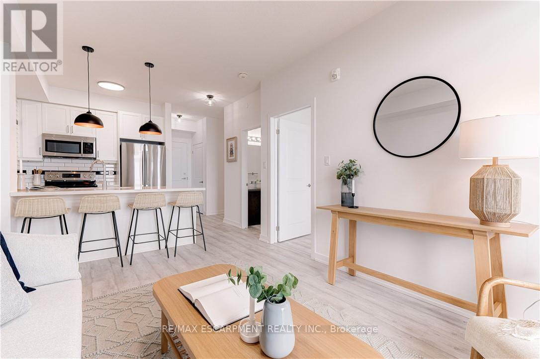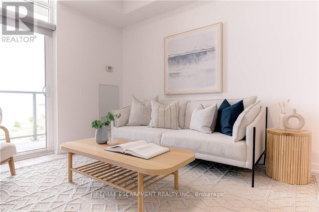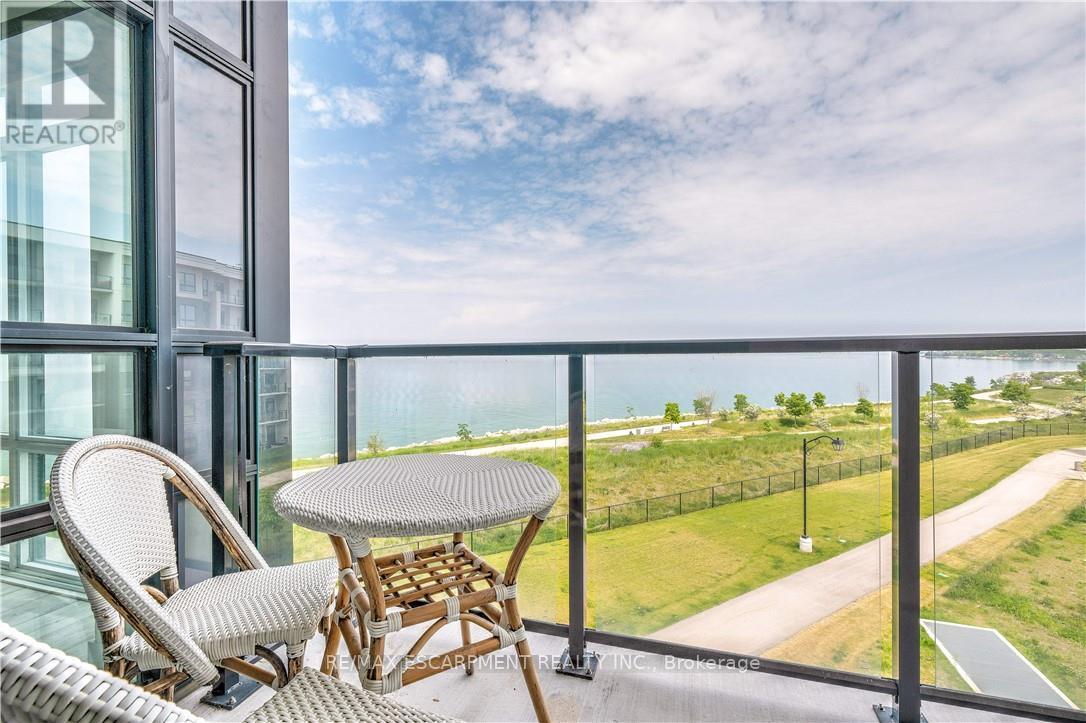 RARE OPPORTUNITY: 4TH LEVEL DIRECT WATERFRONT UNIT. This unit offers a 668 sq. ft. open-concept layout featuring floor-to-ceiling windows with direct lake views and stunning upgrades throughout. Unlike the standard builder basics, this property includes: Upgraded Kitchen & Bathroom: Quartz countertops and a subway tile backsplash. Premium Appliances: Upgraded fridge, stove, built-in microwave, and dishwasher and front loading washer & dryer. Modern Enhancements: NEW HVAC unit June 2025, upgraded lighting, and custom motorized/remote-controlled window treatments. Functional Space, the den has been converted into a 2nd bedroom, the unit includes in-suite laundry, one locker and one underground parking space. Residents can also enjoy fantastic building amenities, such as a gym, a party room, and a rooftop terrace with panoramic views of Lake Ontario. Ideal Location, Near Highways/Red Hill Expressway, Costco, Restaurants, Hamilton Hospitals. Just steps to Beautiful Waterfront Trails, Fifty Point Conservation Area this location is ideal for both commuters and nature lovers. Note photos from previous listing. Freshly painted throughout. (41899461)