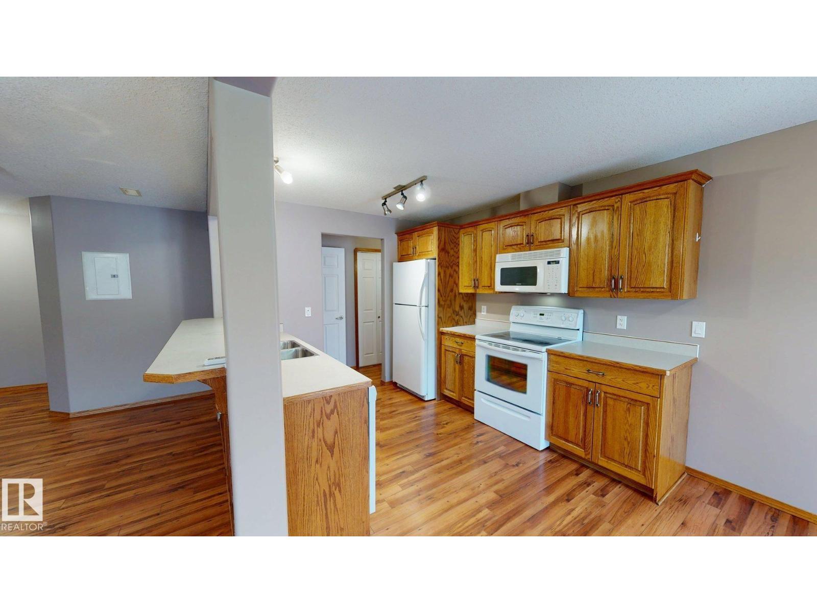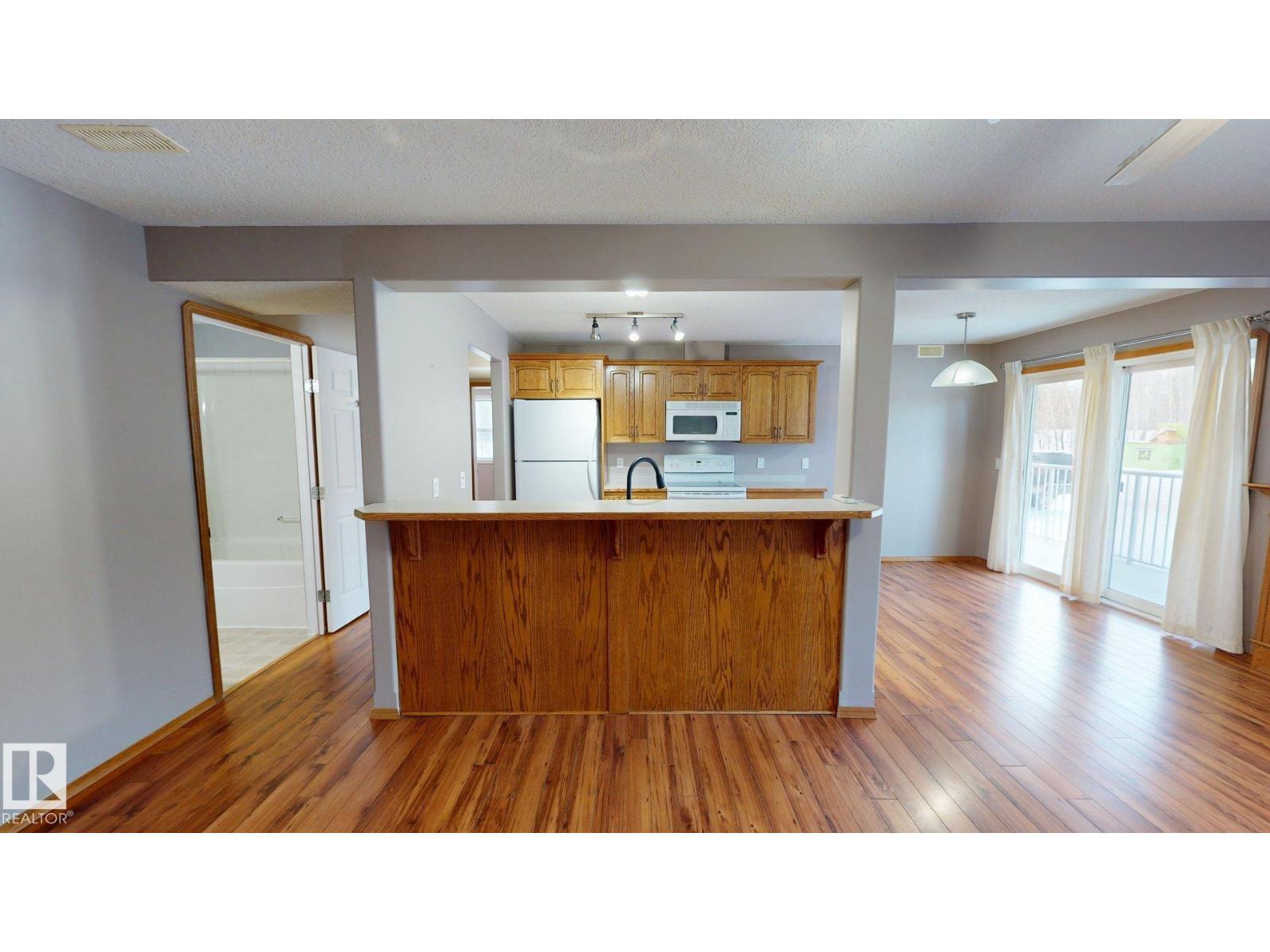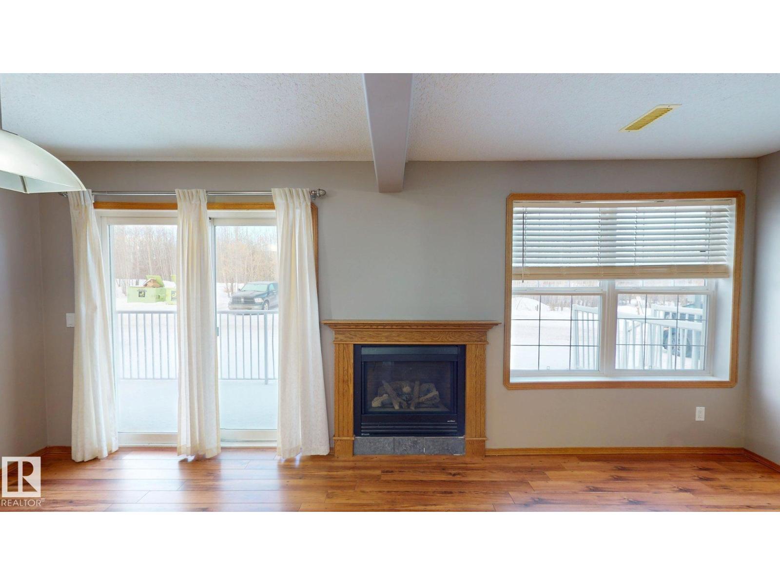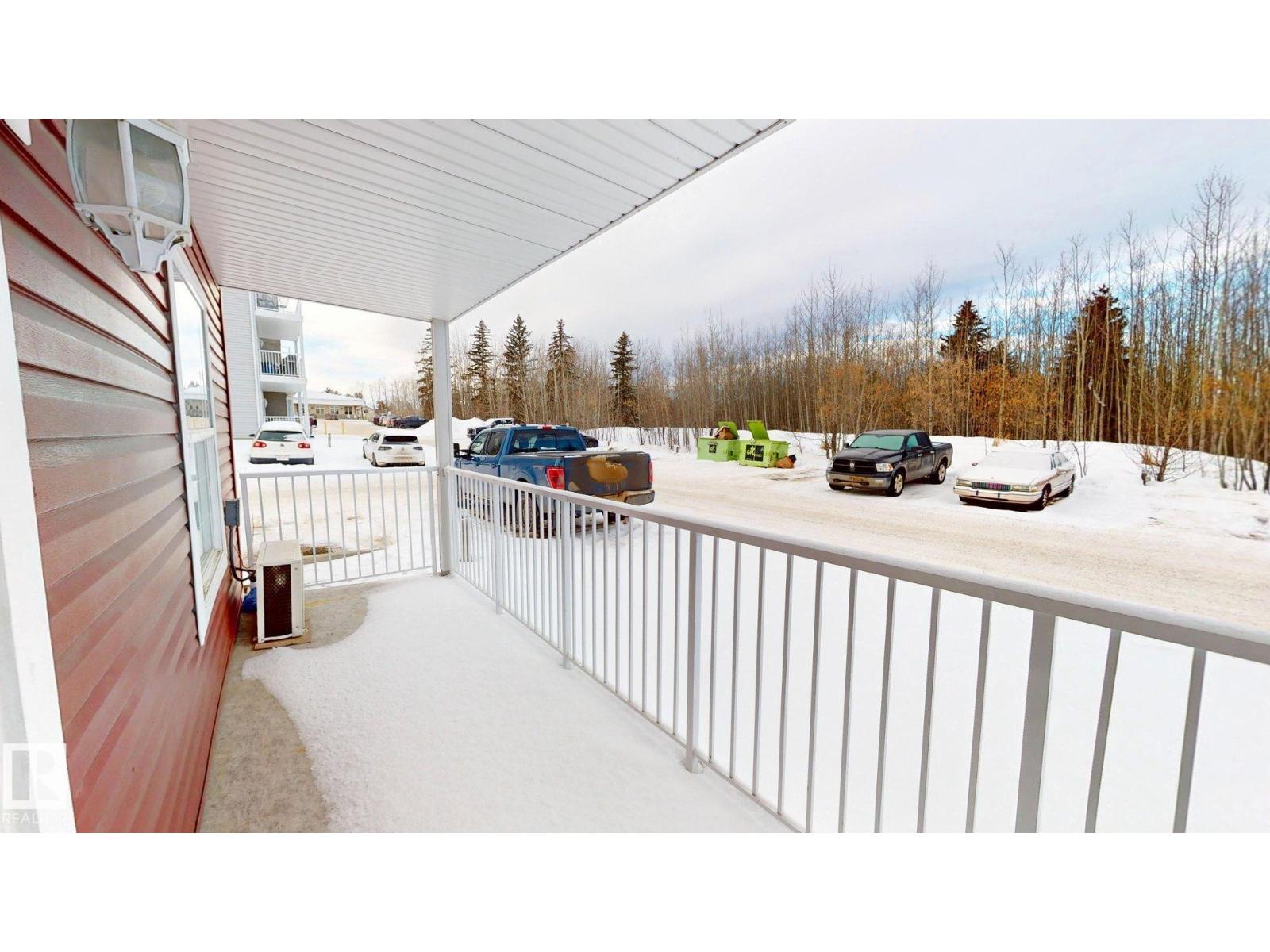 Main floor unit in Rivers condo! Looking for a low maintenance lifestyle with easy access? This is a fantastic opportunity with no stairs and an energized parking stall right outside the door! Inside has been freshly painted and features a bright and spacious floor plan, with 2 bedrooms and a 4 piece bathroom. The kitchen provides an abundance of cabinetry and counter space and over looks the living room that has a natural gas fireplace to keep you warm in the winter. Also off the kitchen are the patio doors leading to the covered deck. Rivers condo is in a great location right across from St. Anthony's school, and just a short walk to Frank Maddock and Powerhouse campus. There are miles of walking trails and is a short drive to all of Drayton Valley's amenities. Monthly condo fee of $559.57 includes exterior Maintenance, heat, parking, professional management, reserve fund contribution, utilities/janitorial/insurance for common areas, water/sewer, land/snow removal. (33695552)