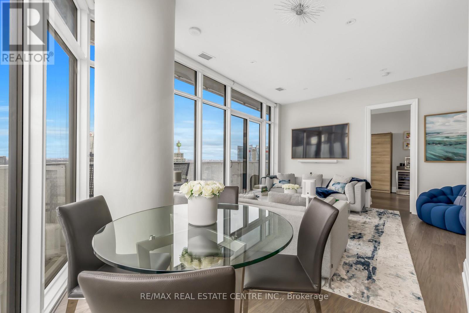 The Iconic Harbour Plaza Welcomes You Home. Fully Furnished Corner Suite Offers Unparalleled Luxury And Sophistication With Spectacular Panoramic Views Of The City Skyline And Lake. Expansive Wraparound Balcony With Full East-To-West Exposure Floods The Suite With Natural Light. Thoughtfully Designed Split Bedroom Layout Features Spacious Open-Concept Living And Dining Areas Framed By Floor-To-Ceiling Windows, Soaring 10Ft Ceilings, Hardwood Flooring Throughout And A Total Of 3 Decadent Bathrooms. Modern Chef's Kitchen With Top-Of-The-Line Built-In Appliances And Sleek Centre Island. Primary Bedroom Boasts Oversized Walk-In Closet And Spa-Inspired 5-Piece Ensuite. 2nd Bedroom Features B/I Murphy Bed, Spacious Walk-In And 4-Piece Ensuite Bath. State-Of-The-Art Media System Includes SONOS Surround Sound And 2 TV Frames. Fully Furnished Suite With High End Touches Outfitted Throughout Including Luxury Linens, Dishware, Murphy Bed, Custom Closet Organizers, Full Size Laundry Machines And Steamer. Harbour Plaza Offers Endless World Class Amenities With 24Hr Concierge, Indoor Pool, Hot Tub, Theatre, Dining And Event Spaces, Outdoor Terrance And BBQ's, Direct Access to Extensive PATH Network, Retail And Subway. Includes One Parking Space, Locker And 2 Memberships To Exclusive Athletic Club. A Rare Opportunity To Live In A Truly Exceptional Suite In The Heart Of Toronto's Vibrant Waterfront. (41900091)