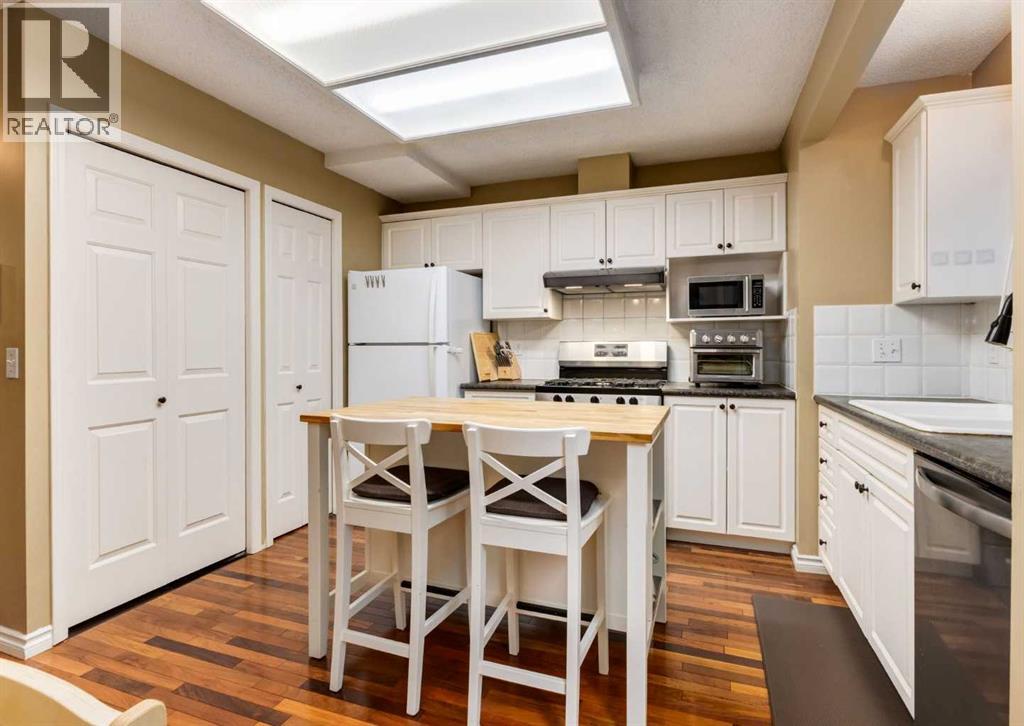 Discover refined urban living nestled in the heart of Tuxedo Park—one of Calgary's most convenient and charming inner-city neighbourhoods. Enjoy exceptional walkability to trendy shops, diverse restaurants, lush parks, golf courses, and top-rated schools, with seamless access to Highway 1, Deerfoot Trail, downtown Calgary, and the airport. This bright move-in-ready home showcases expansive windows flooding the space with natural light, tasteful neutral colors, and central air conditioning for year-round comfort. Step inside to an inviting main level featuring a spacious living room anchored by a cozy corner gas fireplace—perfect for relaxing evenings. Flow seamlessly into the dining area and white kitchen, complete with a generous island for casual meals, ample pantry storage, and convenient main-floor laundry. A stylish powder room and direct access to your private balcony complete this entertaining-friendly floor. Ascend to the upper level, where a luxurious spa-like bathroom awaits with dual sinks, a skylight bathing the space in sunlight, an oversized shower, and a jetted soaking tub for ultimate relaxation. Two well-proportioned bedrooms include the serene primary suite with soaring vaulted ceilings and its own exclusive balcony—an ideal retreat. The fully developed lower level offers a versatile third bedroom/den or media room with a full ensuite bath, plus direct entry to the attached single garage for added convenience. Multiple outdoor havens, including upper and lower balconies plus a ground-level deck, make al fresco dining and summer gatherings effortless. This Tuxedo Park treasure perfectly blends sophisticated style, practical design, and an unbeatable location—urban vibrancy meets tranquil escape. Don't miss this must-see home; check out the video in the media link and schedule your private viewing today! (31503567)