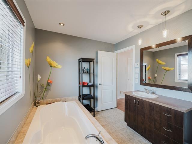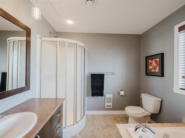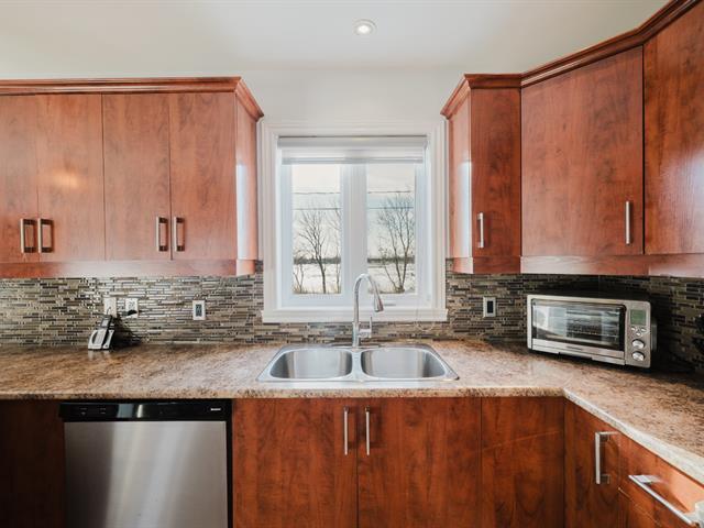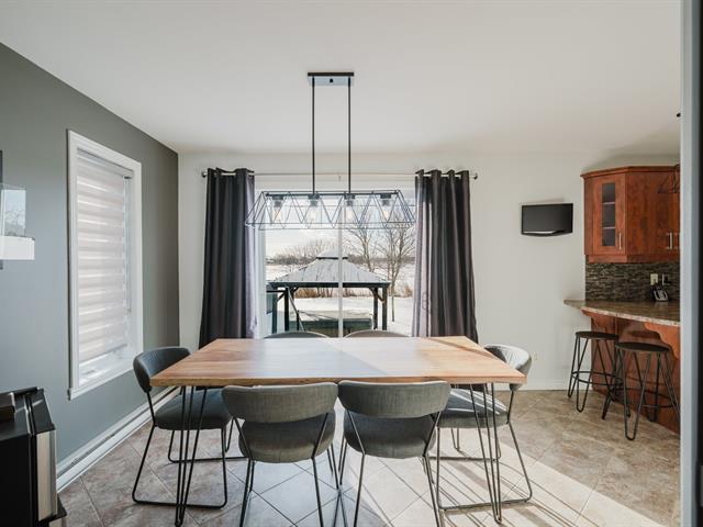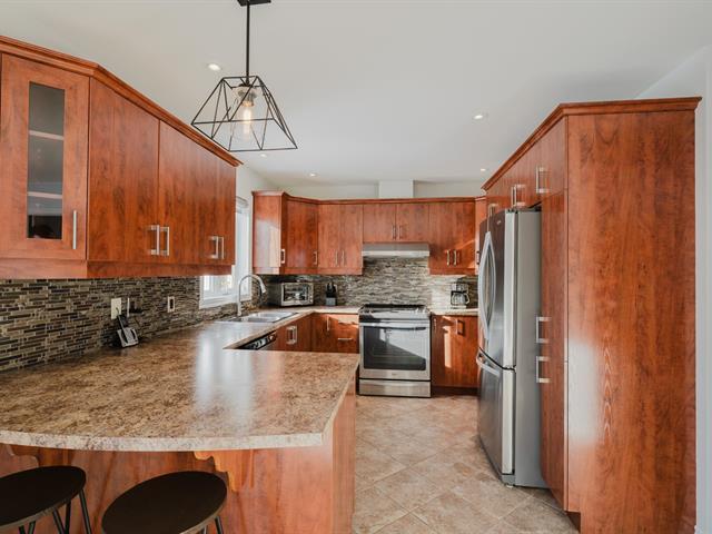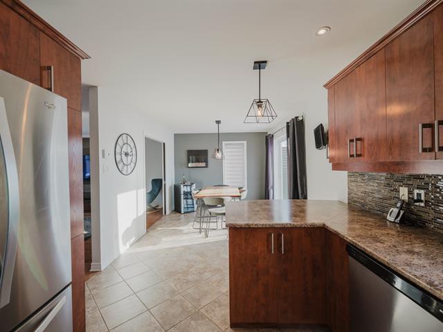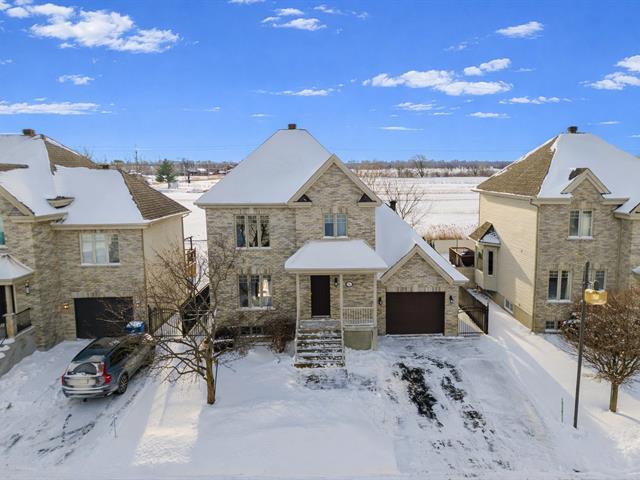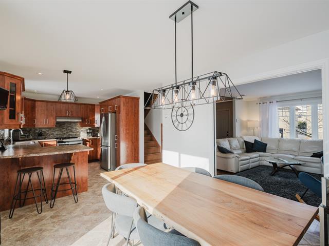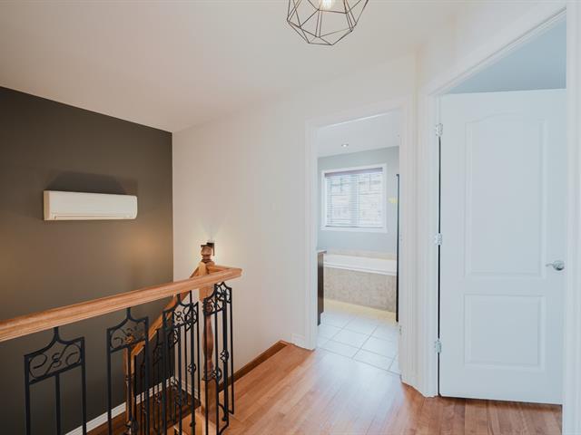 Spacious two-storey home with garage, offering 4 bedrooms , a full bathroom with podium tub and corner shower, as well as a powder room with laundry area. Warm and inviting living space featuring an entrance hall with double closet, a living room with a decorative wood accent wall, a classic kitchen with a stunning backsplash, and a dining room opening onto the terrace. Finished basement with family room, storage space, and wall-mounted air conditioning. Landscaped, partially fenced backyard with no rear neighbors and open views of the fields.Ideally located in Saint-Basile-le-Grand, close to the close to the commuter train station and parks. (44106168)