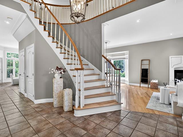 This prestigious Victorian-style stone and brick residence offers over 11,000 sq. ft. of land on a corner in the heart of Place d'Amance. Majestic hall with 20-ft staircase, 10-ft ceilings, high-end Thermador/Sub-Zero kitchen, bright living room, gas and wood fireplaces. Master suite with balcony, walk-in and spa-like bathroom. Finished basement with cinema, 40-ft family room, 5th bedroom and backyard access. Heated inground pool, 30-ft cedar hedge and full modern comfort. See addendum for full description. (50890109)