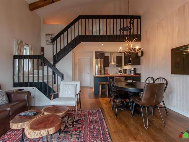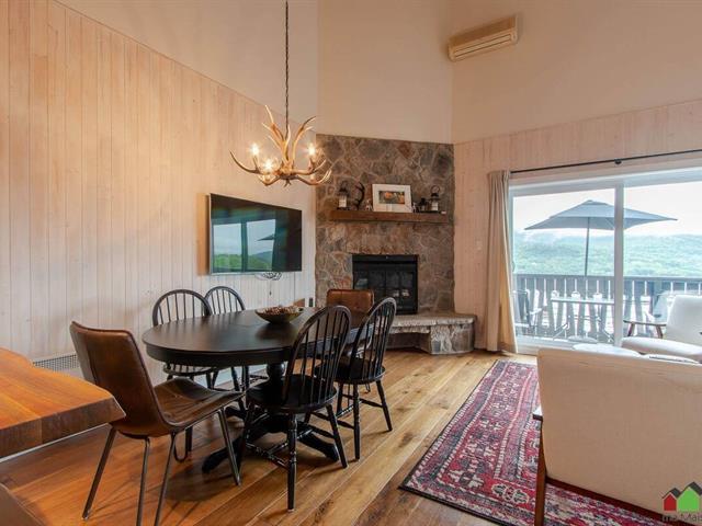 Nestled in the heart of Mont-Tremblant, only minutes from the vibrant pedestrian village and the old town, this stunning 2-bedroom, 2-bathroom condo on two levels offers an unrivalled opportunity for investors building a short-term rental portfolio or owners seeking a second home. Meticulously renovated and fully furnished with modern amenities, wood-burning fireplace, and magnificent water and mountain views, the condo also benefits from outdoor parking, making it an unparalleled opportunity for investors or owners seeking a pied-à-terre. ** GST/QST deferred if the property remains for short-term rental use. GST/QST must be added to the asking price (44605777)
