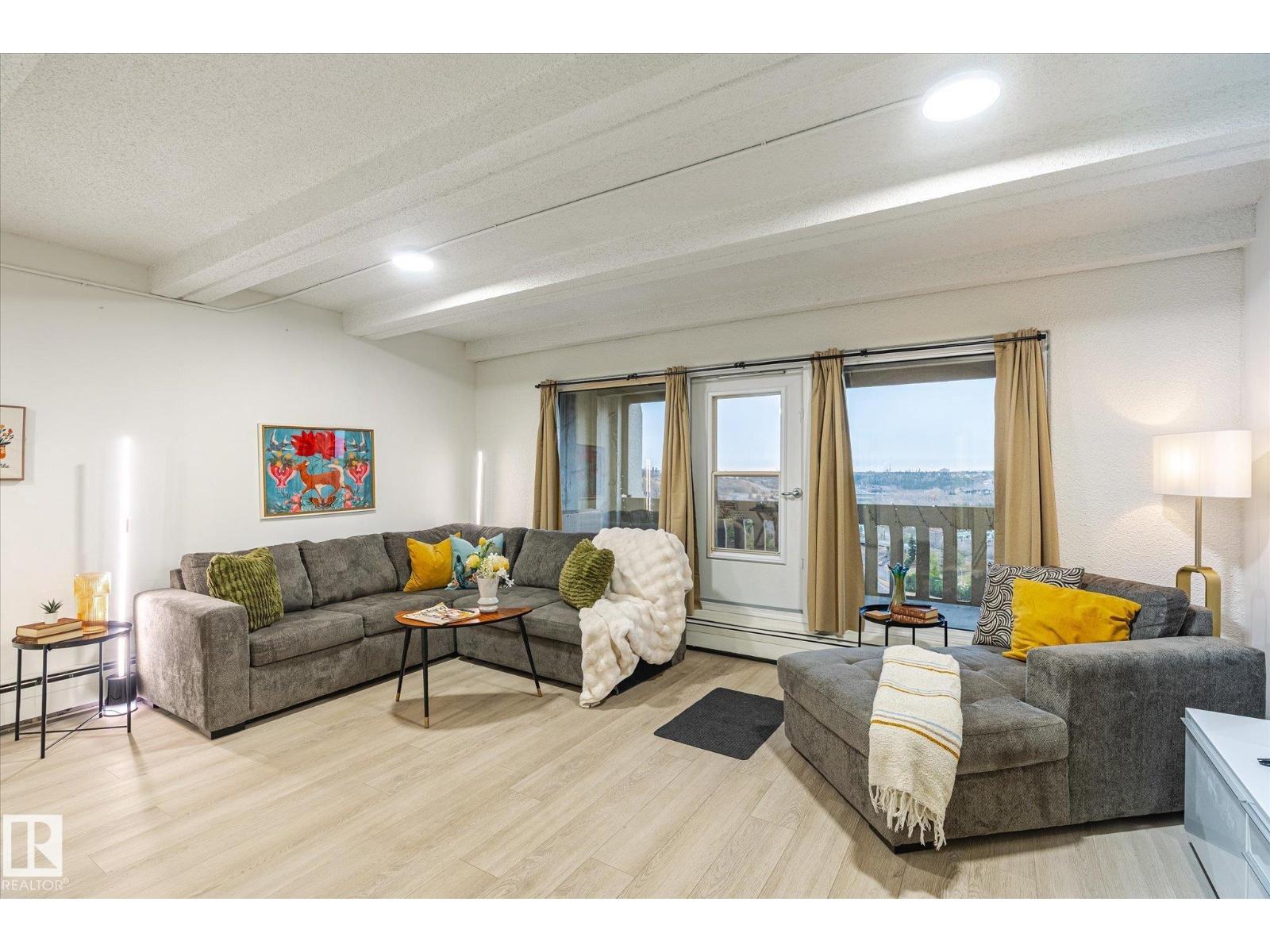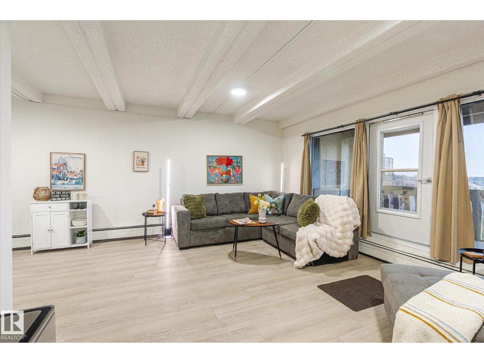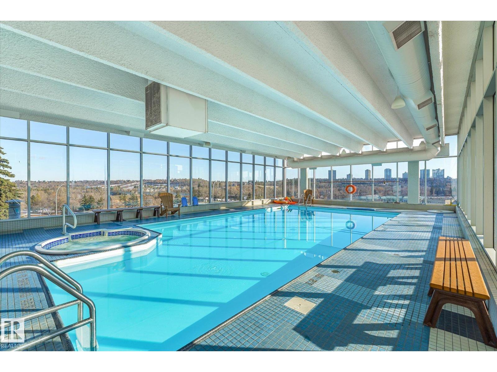 A fabulous end-unit condo with stunning river valley views in one of Edmonton’s most iconic high-rise communities. This bright 1 bed + den/storage room home features vinyl plank flooring, a renovated kitchen and bathroom, and a generous open layout with floor-to-ceiling windows. The large east-facing balcony is perfect for morning coffee overlooking the trees and city skyline. The bedroom fits a king bed and includes a walk-in closet, plus there’s excellent storage throughout. Enjoy resort-style amenities: indoor pool, sauna, gym, and recreation room. Heated underground parking with the stall conveniently located near the parkade entrance + main lobby door. Steps to the river valley, trails, Legislature grounds, LRT, and downtown. Urban living with nature at your doorstep! Condo fees also include unit heat and water. (33697004)