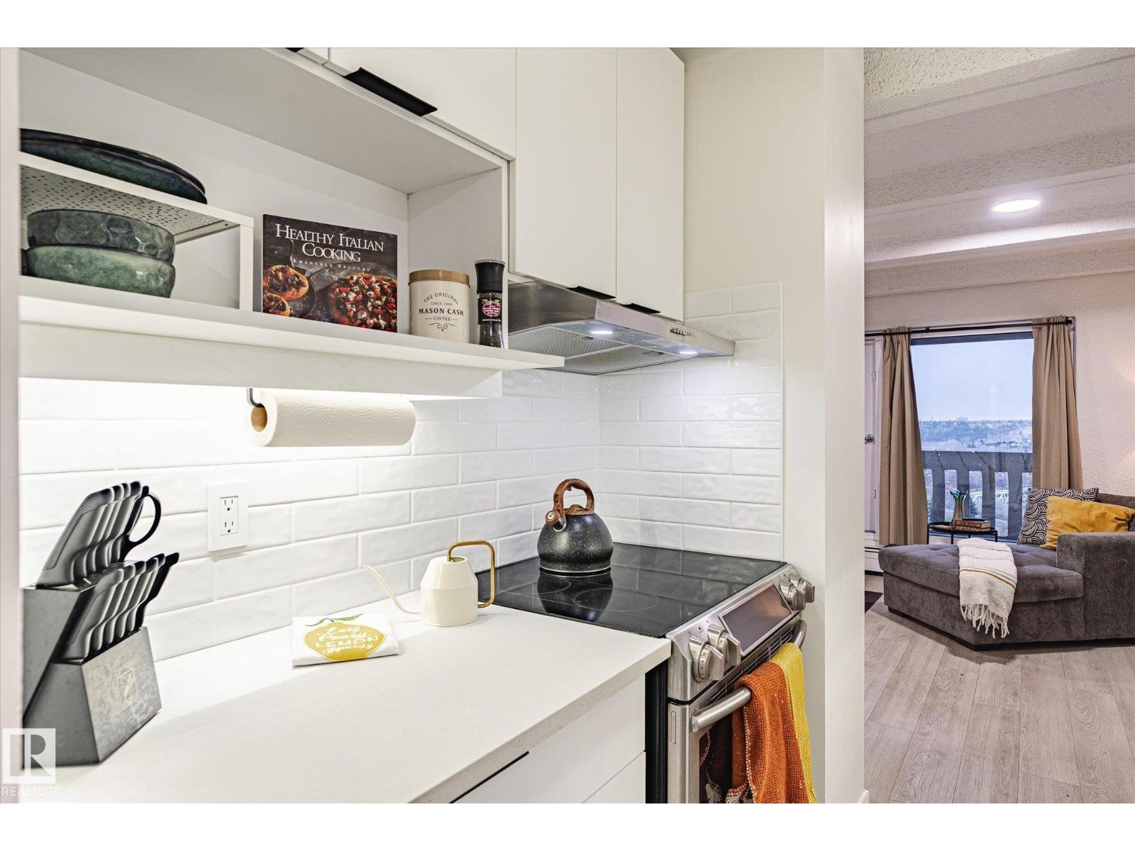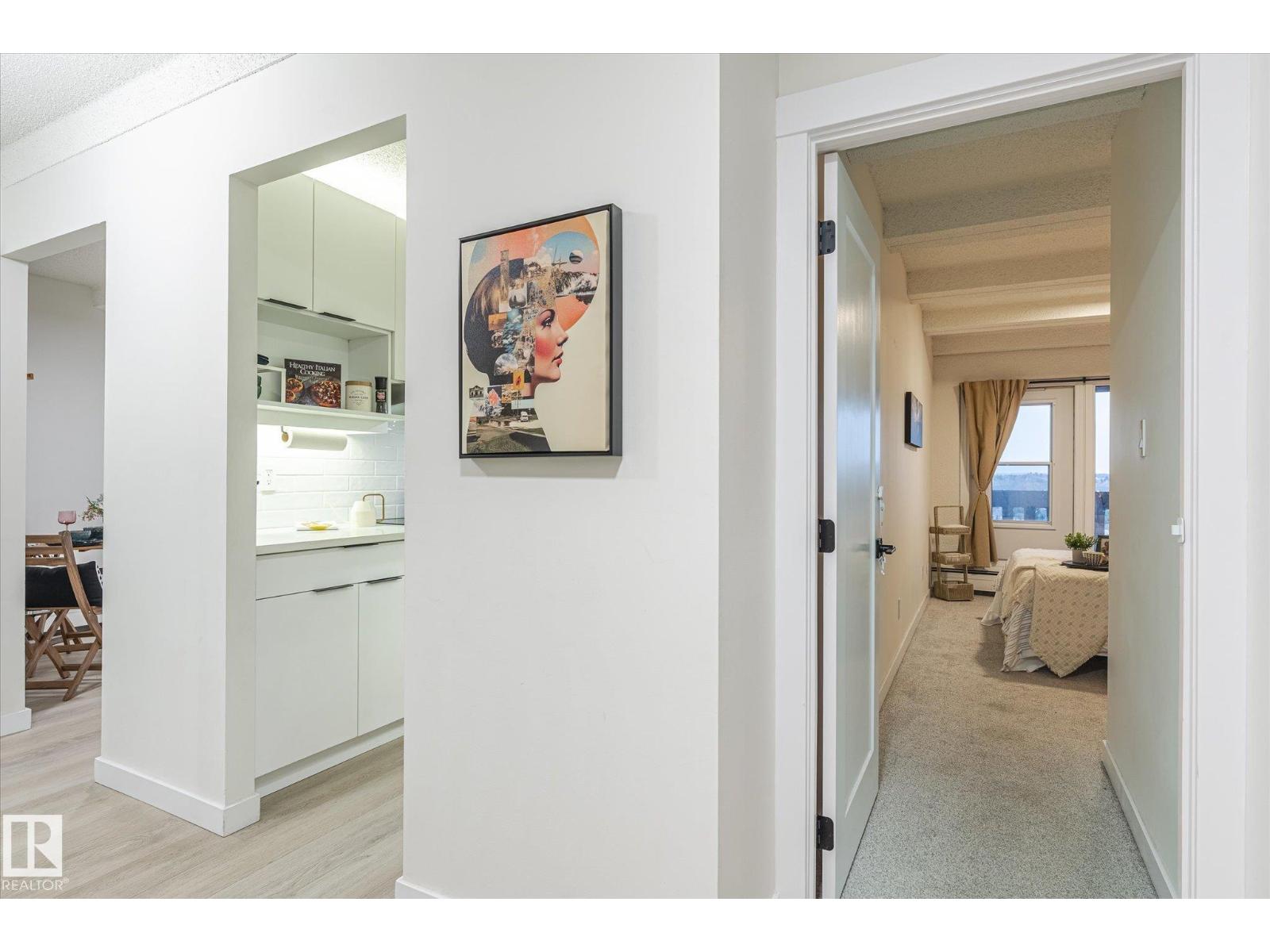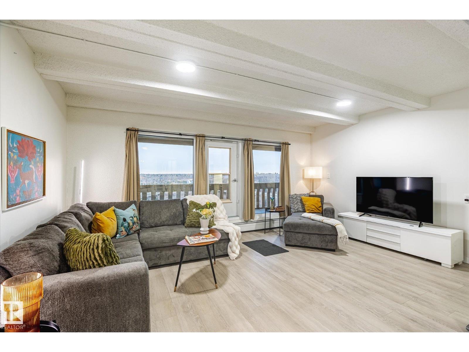 A fabulous end-unit condo with stunning river valley views in one of Edmonton’s most iconic high-rise communities. This bright 1 bed + den/storage room home features vinyl plank flooring, a renovated kitchen and bathroom, and a generous open layout with floor-to-ceiling windows. The large east-facing balcony is perfect for morning coffee overlooking the trees and city skyline. The bedroom fits a king bed and includes a walk-in closet, plus there’s excellent storage throughout. Enjoy resort-style amenities: indoor pool, sauna, gym, and recreation room. Heated underground parking with the stall conveniently located near the parkade entrance + main lobby door. Steps to the river valley, trails, Legislature grounds, LRT, and downtown. Urban living with nature at your doorstep! Condo fees also include unit heat and water. (33697004)