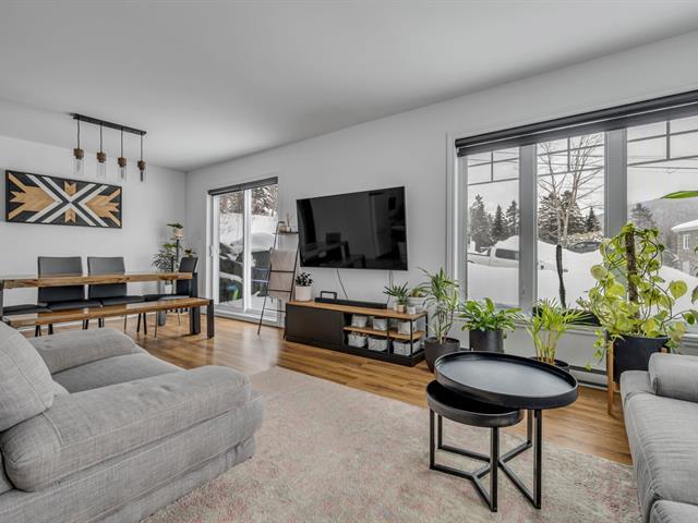 Superbe grand condo 5½ de 1 173 pi² avec tous les électros inclus ! Profitez d'une vue imprenable sur les montagnes, sans voisin à l'arrière. Situé au rez-de-chaussée, il offre une terrasse de plain-pied parfaite pour les BBQ. Animaux acceptés et 2 stationnements. Situé à deux pas d'une école primaire, cet emplacement est idéal pour la tranquillité et la vie de famille, surtout avec ses trois grandes chambres. Vous y trouverez un espace moderne, entretenu avec soin, comprenant deux walk-in, beaucoup de rangement ainsi qu'une salle de lavage indépendante. Le condo est baigné de lumière naturelle. Un condo qui a tout pour plaire, faites vite ! (49863303)