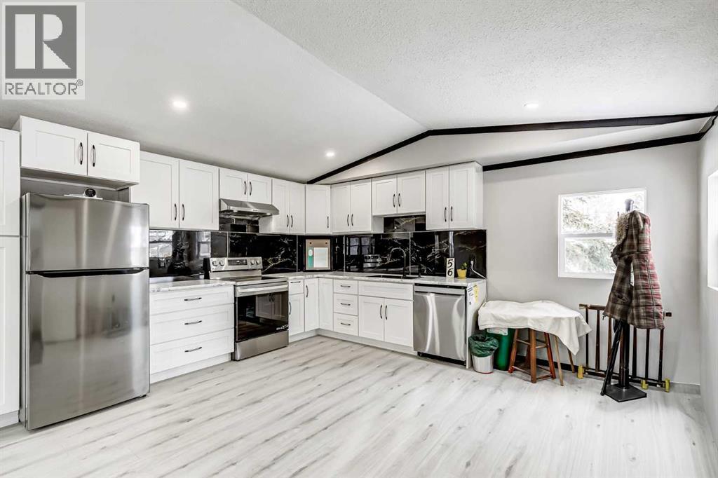 OPEN HOUSE Saturday January 10th. This meticulously updated home combines long-term structural integrity with a stunning, modern aesthetic. Following a series of upgrades, including a new metal roof & furnace in 2009, full replacement of plumbing in 2011, and updated wiring in 2013, this property underwent a complete professional transformation in 2025. The interior has been reimagined with a contemporary open-concept layout, featuring all-new drywall, Air conditioning, freshly painted, and smooth ceilings accented by LED pot lights and designer fixtures. The gourmet kitchen is a true showpiece, boasting brand-new cabinetry, elegant tile backsplashes, and a full suite of stainless-steel appliances, including an electric range, hood fan, dishwasher and fridge. Every inch of the living space has been refined with new flooring, interior doors, and trim. The bathroom is equally impressive with full renovation featuring a brand-new tub and vanity with modern faucets. Just outside you’ll find a space-saving tower washer/dryer. The exterior is built for durability and curb appeal, all completed in 2025 featuring new windows & exterior doors for enhanced energy efficiency and security, premium vinyl siding, Trimlock skirting with integrated rodent guard, structure was recently leveled and furnace tune-up completed. A large yard offers ample space for recreation, complemented by a convenient two-car parking pad. Move in with total peace of mind knowing the major systems have been modernized and the interior is effectively brand new. Calgary Village is a well-run park with clubhouse amenities include a gym and recreation room. This unbeatable location has easy access to the vibrant events at Elliston Park and seamless connections to Stoney Trail, putting the entire city within effortless reach. Don’t miss this rare opportunity to own this gem in a prime Calgary location. (31505724)