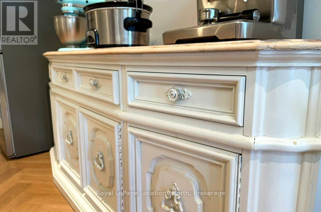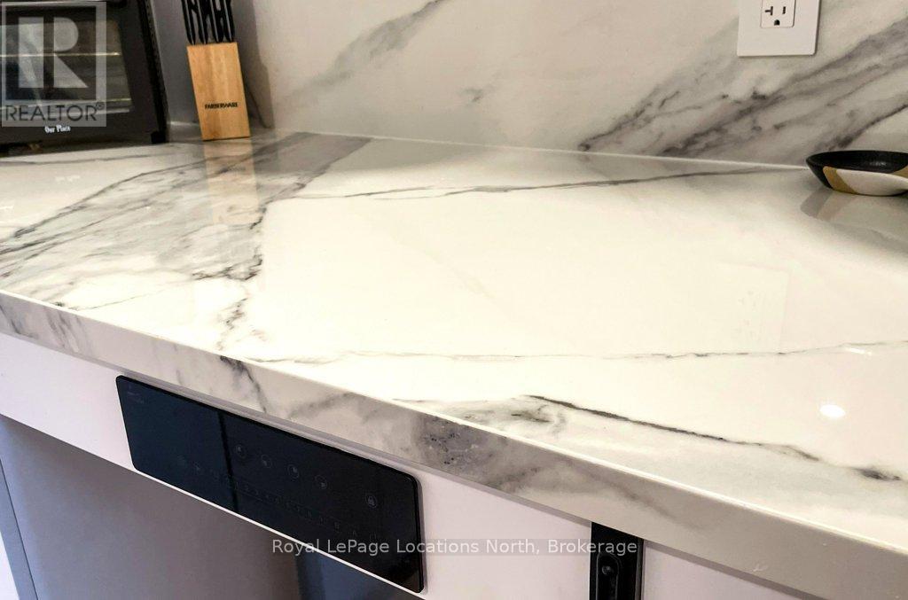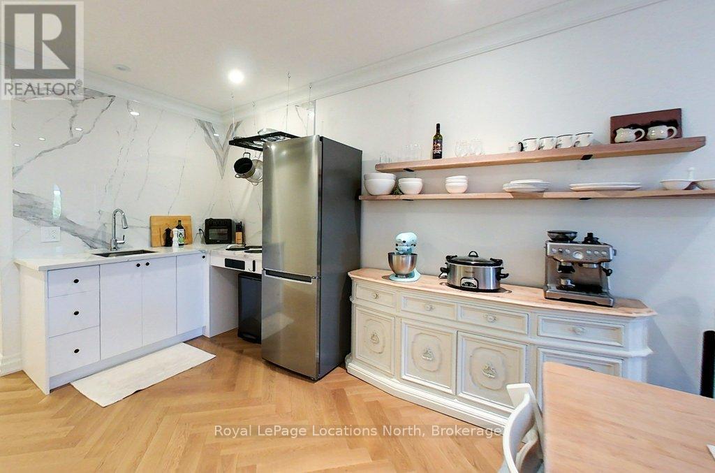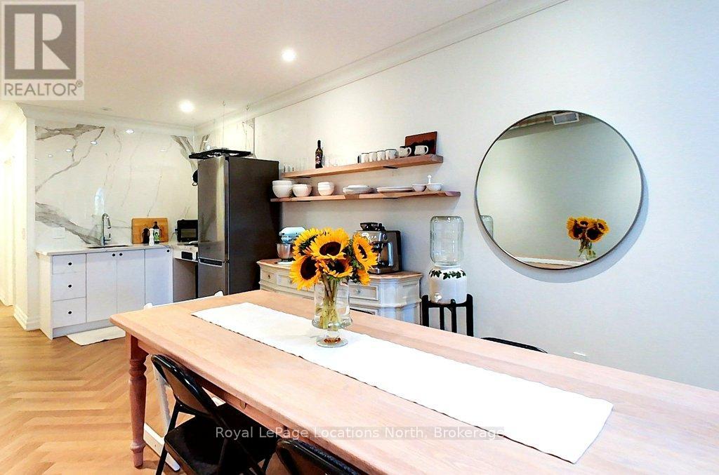 Renovated, loft style apartment in downtown Meaford. This stunning, one bedroom apartment features den, pantry, open concept living area with high ceilings, skylights, cinematic lighting, pot lights, white oak engineered hardwood floors, Gorenje ventless washer/dryer, sound proof insulation, four piece bathroom with heated floors, new windows and kitchen with porcelain counters/feature wall and INVISA Cook Top! The den is currently set up as a second bedroom but makes a great office or studio space. The list of upgrades to the apartment is impressive! Private parking for two vehicles at rear of building is a real bonus. The apartment is located above retail/commercial space and conveniently offers two private entrances. Living at 8 Sykes provides you a walkable lifestyle with shops, restaurants, Meaford Hall, library, trail and Georgian Bay all steps away. Apartment can be leased with furnishings. Rental Application with references, letter of employment and credit check required. Lease rate plus utilities. Available for immediate possession. Commercial unit on main level is also offered for lease MLS X12419033 separately. (41903588)