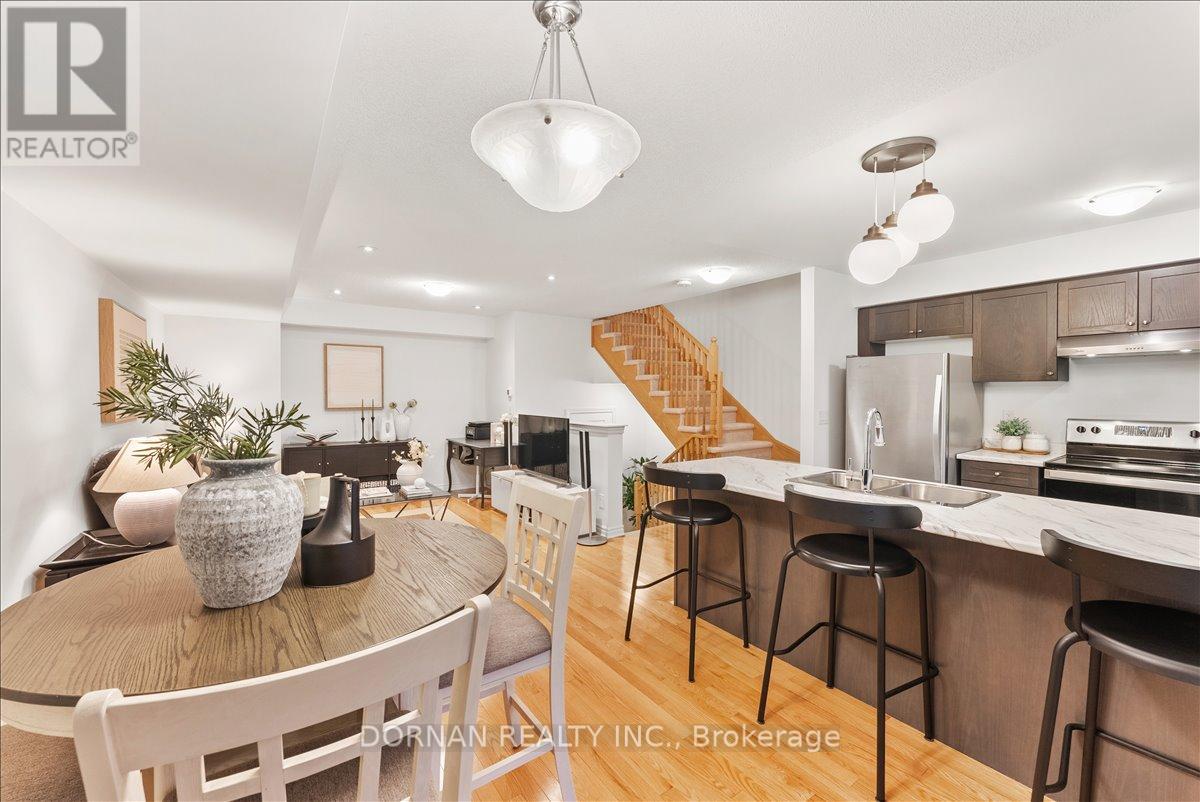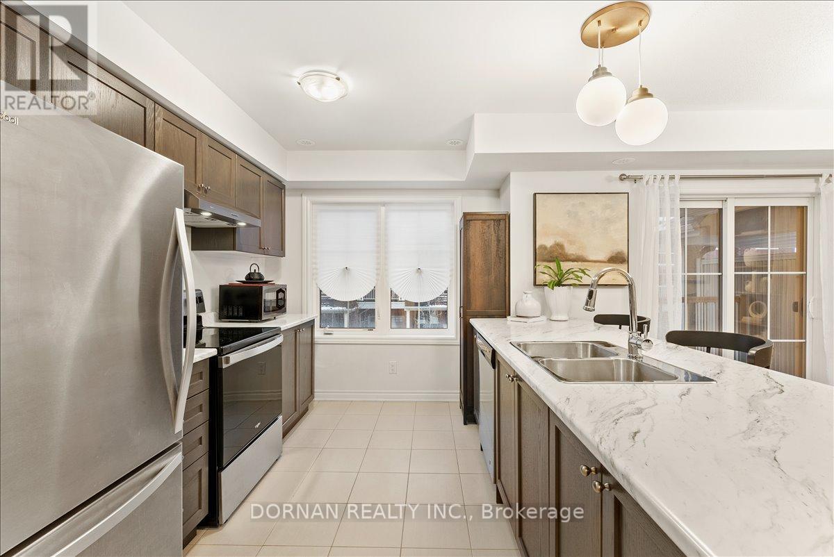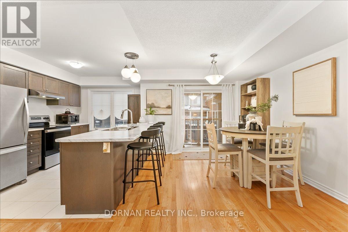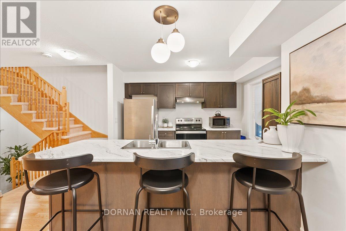 Best price in all of Whitby!!! Presenting fantastic value for those seeking low-maintenance living at 37 Mappin Way - a beautifully maintained (like new!) 2-bedroom, 2-bathroom townhouse built by Minto in 2021. Located in the desirable Rolling Acres community of Whitby, this home features a thoughtful layout and stylish finishes throughout. Step into the open-concept main level featuring beautiful hardwood floors, a spacious living room, 2pc powder room and a modern eat-in kitchen loaded with high-quality cabinetry, stainless steel appliances including a dishwasher & a large island overhang that seats three. A spacious, private covered balcony extends the living space, perfect for relaxing outdoors. Upstairs, you'll find two generously sized bedrooms and a modern 4-piece bathroom, including a huge primary suite with a large walk-in closet. Convenient garage access on the ground level, and a basement for extra storage & laundry! This is a great opportunity to own a modern townhouse located just minutes from the 401, 407, top-rated schools, shopping centres, parks & all of Whitby's amenities - offered at a fantastic price! Offers anytime - no offer date! (41903629)
