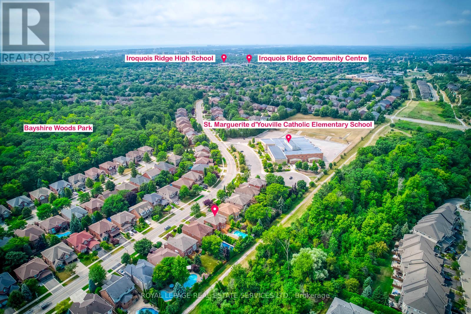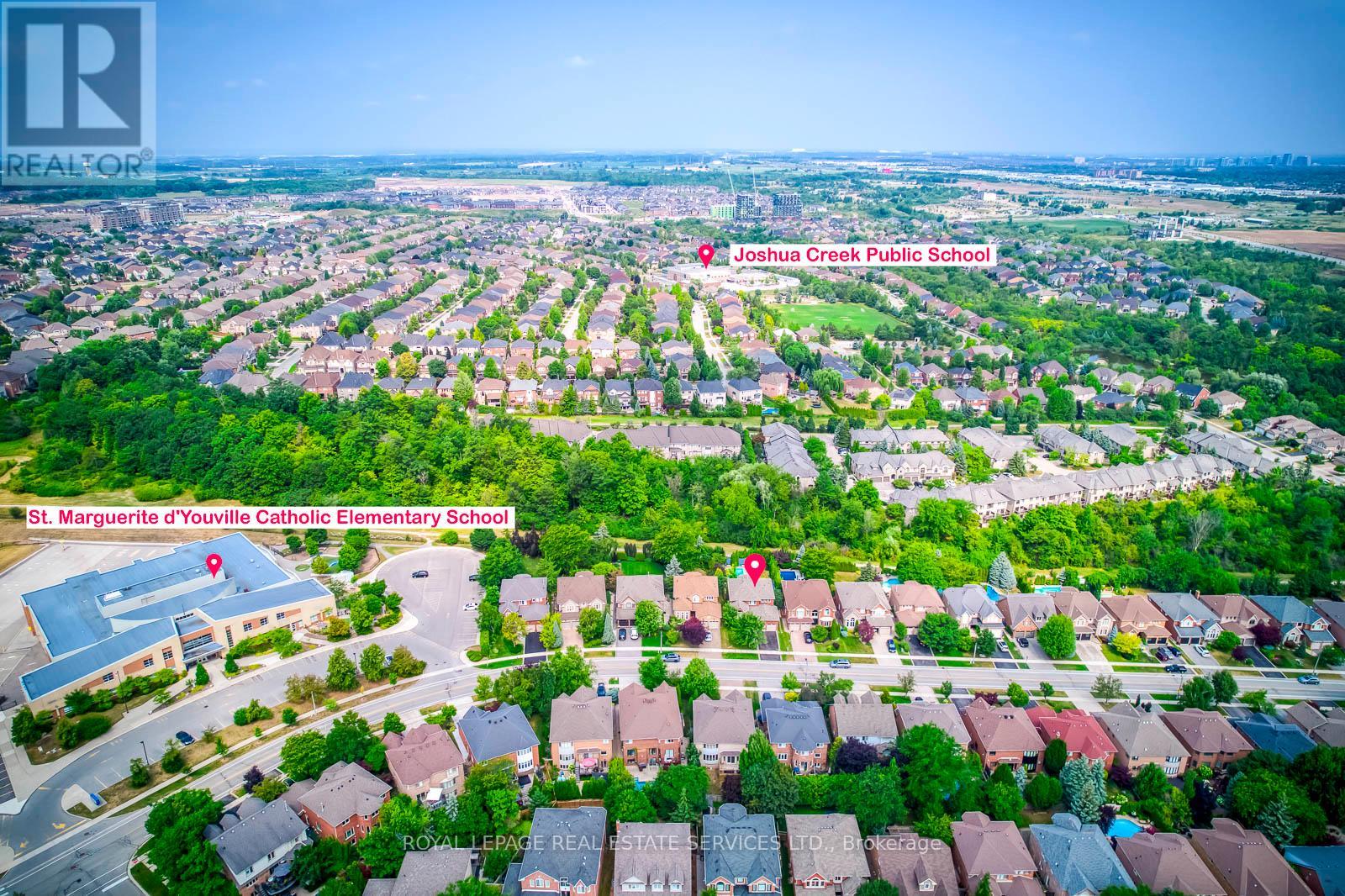 Stunning 4 Bedroom Family Home Backing onto Ravine in Prestigious Joshua Creek! This beautifully maintained 3,121 sq ft detached home offers 4 bedrooms and 4 bathrooms, situated on a premium ravine lot with breathtaking views. Enjoy spectacular sunsets from your private deck overlooking a beautifully landscaped backyard oasis with a pool, mature trees, and complete privacy. The main level is thoughtfully designed for comfortable family living-featuring a spacious dining room perfect for gatherings, a bright living room with vaulted ceilings and impressive windows, and a dedicated office for working from home.Upstairs, the large primary bedroom retreat offers a walk-in closet and a relaxing atmosphere, complemented by three additional spacious bedrooms and a beautifully renovated main bath.The walk-out basement provides fantastic extra living space with a generous rec room, bar, game area, full bath, and ample storage-ideal for entertaining or relaxing after a summer swim. Recent upgrades include stylish new flooring and upgraded stair finishes (2022), an owned hot water heater (2022). Located in the highly desirable Joshua Creek community, within top-rated school zones (Joshua Creek PS & Iroquois Ridge HS), and complete with a double garage, this home is the perfect blend of space, comfort, and location. (41903673)