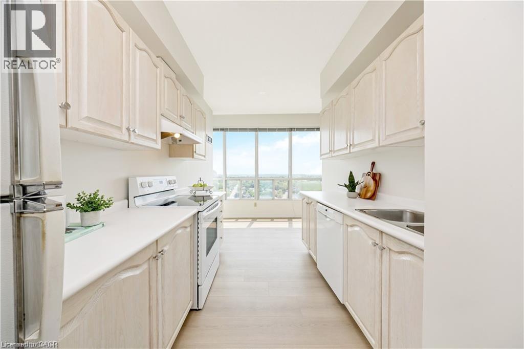RARE SKY SUITE SOUTH FACING CONDO ... it's HIGHER than the PENTHOUSE! Breathtaking unobstructed Escarpment views - see the CN Tower on a clear day! We never see these units offered for sale. This highly sought-after condo has it all: 2 BEDROOMS + DEN, THREE BATHROOMS (Jack n Jill updated to large walk-in shower), HIGH 9' CEILINGS, 2 UNDERGROUND PARKING SPOTS (1 owned, 1 exclusive use), 2 OWNED LOCKERS, UTILITY ROOM in suite and it boasts a whopping 1625 SF ... one of the LARGEST condos in the building. Enjoy the spacious and bright living area w/ massive windows all around to highlight the most spectacular views. The kitchen offers a breakfast area, some updated Samsung and Bosch appliances and a convenient pantry. The combined open concept living and dining room is large enough for extended family celebrations and has loads of massive windows to highlight the stunning views. There are 2 generous bedrooms, one of which is the primary bedroom with walk-in closet and convenient 5-pc ensuite. The den is large enough to be used as a THIRD BEDROOM. Additional features include: $30,000+ in recent upgrades (2025): entire unit has been professionally painted throughout in a neutral tone (Benjamin Moore paint), upgraded lighting, new blinds in bedrooms and new flooring with higher-end sound insulation than required. The unit is also CARPET-FREE, there is in-suite laundry with in-suite walk-in utility room. The building includes a renovated lobby, indoor pool, sauna, fitness area, party room, car wash, community BBQ area and plenty of visitor parking. This is an exceptionally well-run complex in an excellent school district and is centrally located. It is a short walk to restaurants, shops, summer Farmers Market, schools, parks, beautiful Mill Pond and Milton's vibrant downtown. Condo Fees Include Heat, Hydro, Water, Bell Bulk TV & Internet, Parking, Building Insurance and Maintenance of Common Areas. MOVE IN and ENJOY ... Simplify Your Life! *Some photos virtually staged (70025137)