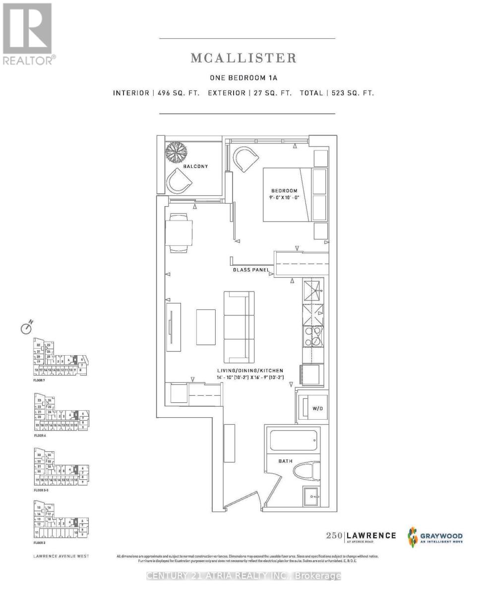 BRAND NEW FROM BUILDER. 5% FEDERAL REBATE FOR ELIGIBLE BUYERS. Spacious and bright one-bedroom suite located at 250 Lawrence at Avenue Rd by Graywood Developments. Nestled against the Douglas Greenbelt and just steps away from Bedford Park, this residence offers proximity to Lawrence Subway, 401, Downsview Park, Yorkdale, York University, Havergal College. Boasting nearly 500 sqft of interior space and an additional 27 sqft balcony, this opulent suite showcases an open floor plan complemented by floor-to-ceiling windows. Parking and locker included. (41904359)