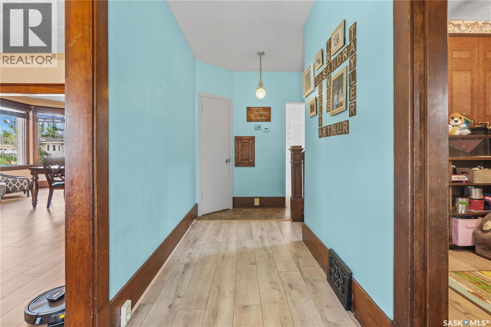 Gravelbourg offers small-town historic charm in a family-friendly, safe community—ideal for home buyers seeking affordable real estate in a welcoming rural Saskatchewan setting with all the amenities found in larger centres. These include a hospital, doctors, Collège Mathieu, K–12 schools, shopping, groceries, restaurants, local businesses, RCMP services, a cultural centre, and family activities including swim club, all within ten minutes of Thompson Lake Regional Park and golf course. This solid, character-filled historic Eaton home for sale in Gravelbourg, Saskatchewan offers five bedrooms, three bathrooms, and an oversized (24' x 32') heated attached garage with direct entry, parking for eight vehicles plus RV parking. The home blends timeless charm with major updates, including being professionally moved onto a solid, energy-efficient ICF (Insulated Concrete Form) foundation with in-floor heat in the basement in 2001—an incredibly valuable upgrade for long-term durability and peace of mind. Step onto the inviting covered front porch and into the main floor featuring tall ceilings, a spacious living room, dining room, kitchen, front office/den, and a 2pc bath. Upstairs offers four bedrooms and a luxurious bathroom with a jacuzzi soaker tub and separate shower. The basement adds more living space with in-floor heat, a cozy gas fireplace in the family room, an additional bedroom (*window may not meet current legal egress), and a 3pc bathroom. Recent updates include a brand new metal roof, PVC fencing, new flooring in the dining and living rooms, new grass in the backyard, and a xeriscaped front yard—great for cutting down those watering bills. Ready for a lifestyle change and considering small-town Saskatchewan living? Don’t forget to click the multimedia link to VIEW THE VIRTUAL TOUR. Contact your REALTOR® today to book a viewing. (29255109)